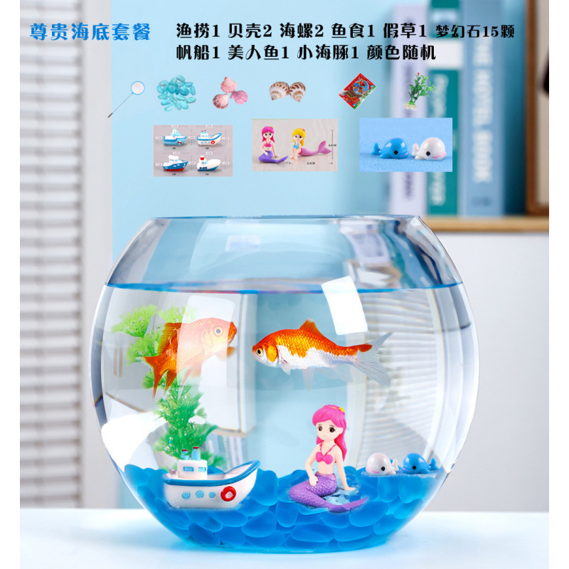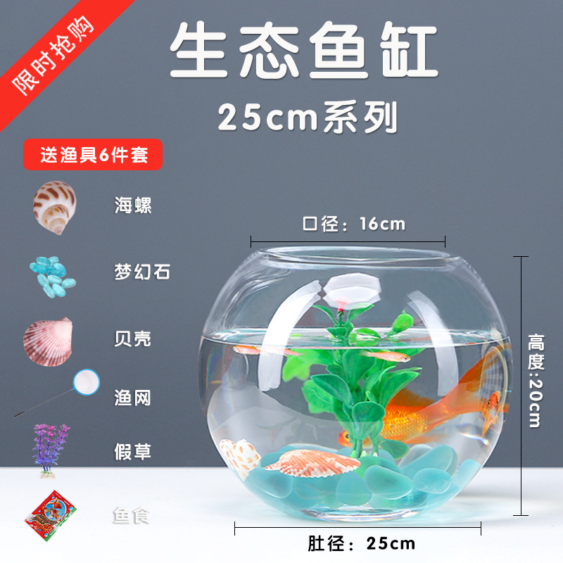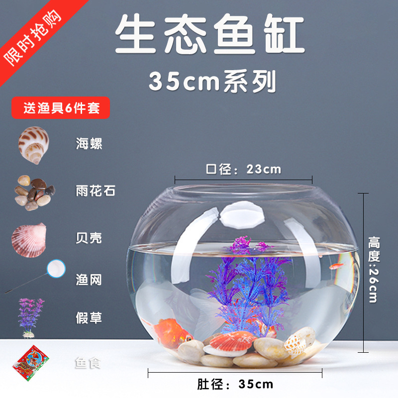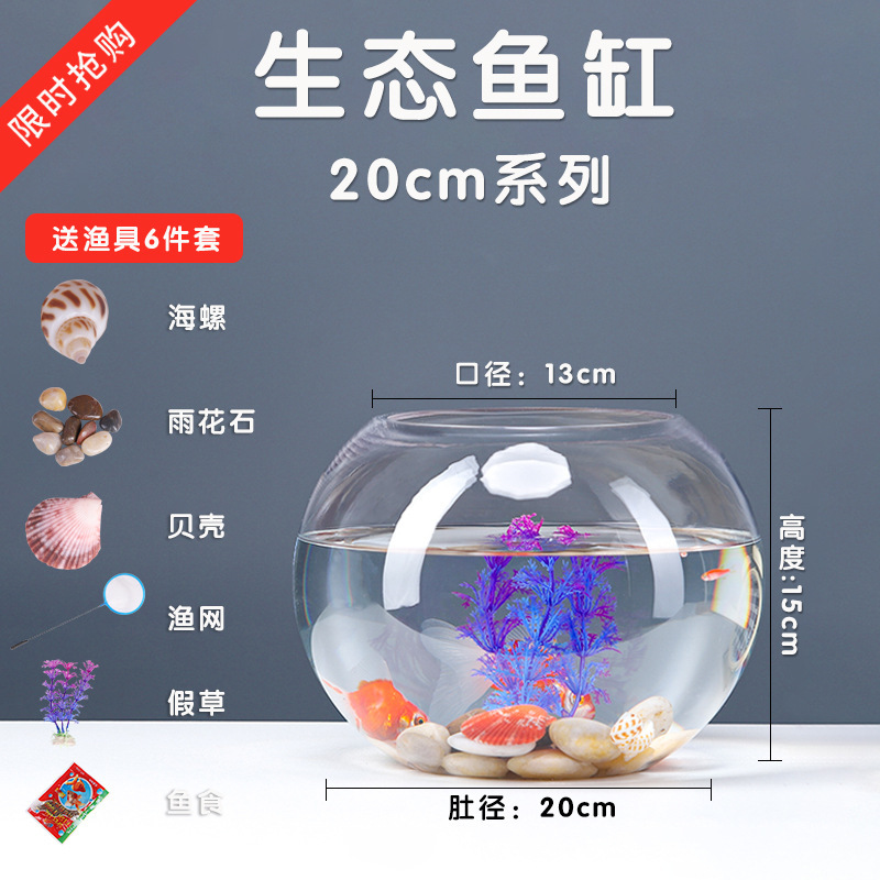 사무실 작은 물고기 탱크 두꺼운 투명 유리 거북이 탱크 거실 홈 데스크탑 라운드 미니 작은 금붕어 탱크스토어 가기