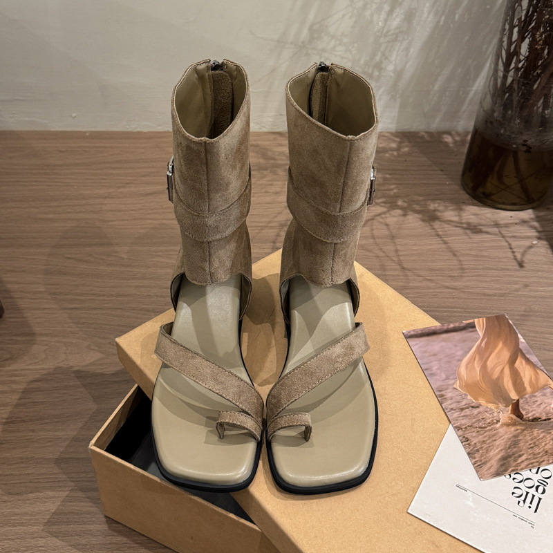 2025 신상 여름부츠, 플립플롭부츠, 플립플롭 샌들, 플랫솔 슬립온 부츠, 여성용 롱부츠