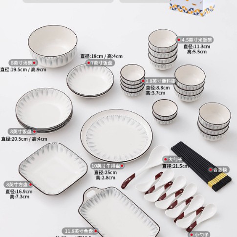 • 10인용 45피스 식기 세트 C - 블루 라인