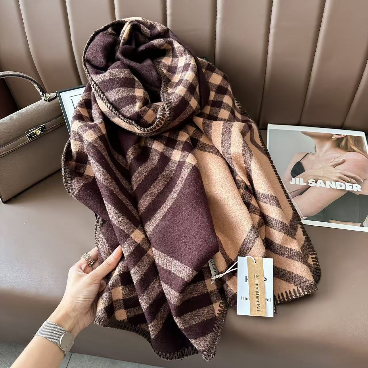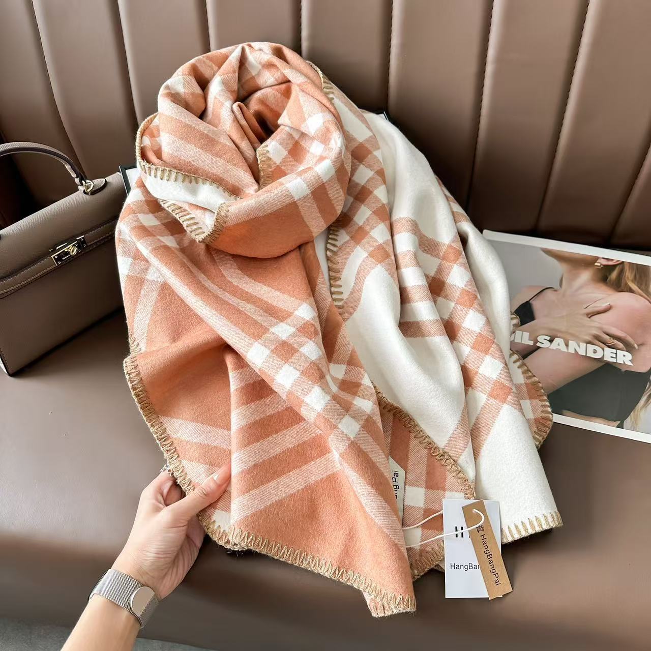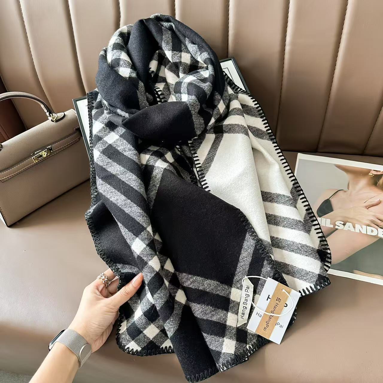 여성을 위한 전지현 같은 스타일의 모조 캐시미어 스카프, 겨울 고급 양면 격자 무늬 따뜻한 스카프, 두꺼운 다용도 숄스토어 가기