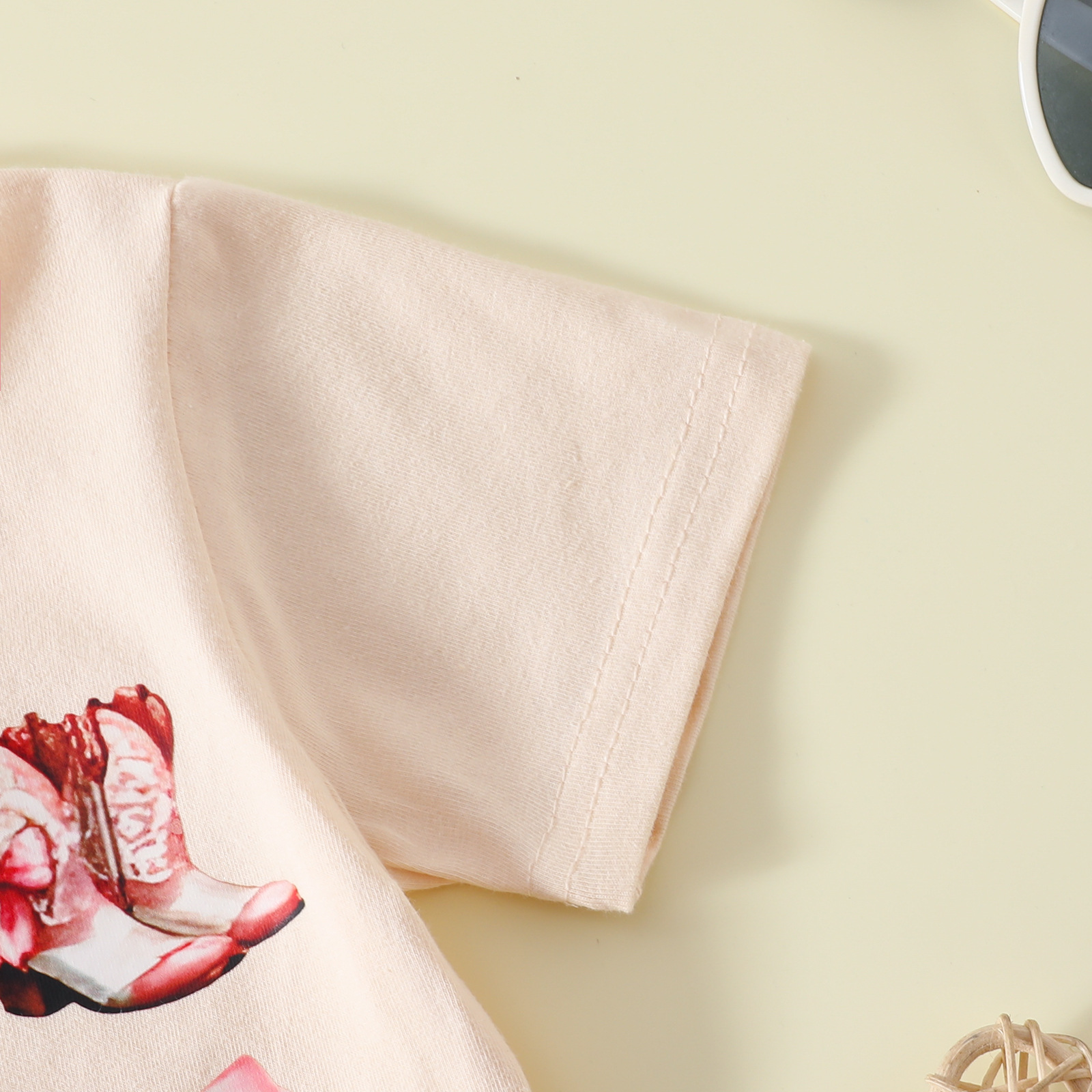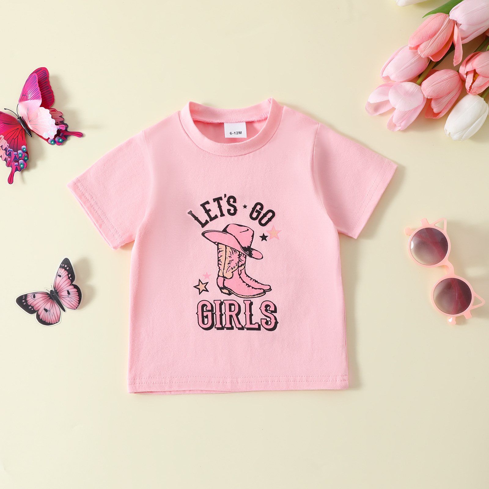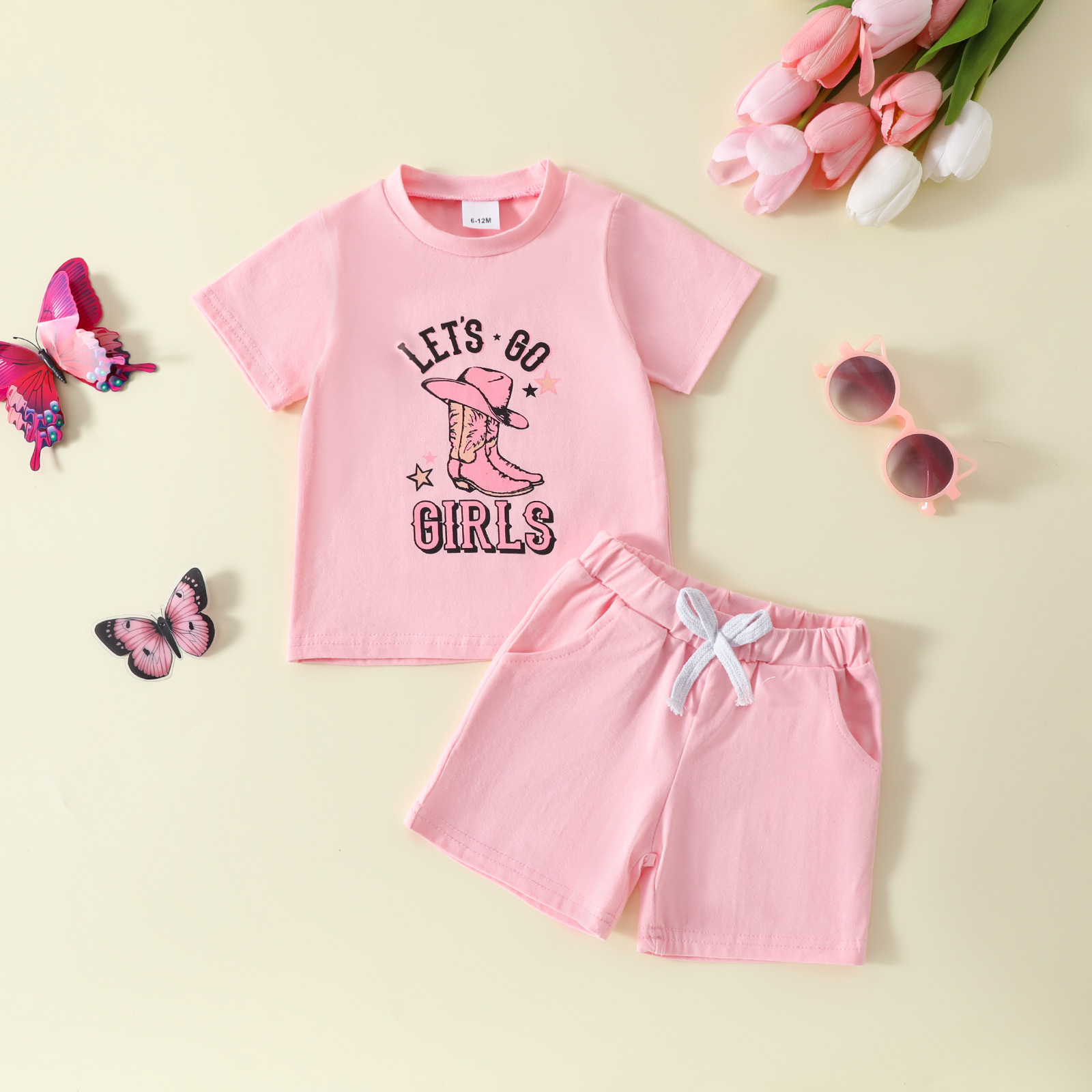 2025 새로운 스타일의 하이힐 프린트 탑과 솔리드 컬러 바지 여름 캐주얼 아동복 여아용 투피스 세트스토어 가기