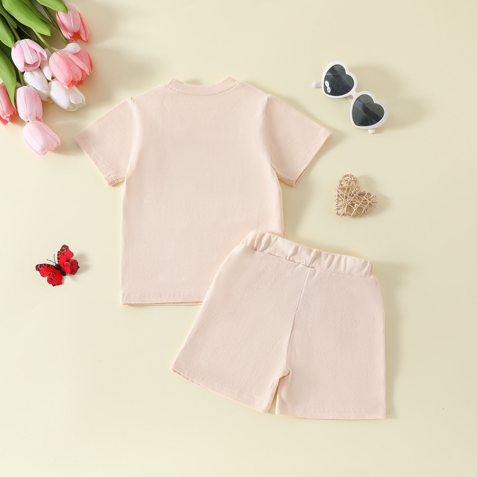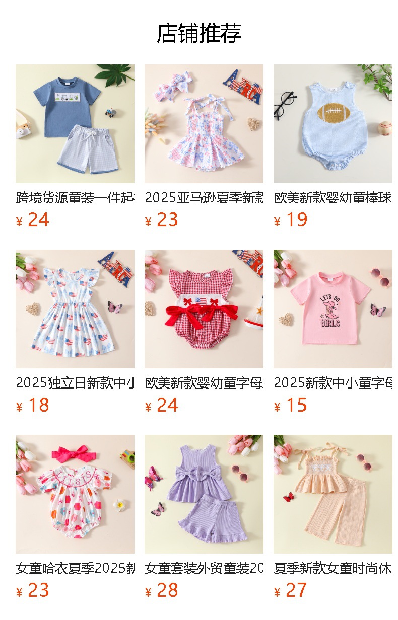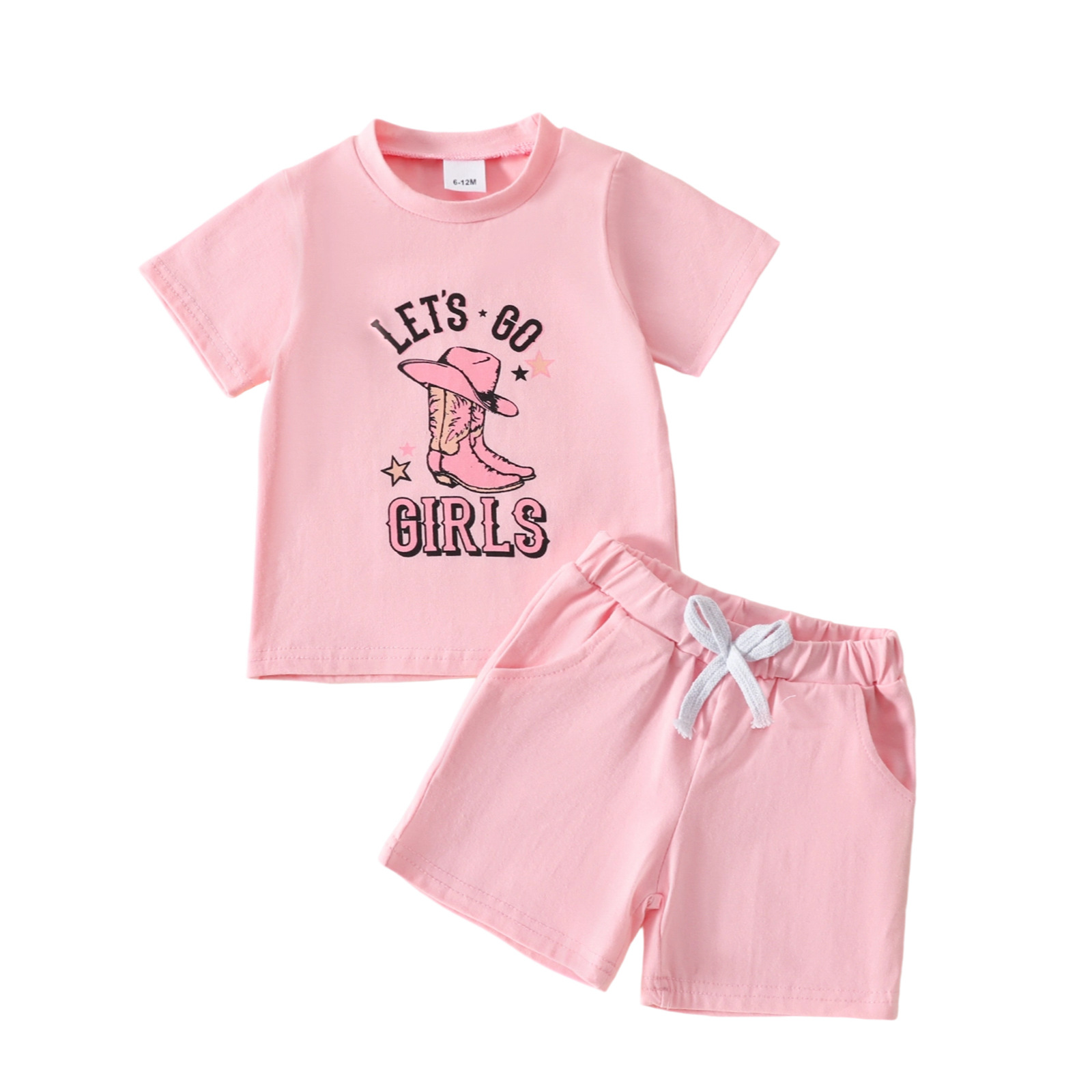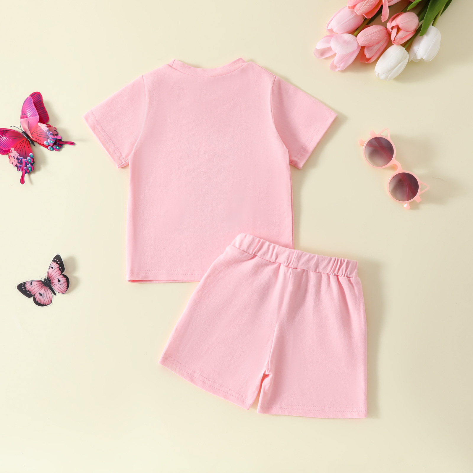 2025 새로운 스타일의 하이힐 프린트 탑과 솔리드 컬러 바지 여름 캐주얼 아동복 여아용 투피스 세트스토어 가기