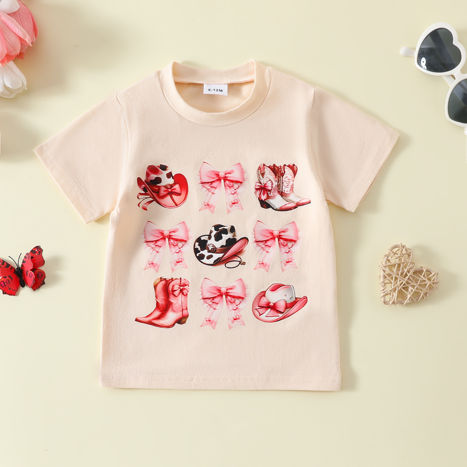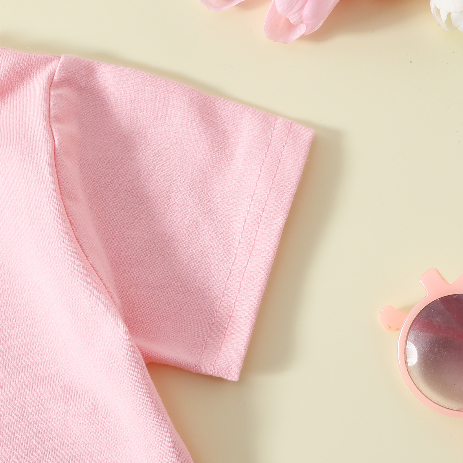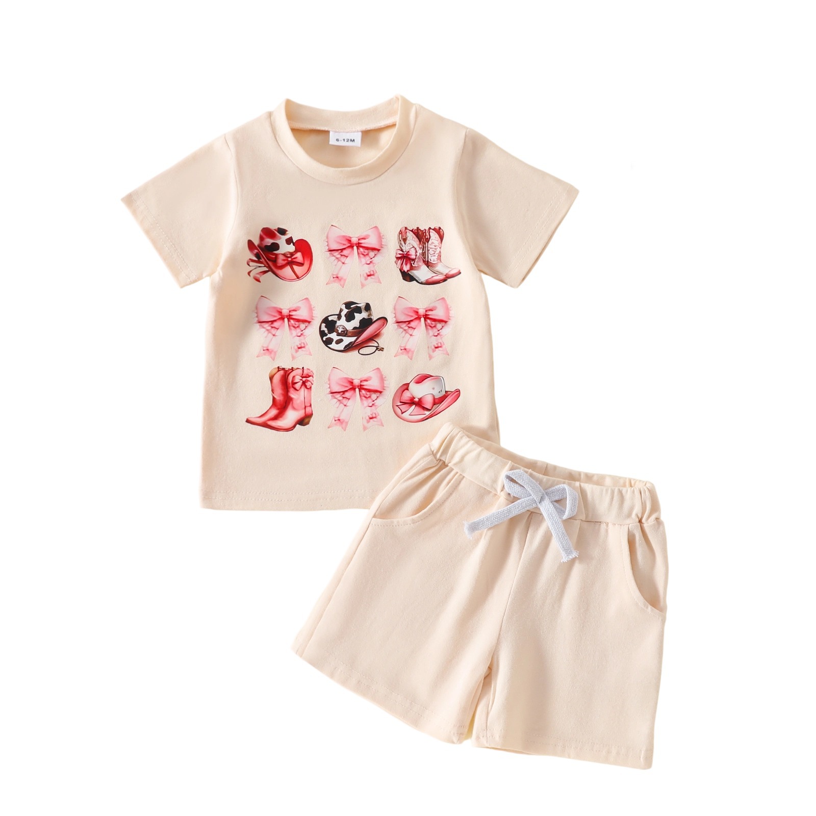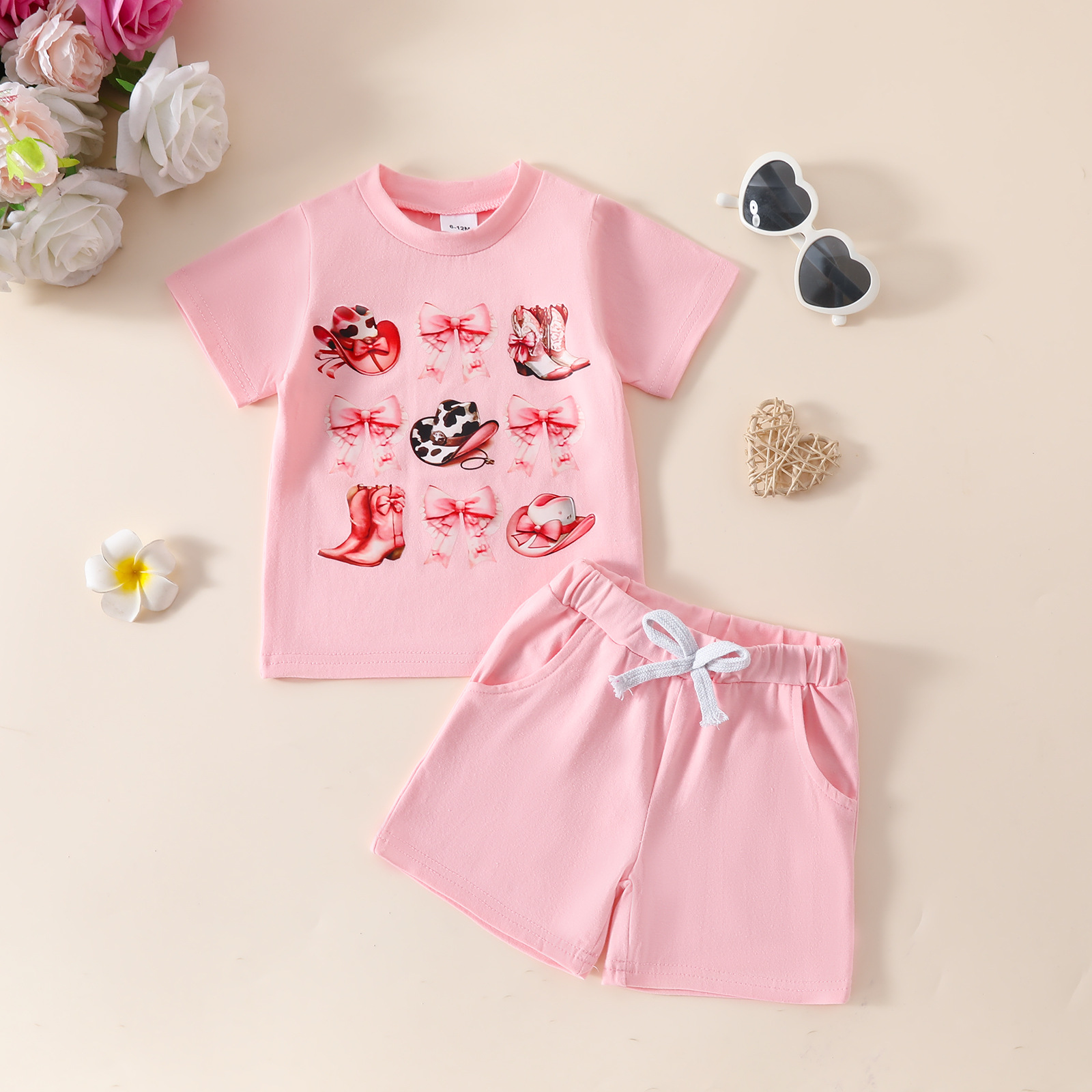 2025 새로운 스타일의 하이힐 프린트 탑과 솔리드 컬러 바지 여름 캐주얼 아동복 여아용 투피스 세트