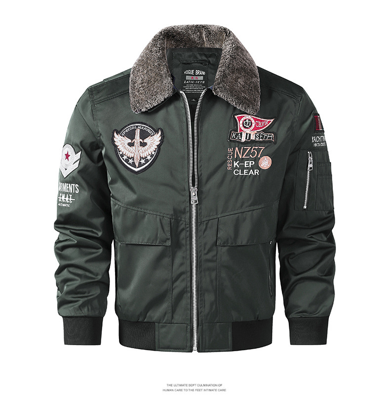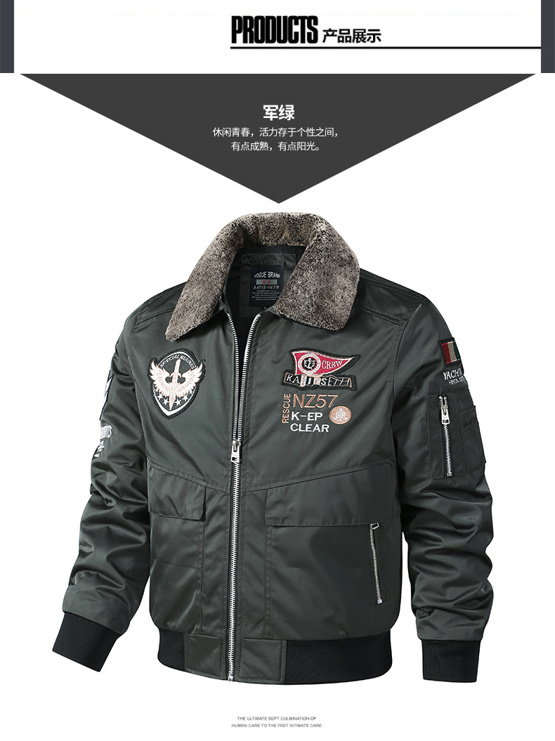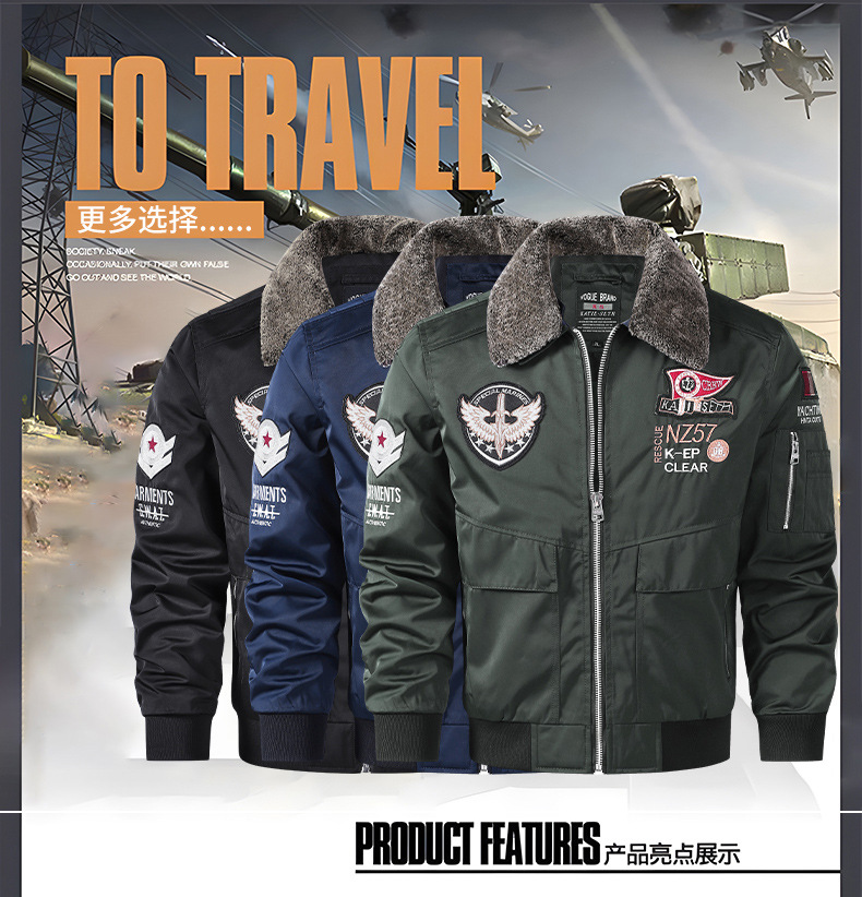 국경 간 대외 무역 가을 겨울 대형 남성 재킷 윈드 브레이커 비행복 모피 칼라 면화 자수 야구 재킷 작업복 재킷스토어 가기