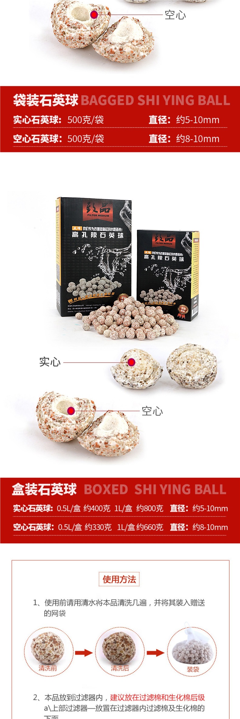 • 중공 석영 볼 1L/상자에는 메쉬 백이 함께 제공됩니다.
