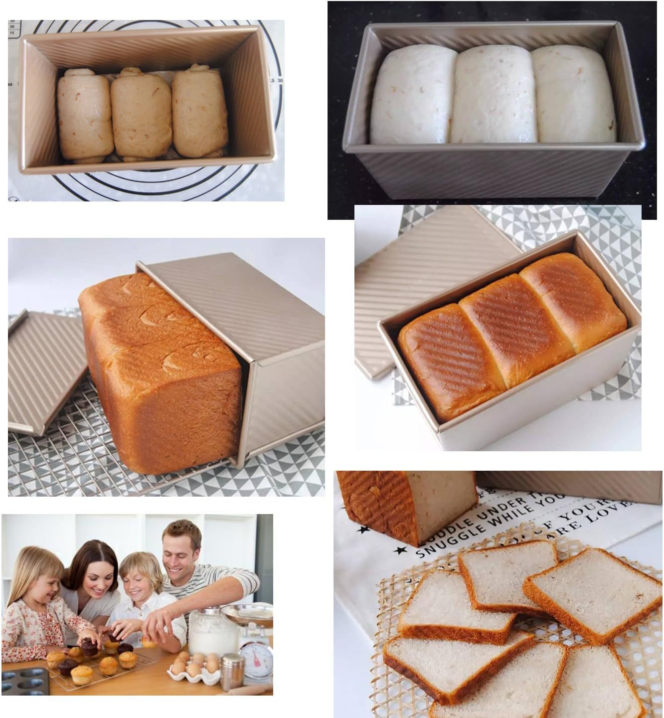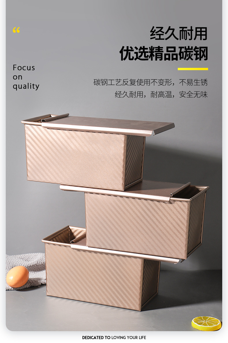 厂家批发长方形金色加厚碳钢波纹带盖烘焙工具面包吐司盒模具