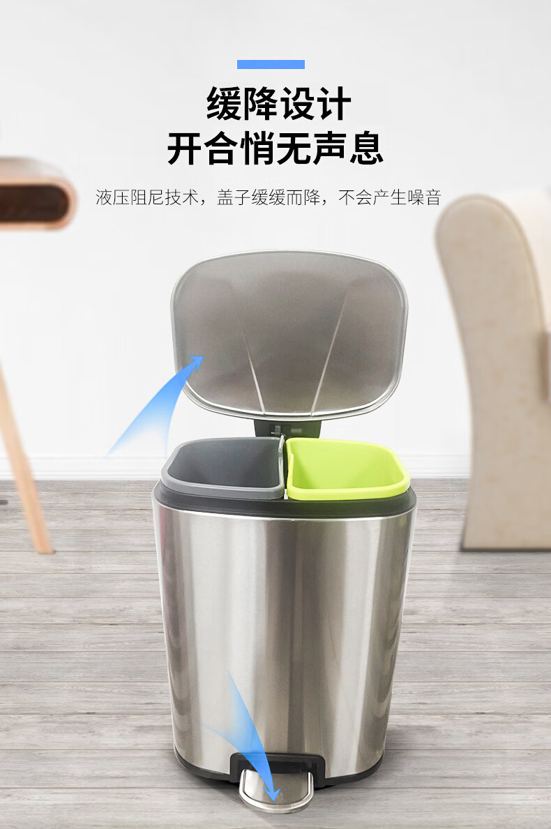 VLEN 상업용 호텔 더블 레이어 스테인레스 스틸 쓰레기통 주방 분류된 담배 재떨이 ZTT0699스토어 가기