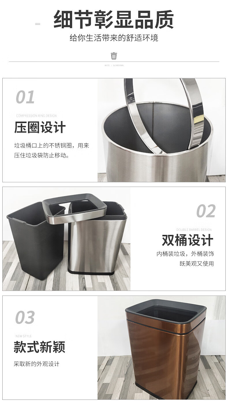 VLEN 상업용 호텔 더블 레이어 스테인레스 스틸 쓰레기통 주방 분류된 담배 재떨이 ZTT0699