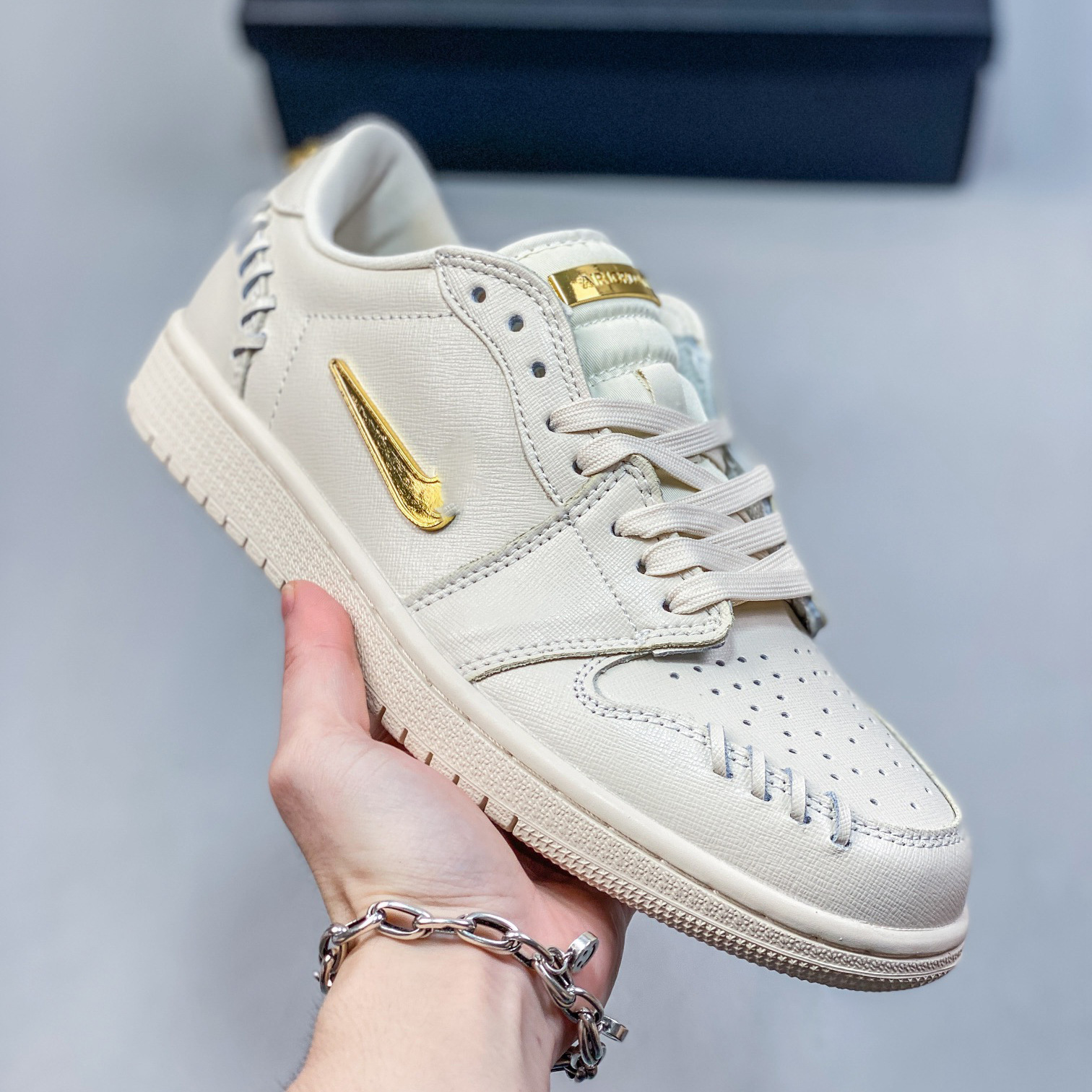 순수 오리지널 AJ1 캐주얼 스니커즈, 스포츠 조 1 농구화, 베이지 골드 후크, 패셔너블한 신발, 미끄럼 방지 및 내마모성 흰색 신발