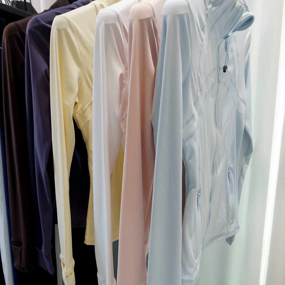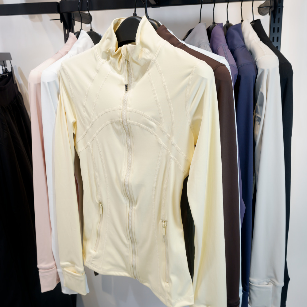 3세대 네트워크 없는 DF 재킷 여성용 얇은 재킷 스포츠 및 레저 클래식 피트니스 스탠드 칼라 요가복 고탄성 및 통기성스토어 가기