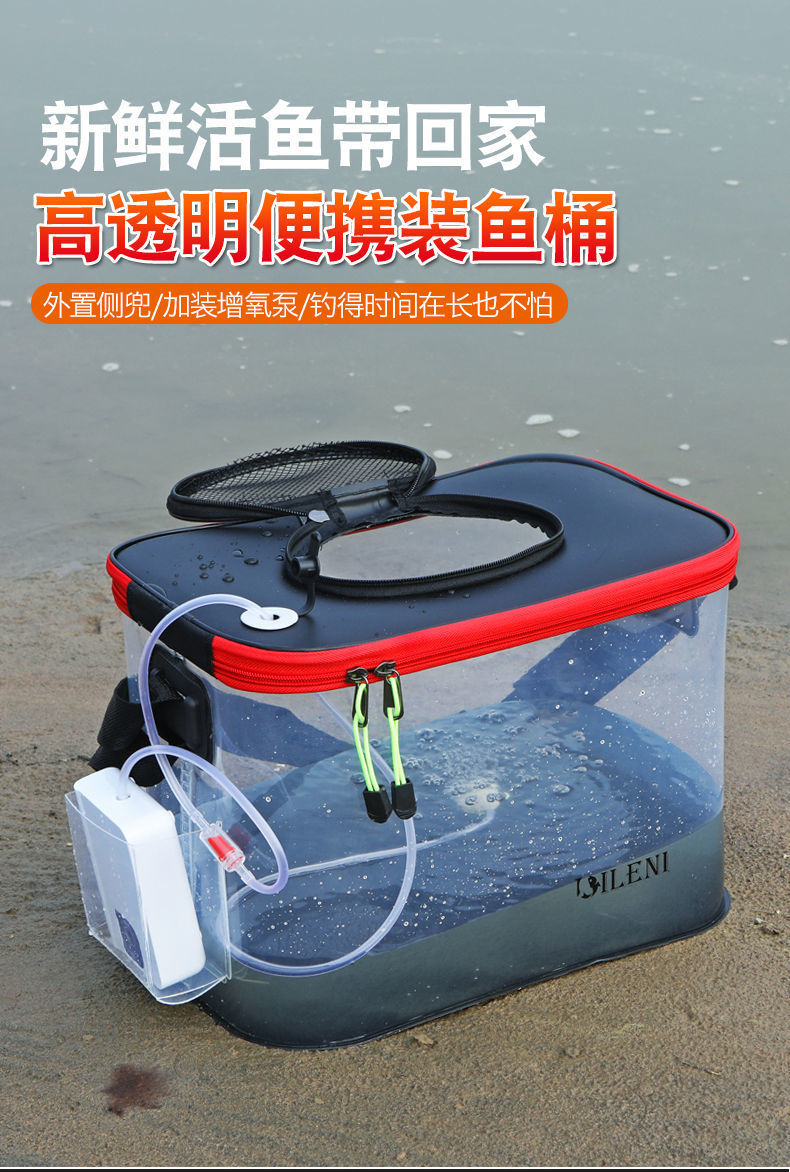 낚시통, 생선통, 두꺼운 투명 물통, EVA 접이식 휴대용 물통, 야외 물통, 방수 직선형스토어 가기