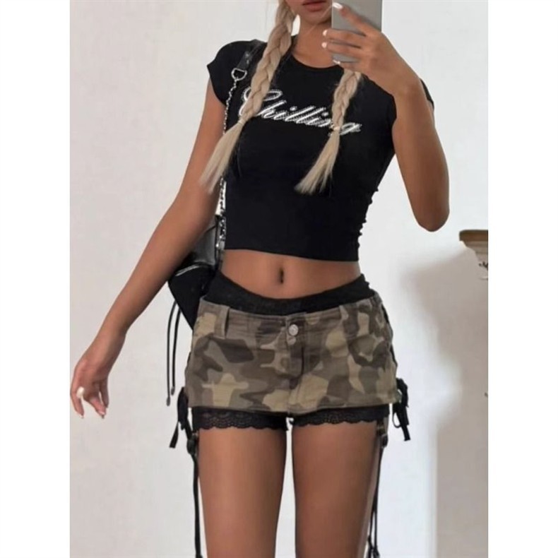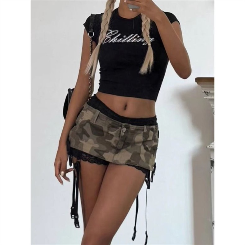 아메리칸 레트로 y2k 미니 스커트 로우 웨이스트 노출 방지 카모 데님 핫 소녀 섹시한 나이트 클럽 힙 커버 스커트