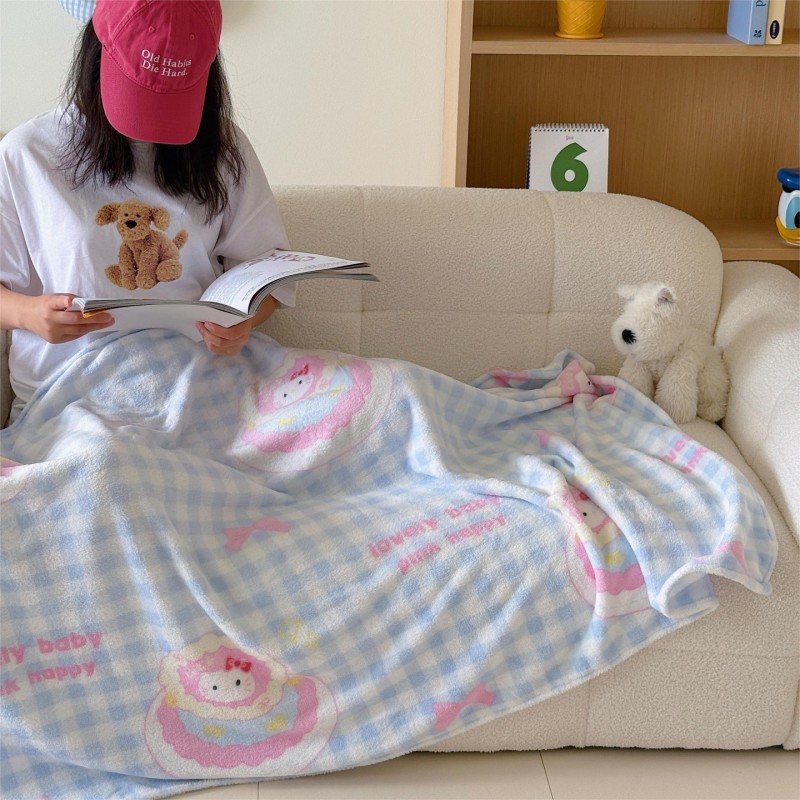 외국 무역용 인스 스타일 만화 소녀풍 양면 밀크 벨벳 담요 가을 겨울 두꺼운 다용도 낮잠 에어컨 담요스토어 가기