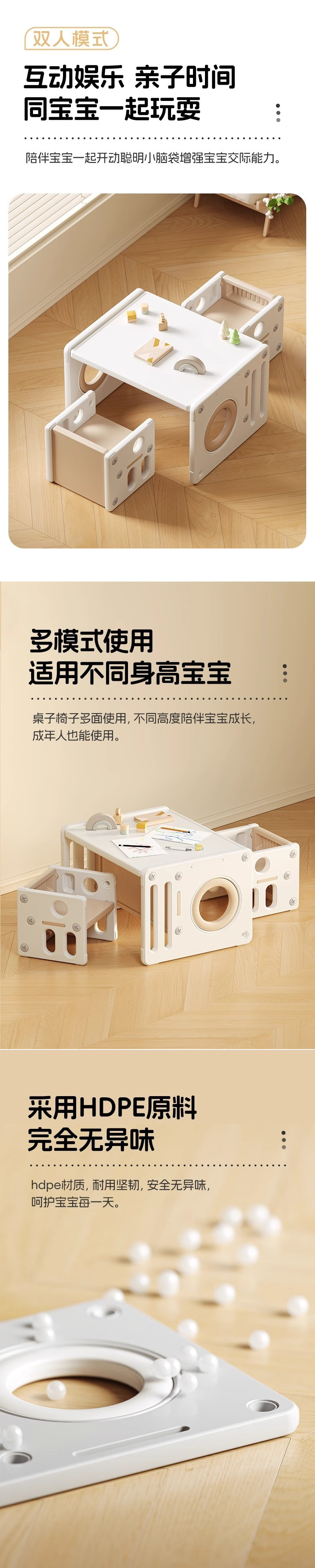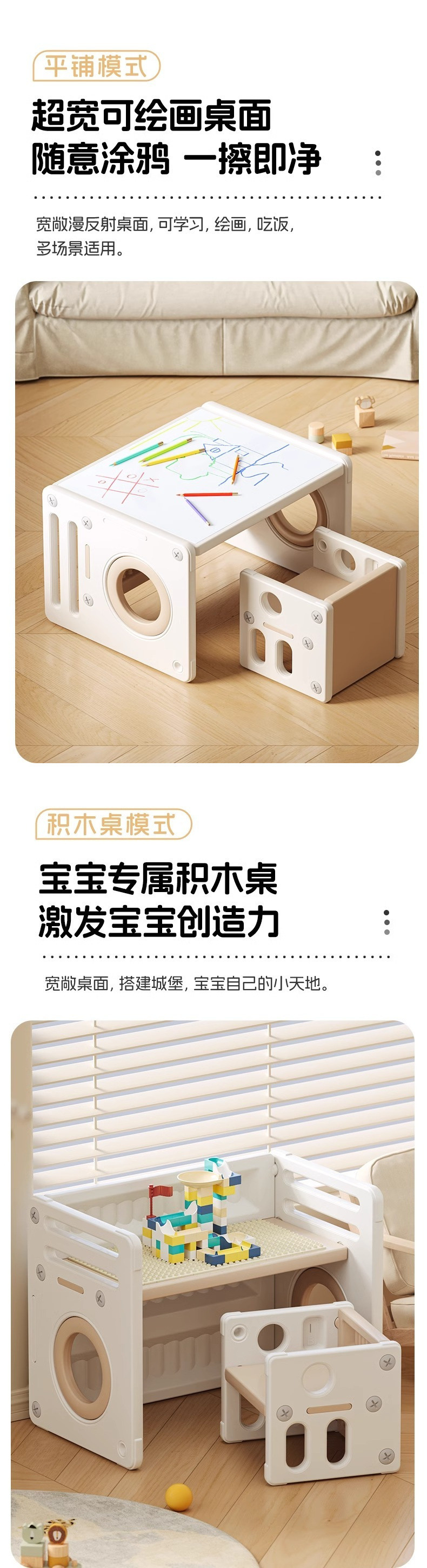 • 업그레이드 모델, 테이블 1개, 의자 1개, 베이지색(그리고 블록으로 놀 수 있음)