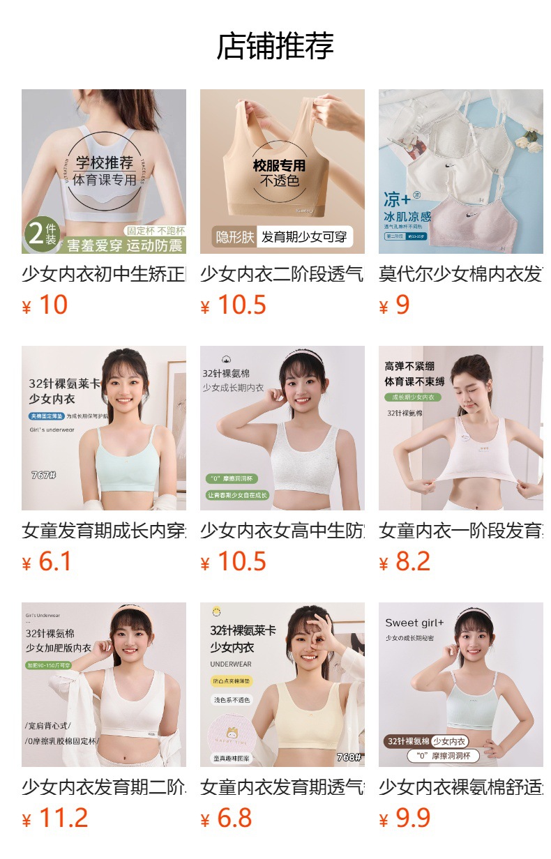 여아 속옷, 아이스 실크 시원한 여아 속옷, 발달기, 무봉제 여름 얇은 중학생 조끼 브라스토어 가기
