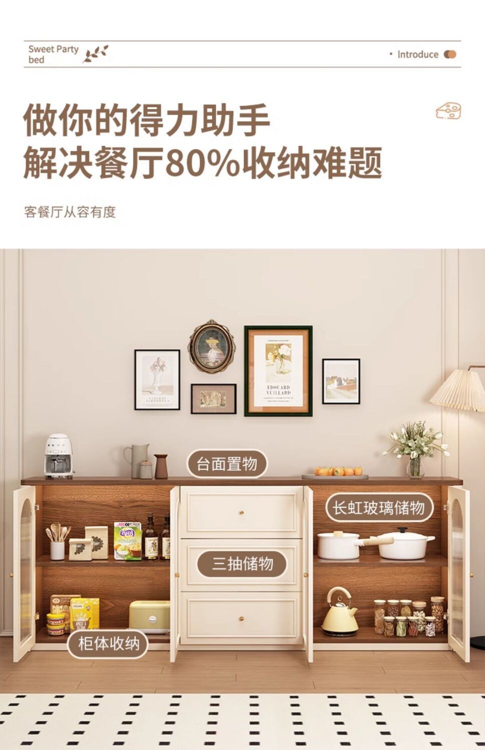 프렌치 사이드보드와 서랍장, 벽걸이형 주방수납장, 소형거실, 아크코너수납장, 찻물장