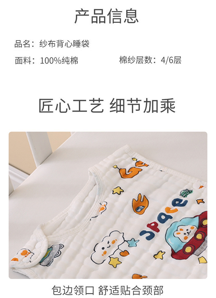 아기 조끼 침낭 어린이 거즈 침낭 신생아 안티 킥 시어서커 침낭 여름 부드럽고 흡수성스토어 가기