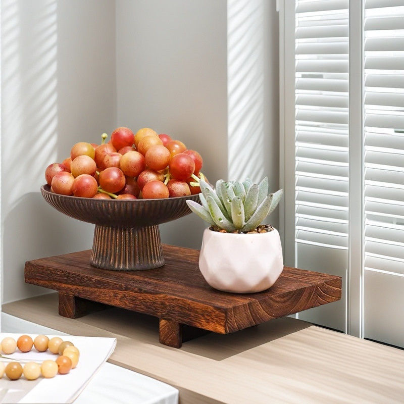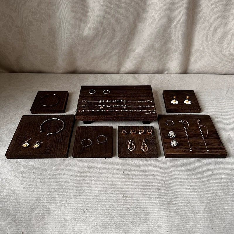 단단한 나무 장식 트레이 검은 호두 색상 드래그 베이스 단단한 나무 장식품 직사각형 브래킷 홈 디스플레이 데스크탑스토어 가기