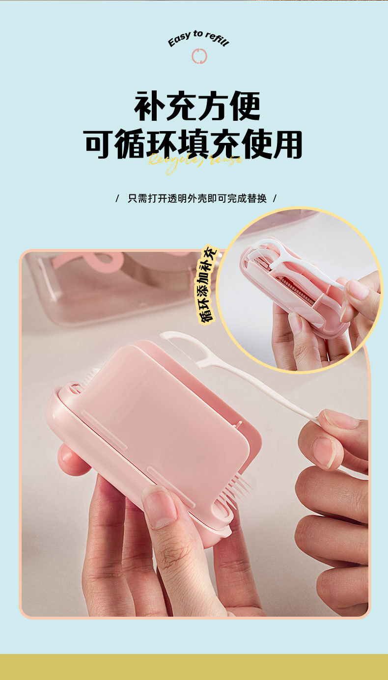 치실 상자가 자동으로 팝업되며 휴대용 미니 이쑤시개 치실 초극세 치실 스틱 가정용 보관 상자가 있습니다.스토어 가기