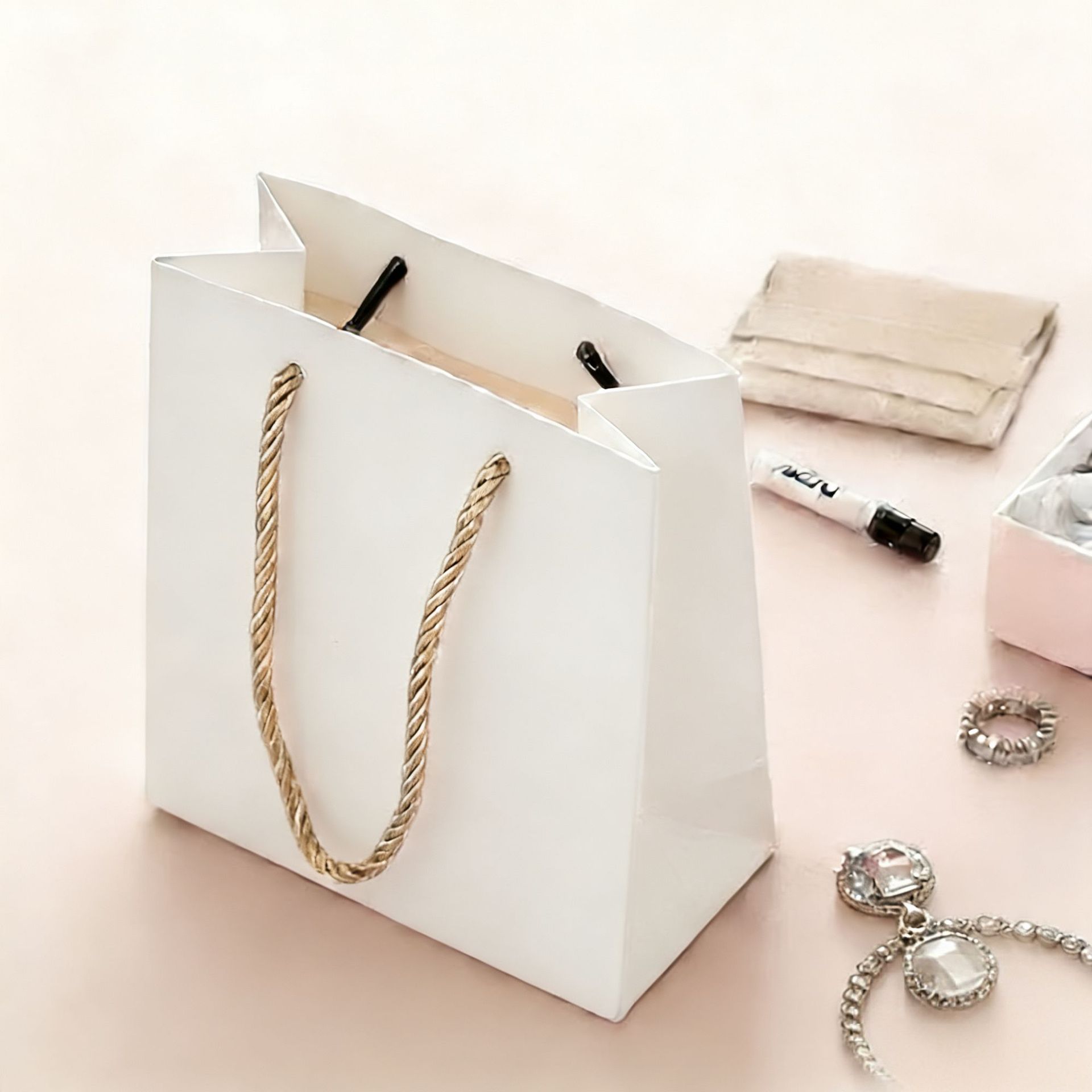 • 진주 화이트 엠보싱 코팅; 230g 백색 카드지 15*14*7cm