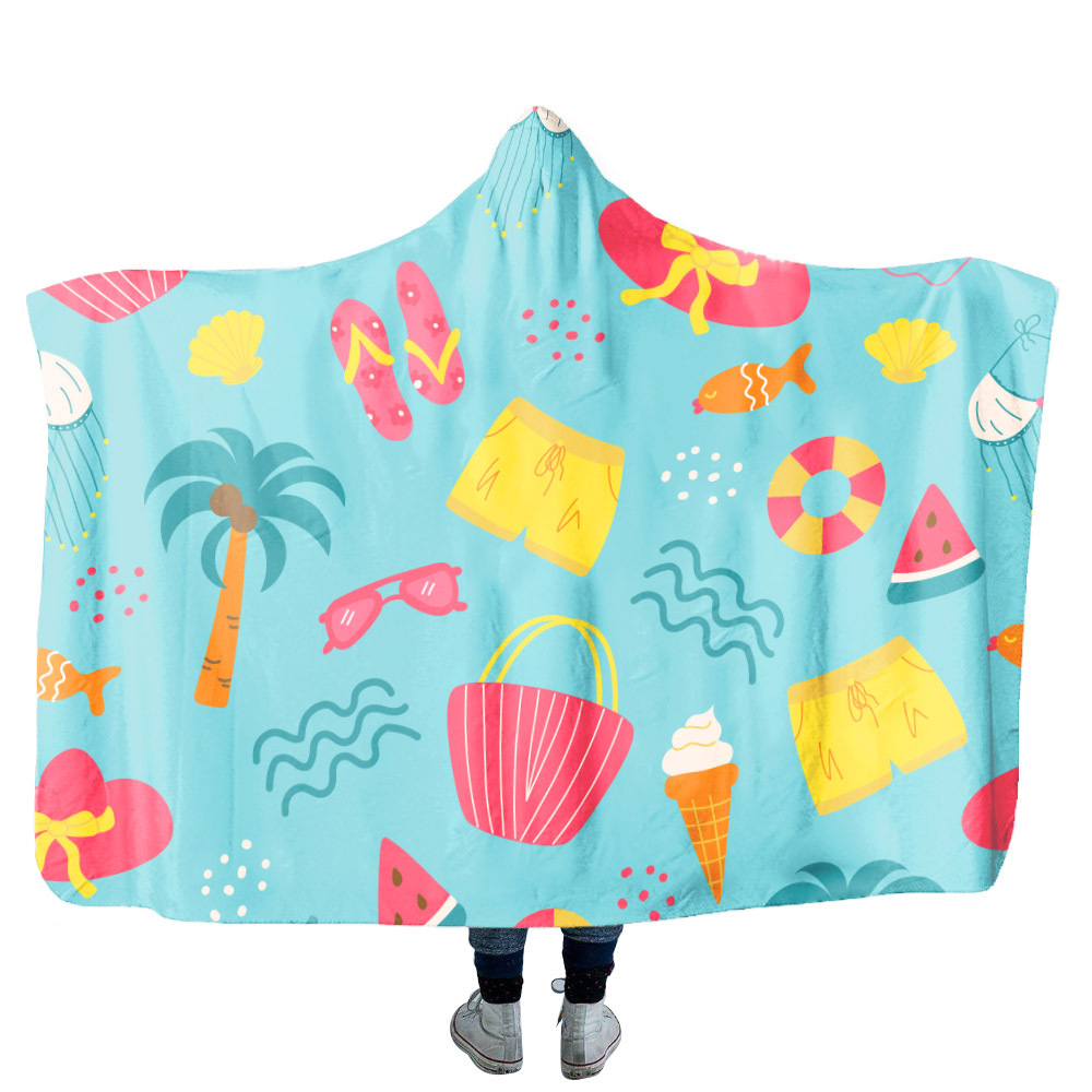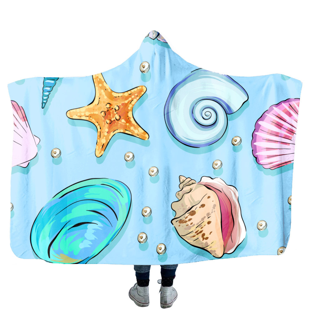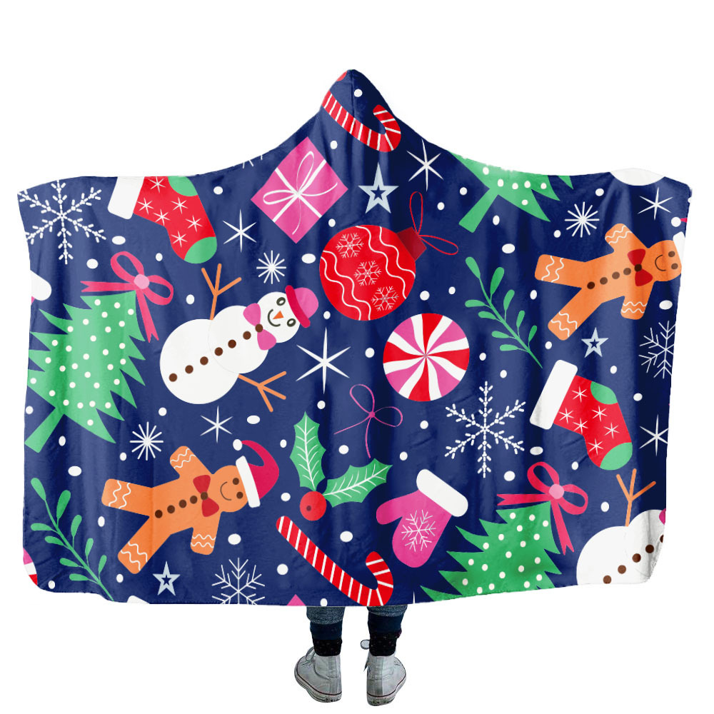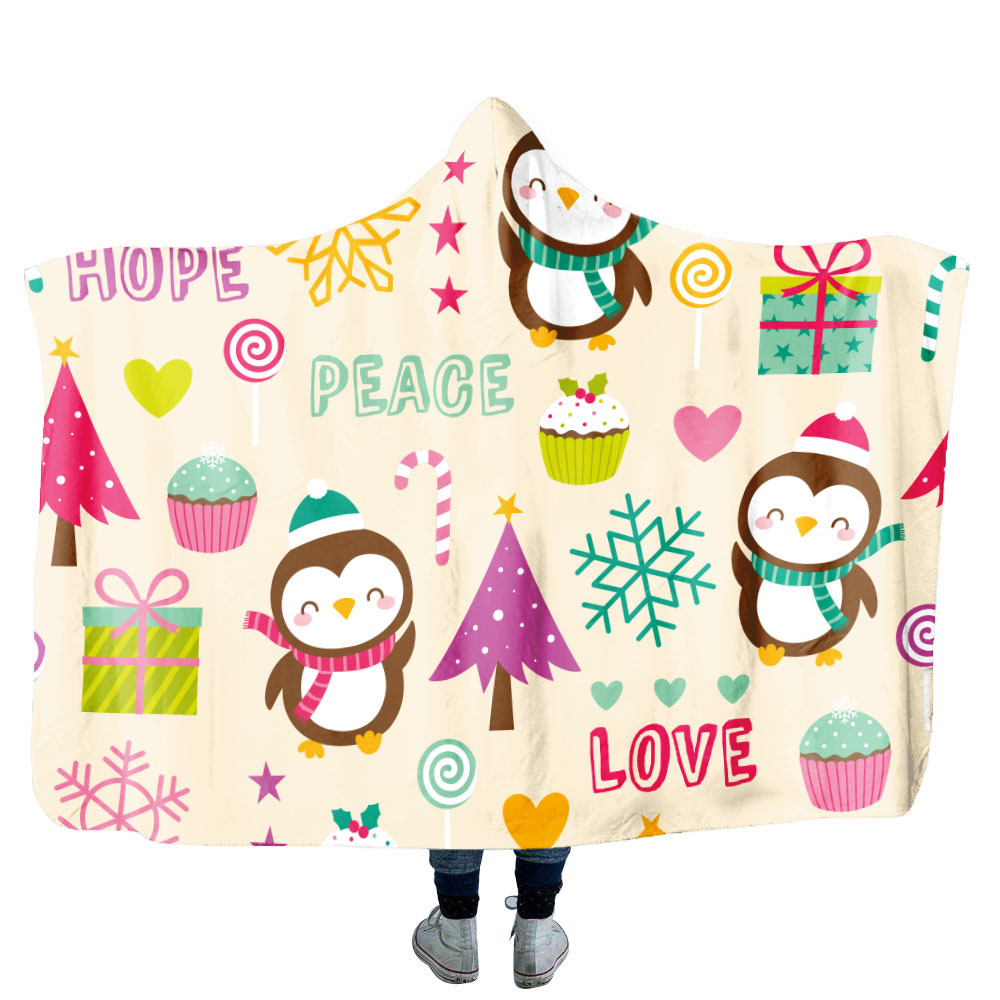 국경 간 플란넬 후드 웨어러블 담요 디지털 인쇄 망토 목도리 담요 두꺼운 소파 커버 담요 게으른 담요
