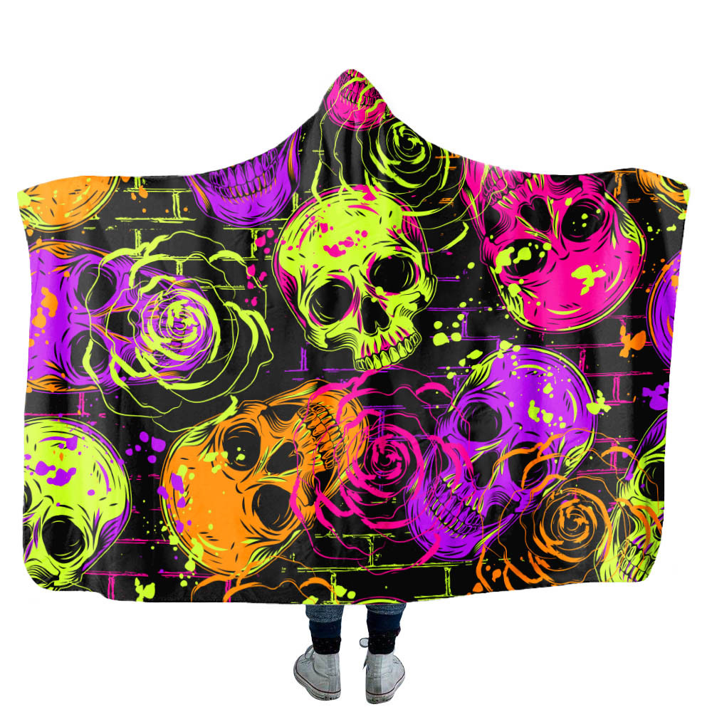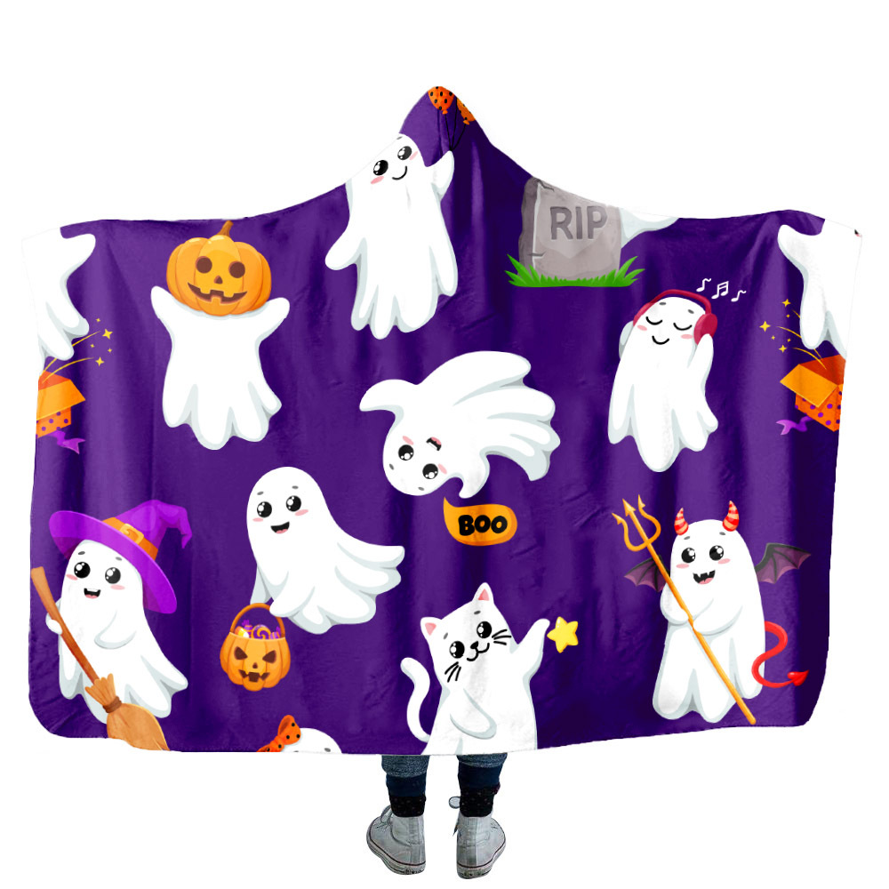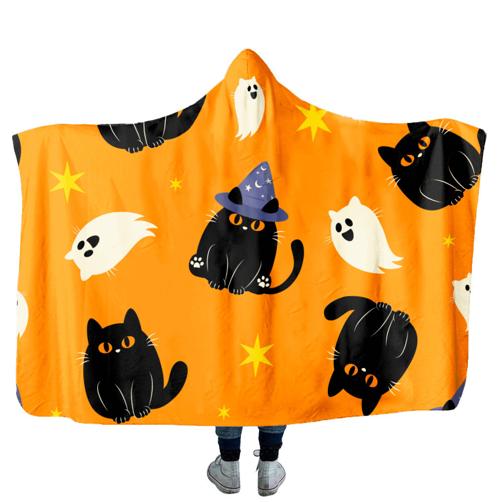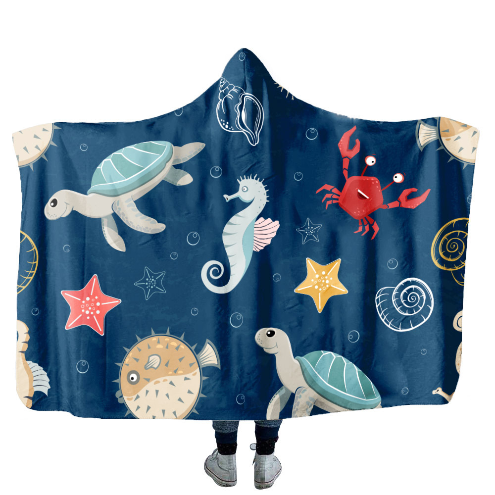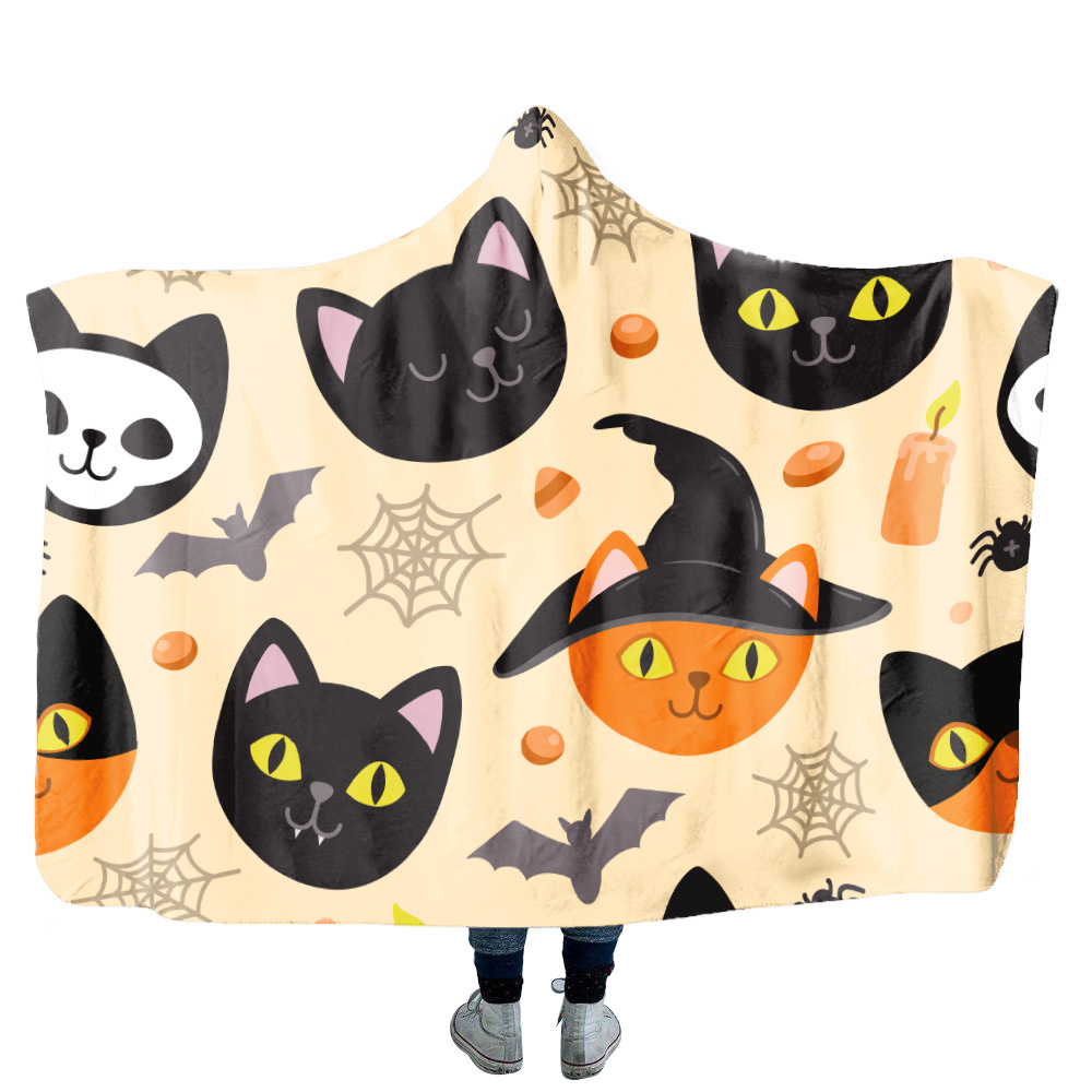 국경 간 플란넬 후드 웨어러블 담요 디지털 인쇄 망토 목도리 담요 두꺼운 소파 커버 담요 게으른 담요