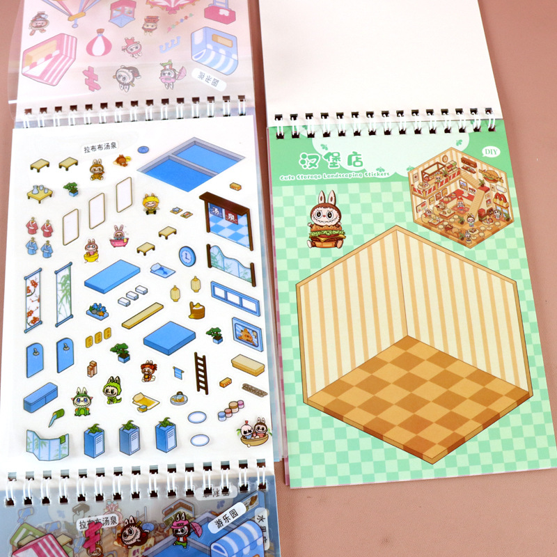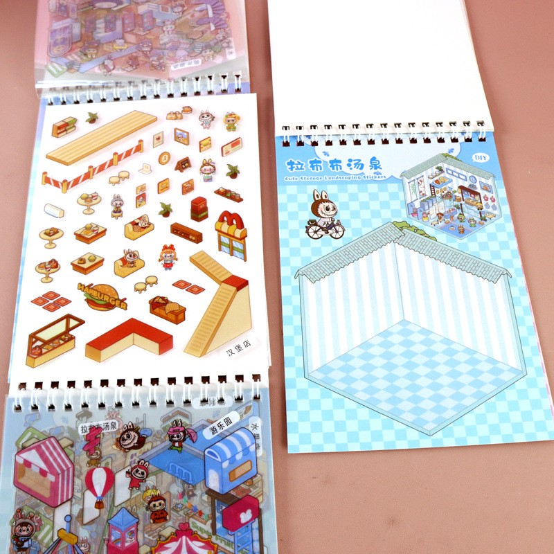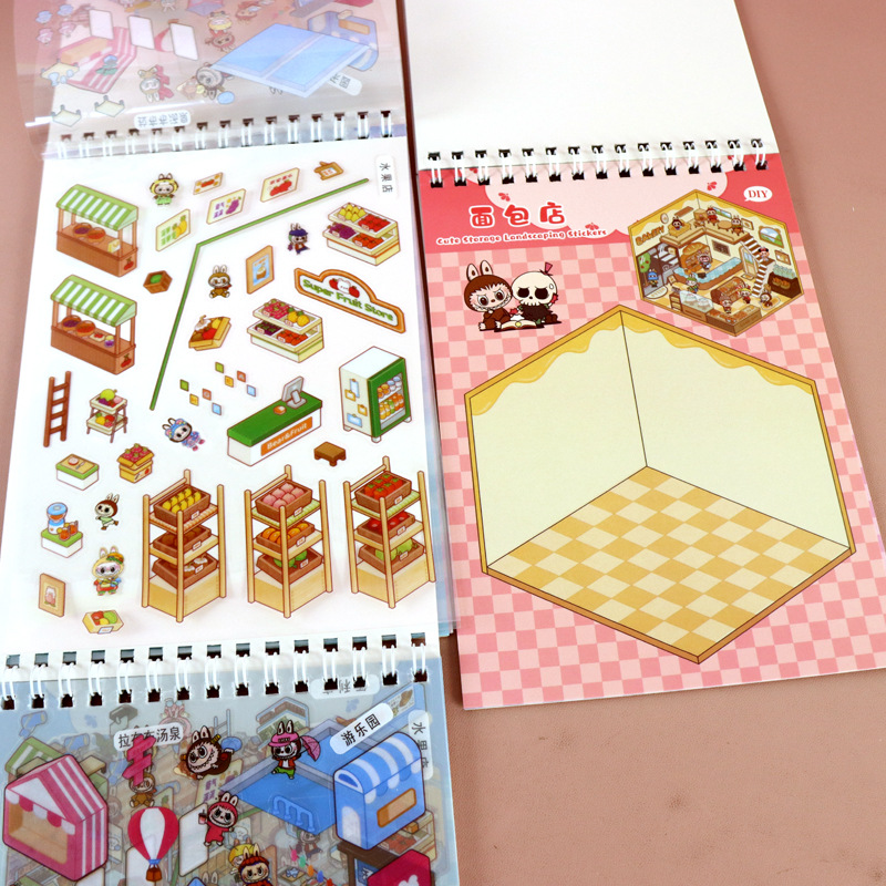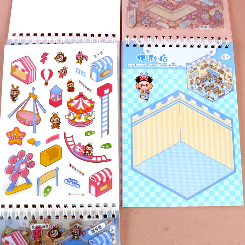 어린이 만화 감압 조경 스티커 책 크리 에이 티브 미니어처 장면 콜라주 DIY 입체 랩 브레드 핸드북 스티커스토어 가기