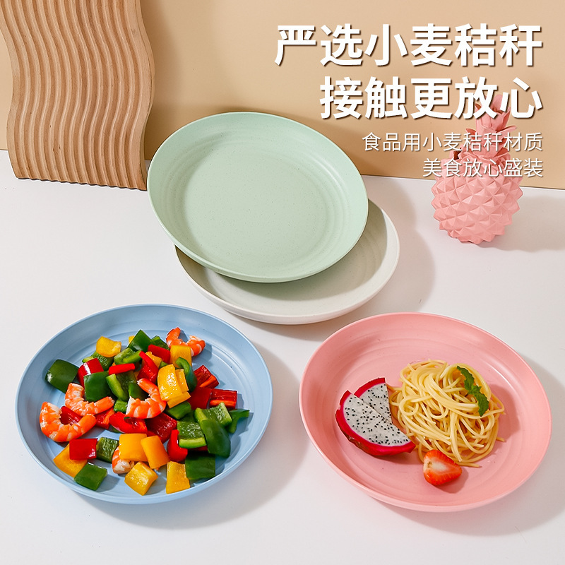 밀짚 접시 전자 레인지 플라스틱 가정용 원형 가정용 원형 대형 접시 두꺼운 낙하 방지 및 화상 방지스토어 가기
