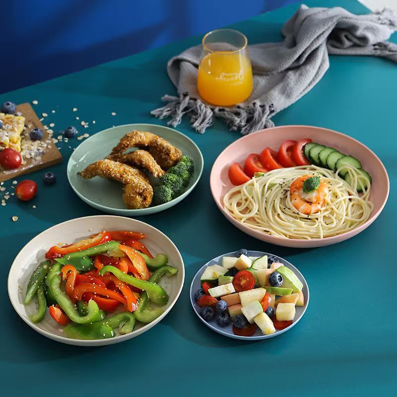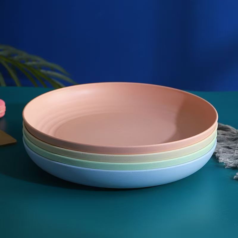 밀짚 접시 전자 레인지 플라스틱 가정용 원형 가정용 원형 대형 접시 두꺼운 낙하 방지 및 화상 방지