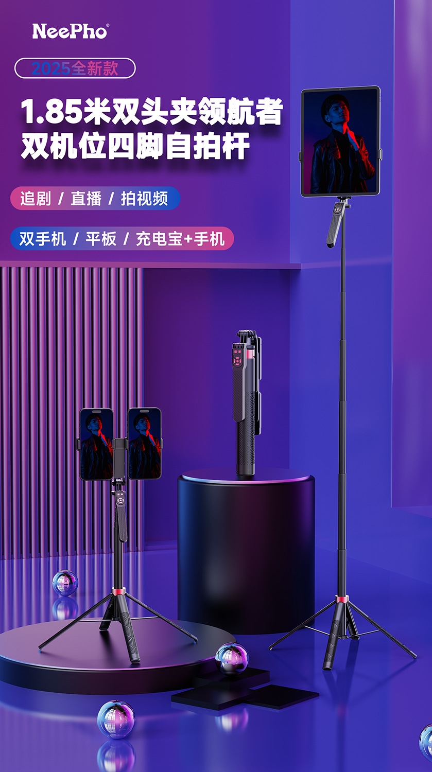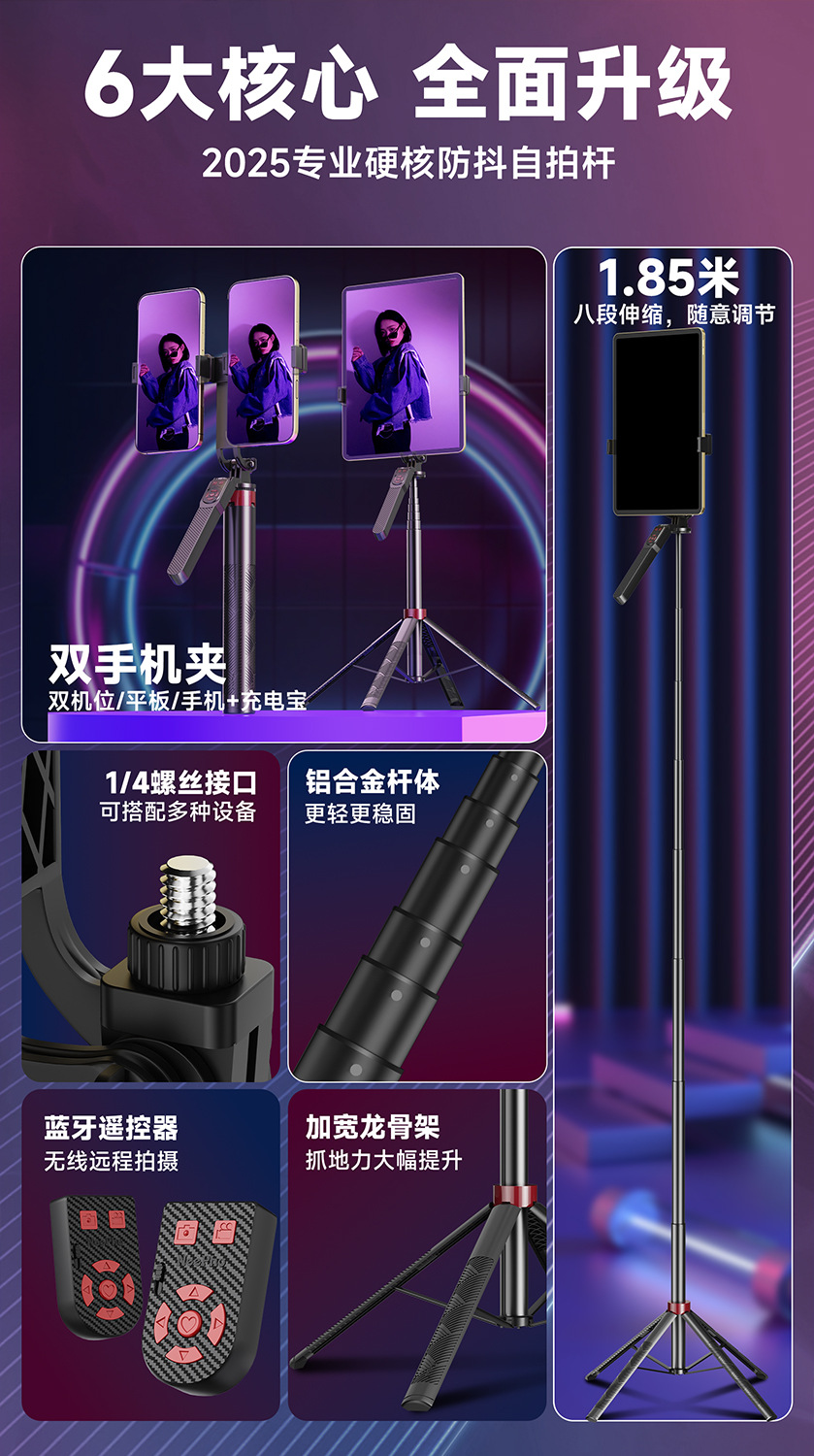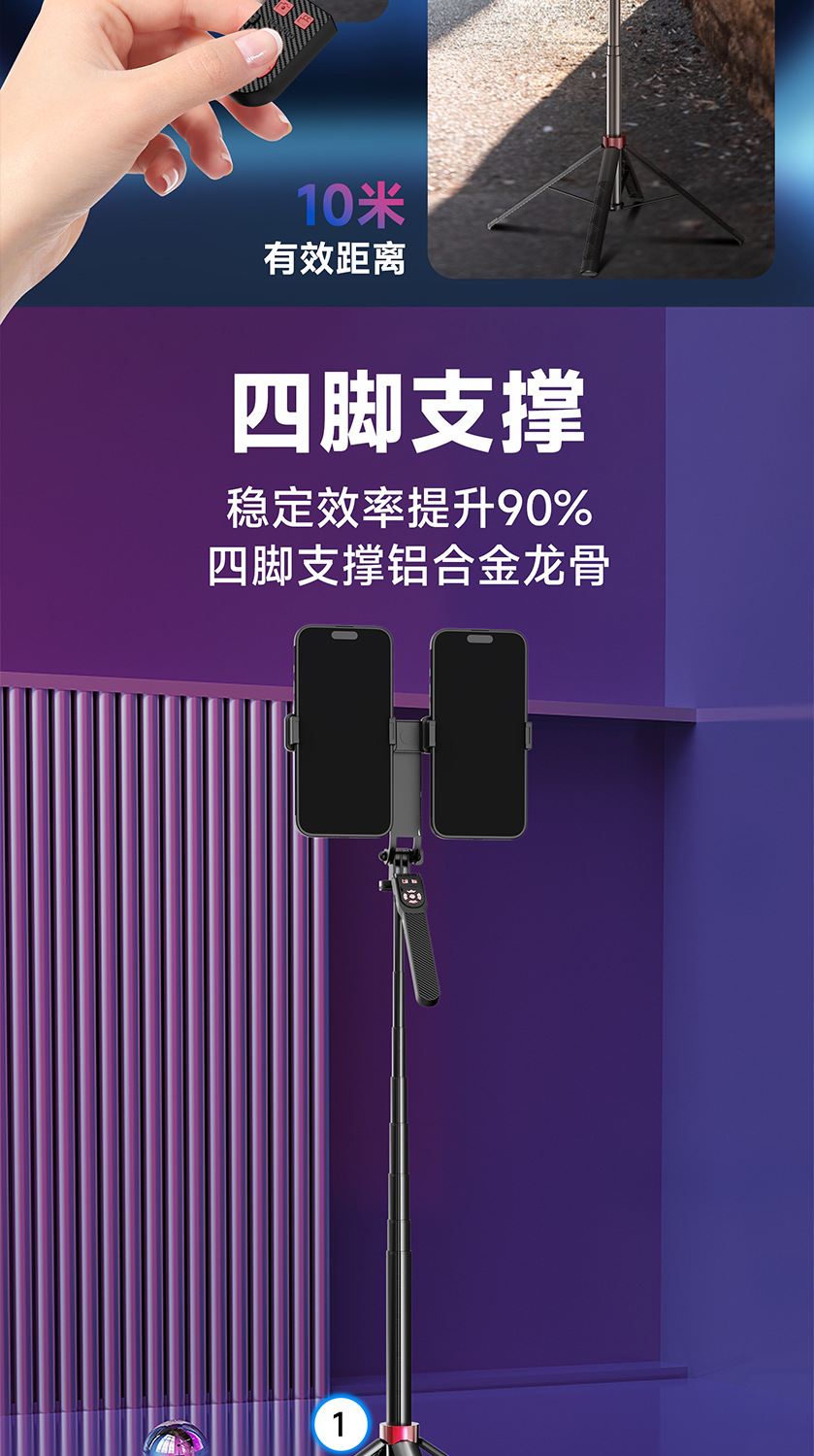 듀얼 카메라 셀카봉, 흔들림 방지, 접이식 블루투스 원격 제어, 휴대용 태블릿, 라이브 방송 스탠드, 셀카용 안정기