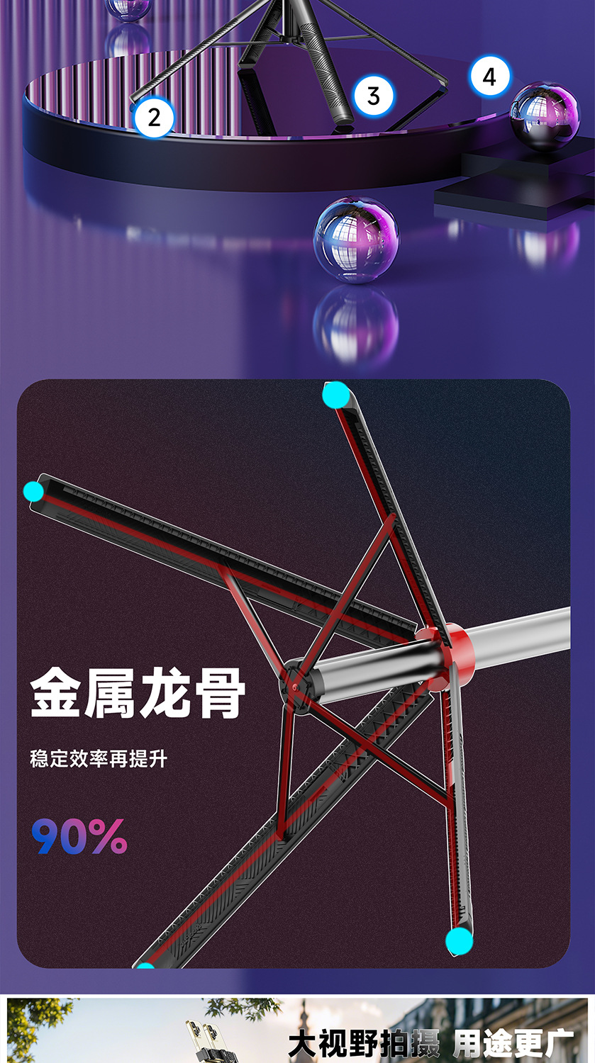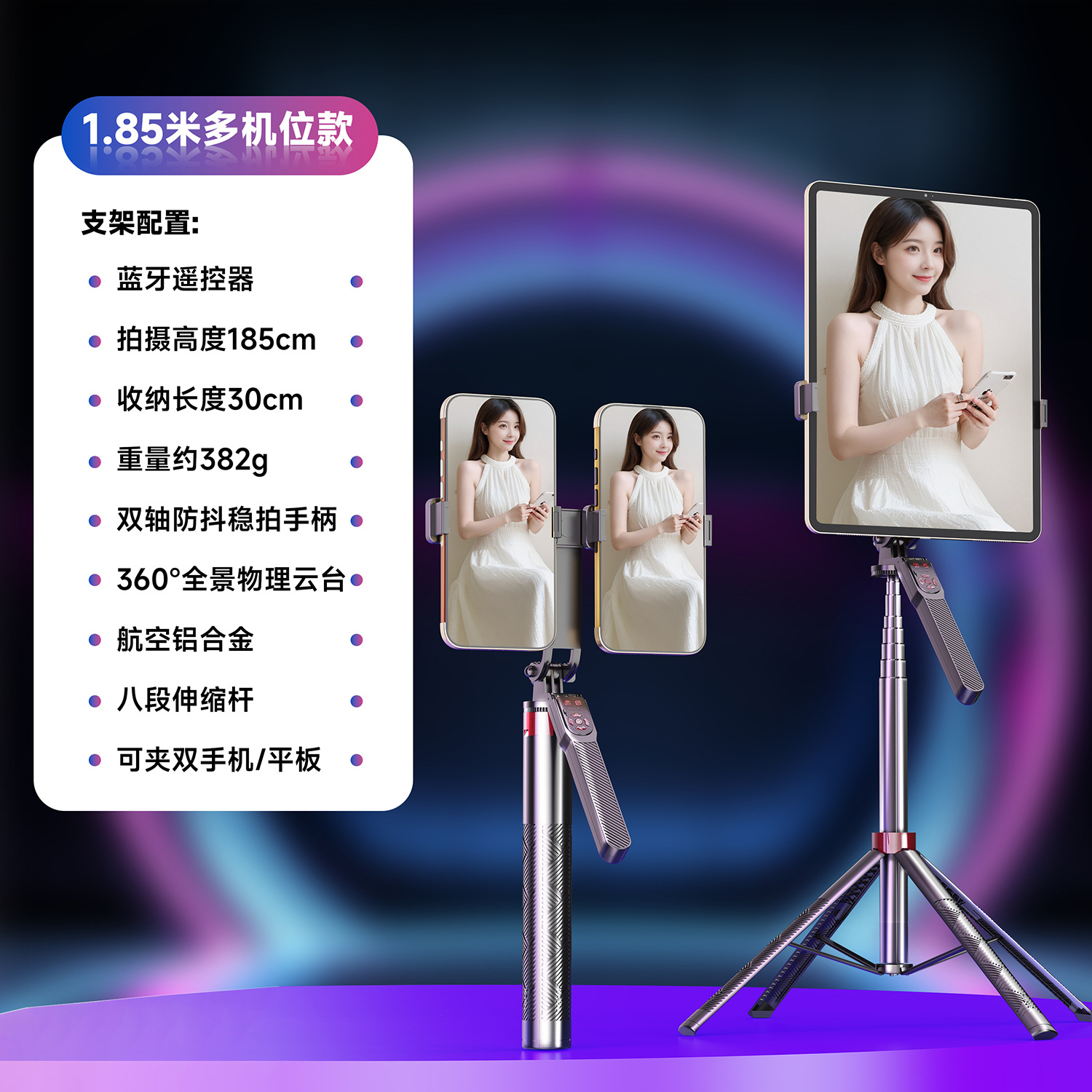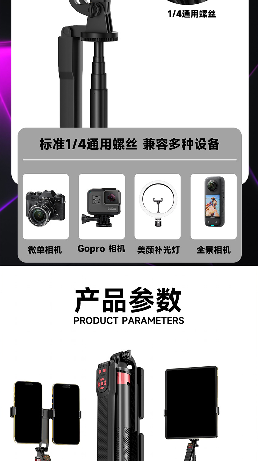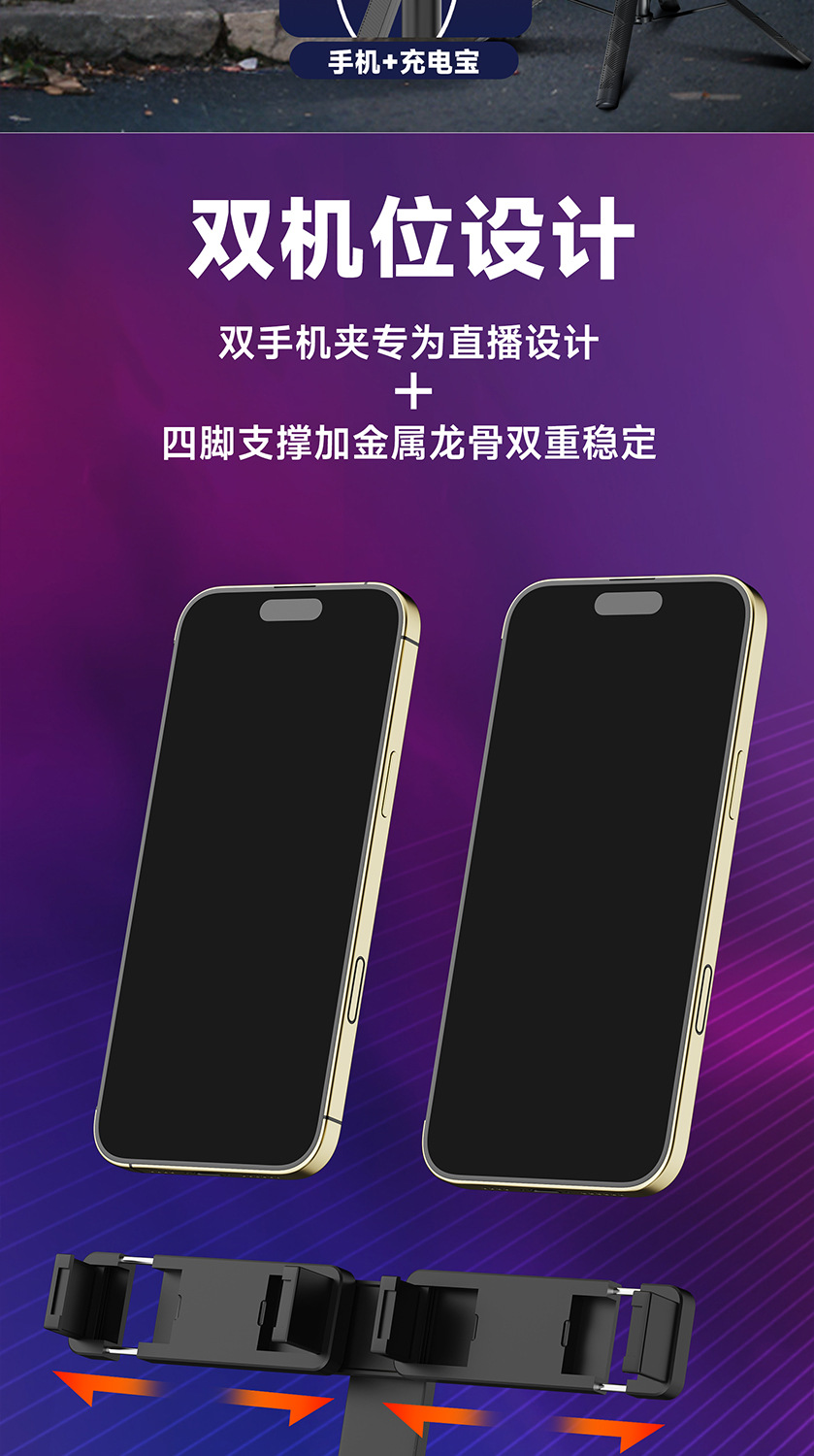 듀얼 카메라 셀카봉, 흔들림 방지, 접이식 블루투스 원격 제어, 휴대용 태블릿, 라이브 방송 스탠드, 셀카용 안정기