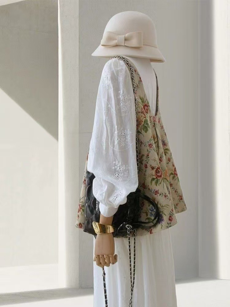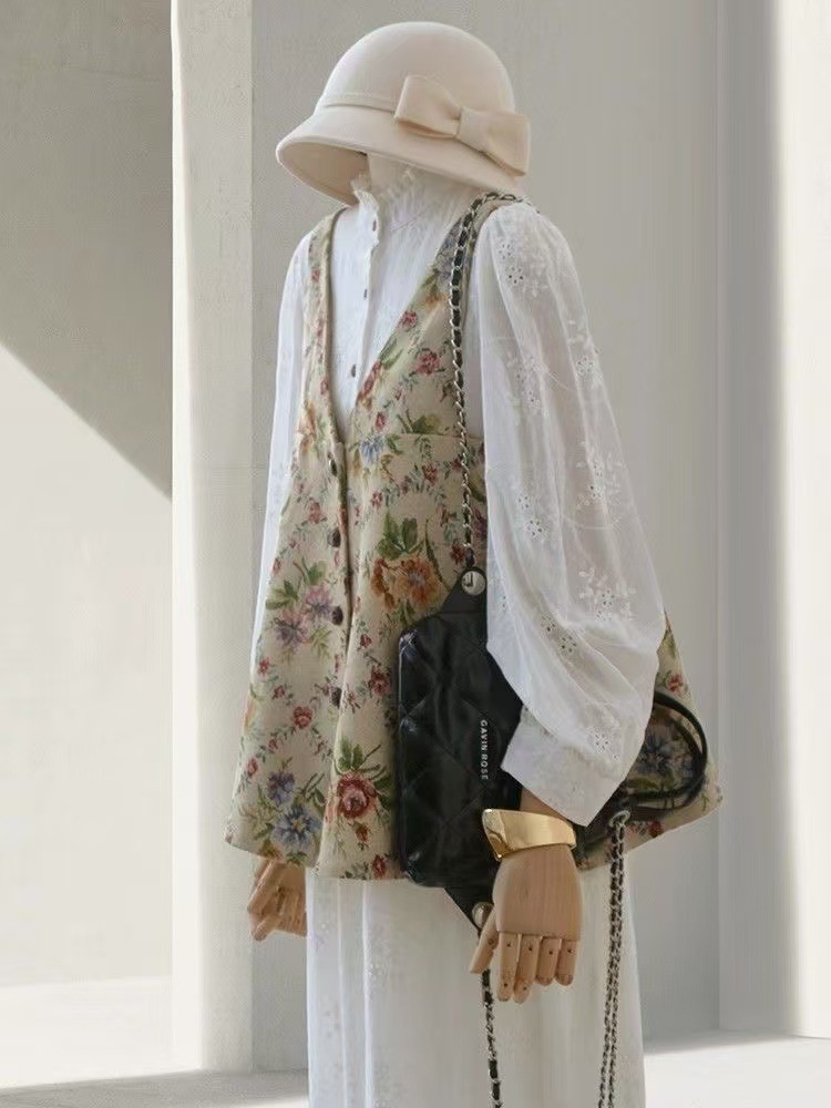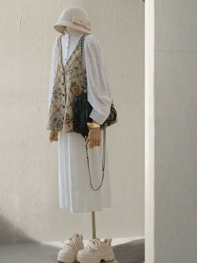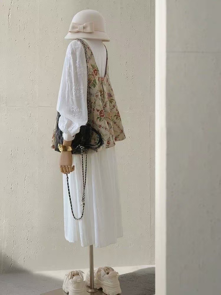 여성을위한 꽃 무늬 조끼 + 드레스 투피스 세트 봄, 가을 새로운 프랑스 스타일 달콤한 연령 감소 살 커버 롱 스커트 슈트스토어 가기