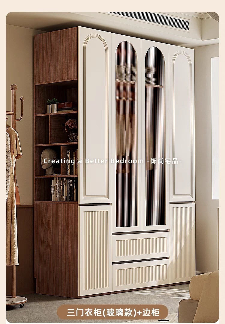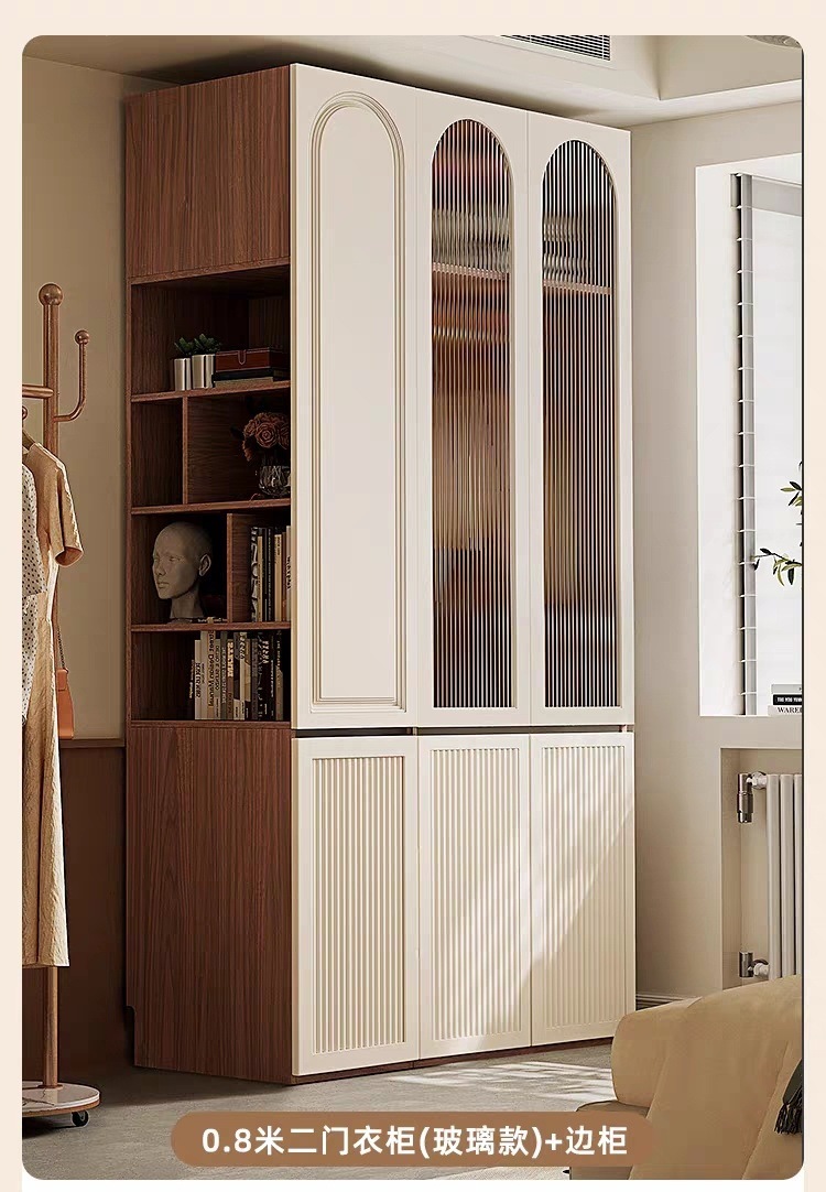 옷장 프렌치 크림 원도어 소형 슬라이딩 도어 침실 수납 캐비닛 홈 수납 완제품 심플 옷장 대형
