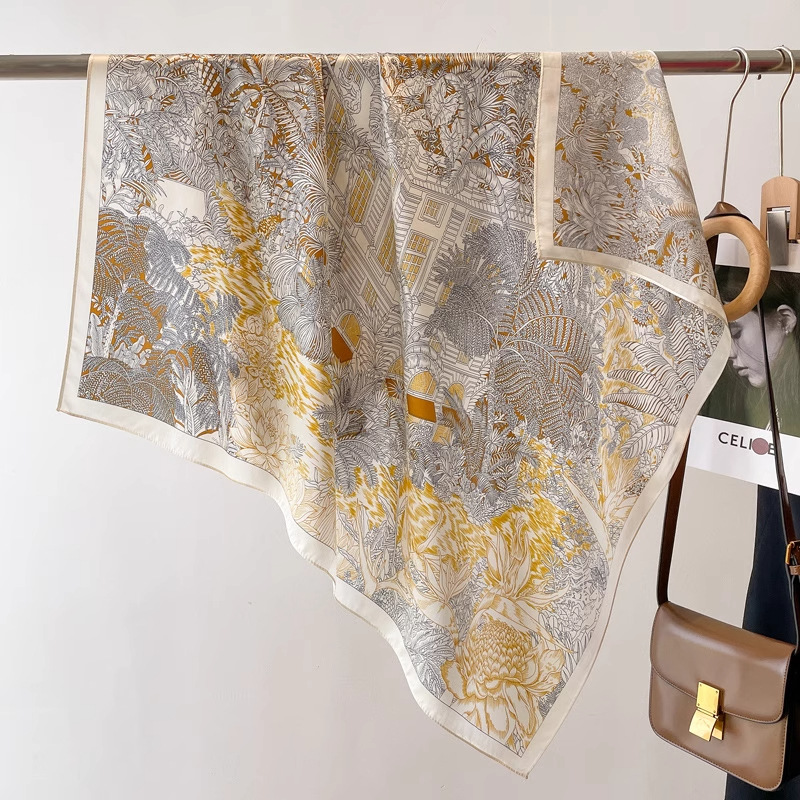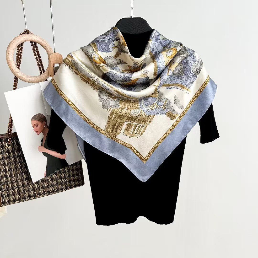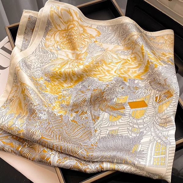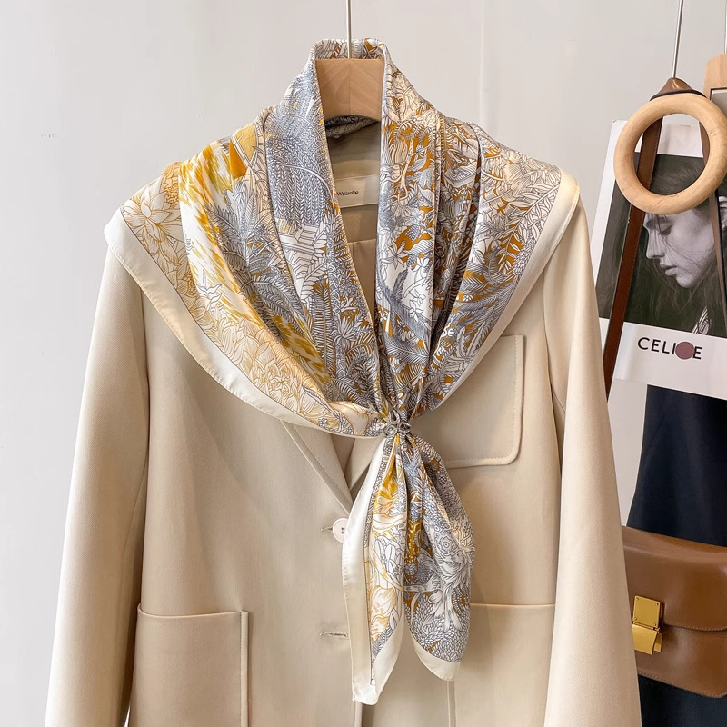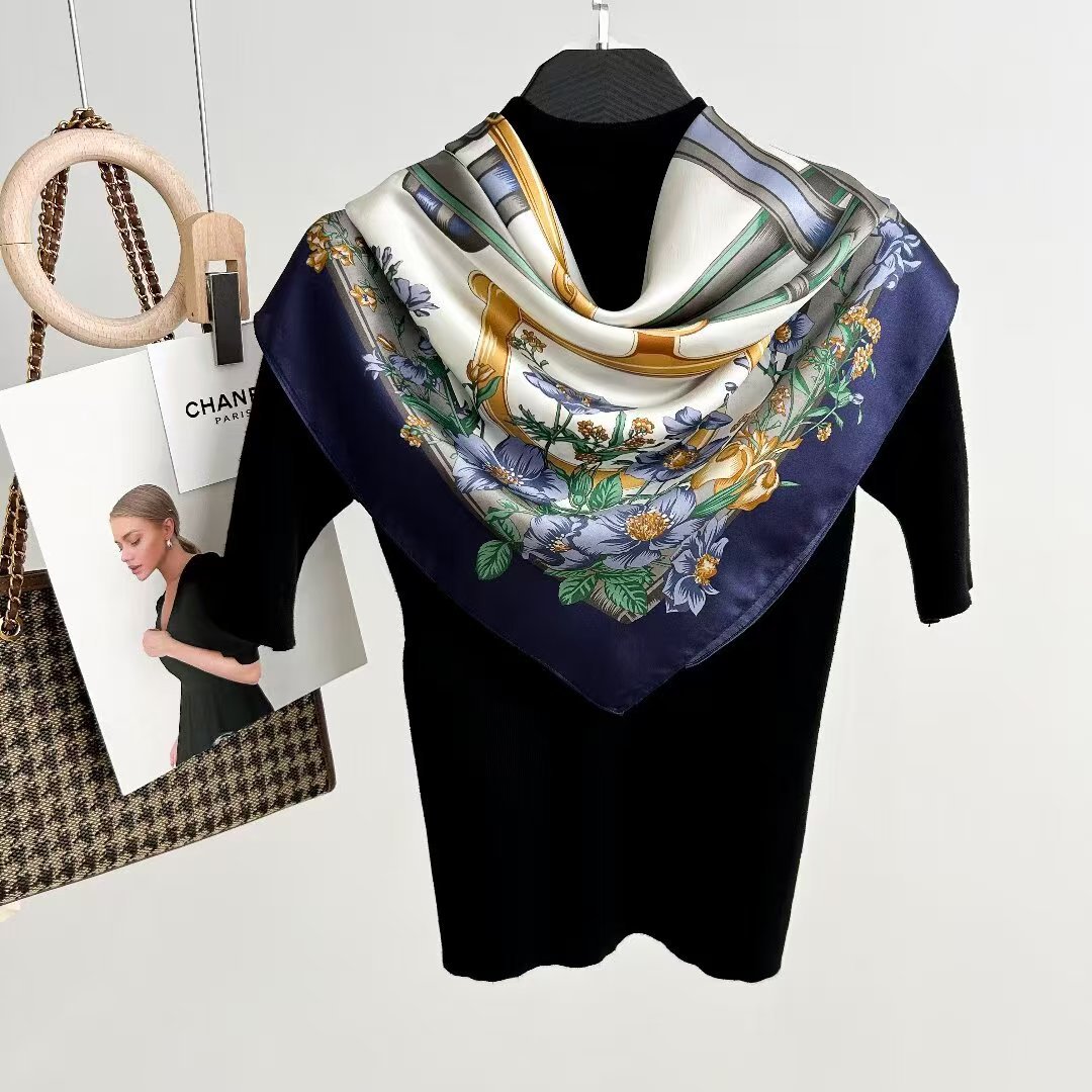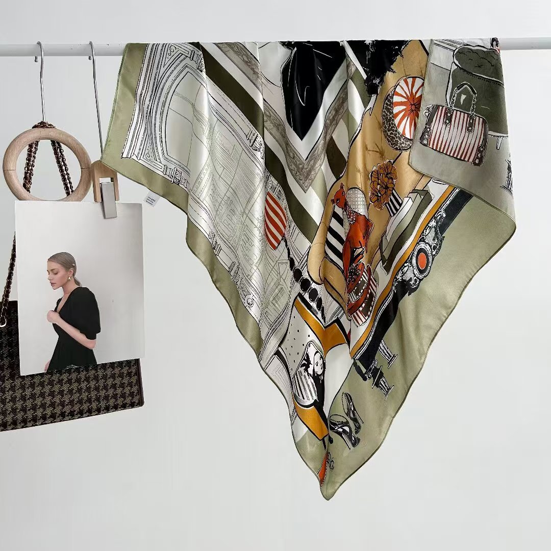 100% 멀버리 실크 크레이프 새틴 90 대형 사각형 스카프 새틴 12 Mumi 여성 봄, 여름, 가을 실크 스카프 스카프 목도리