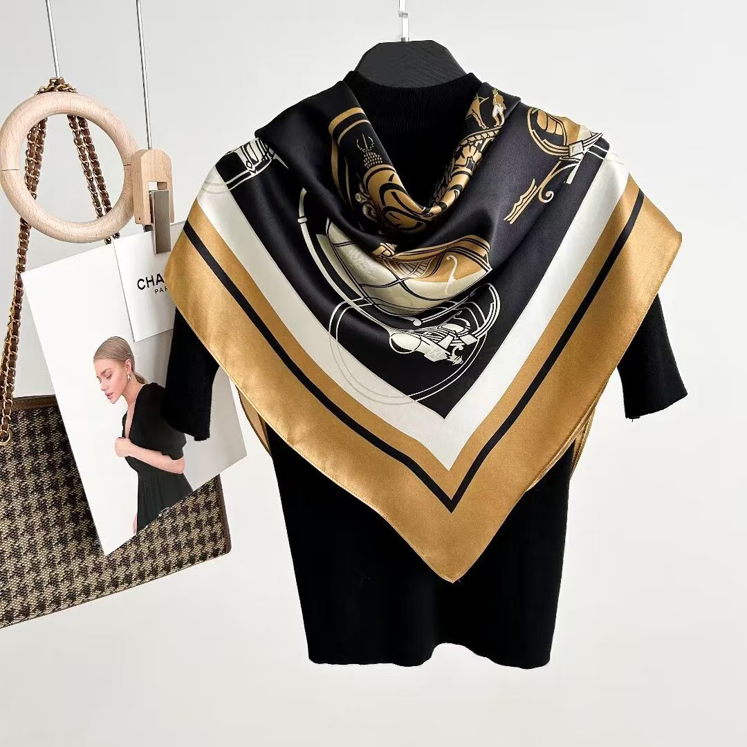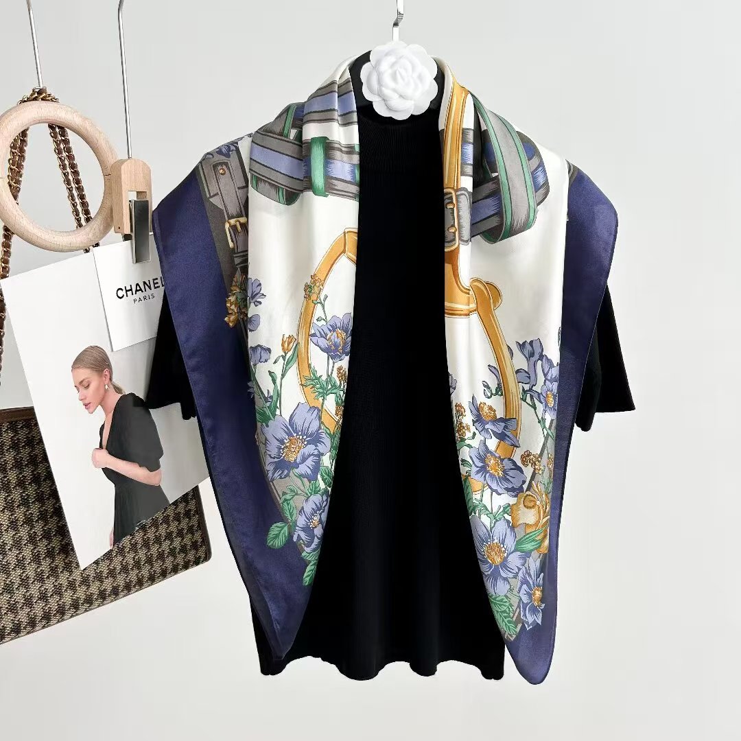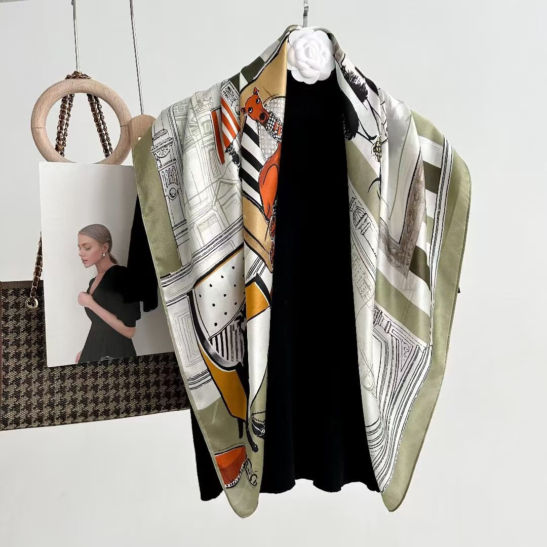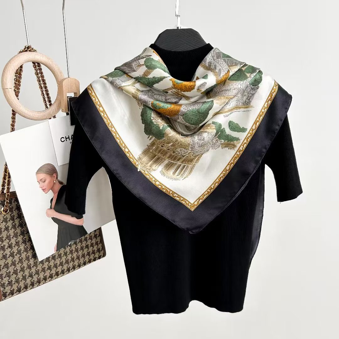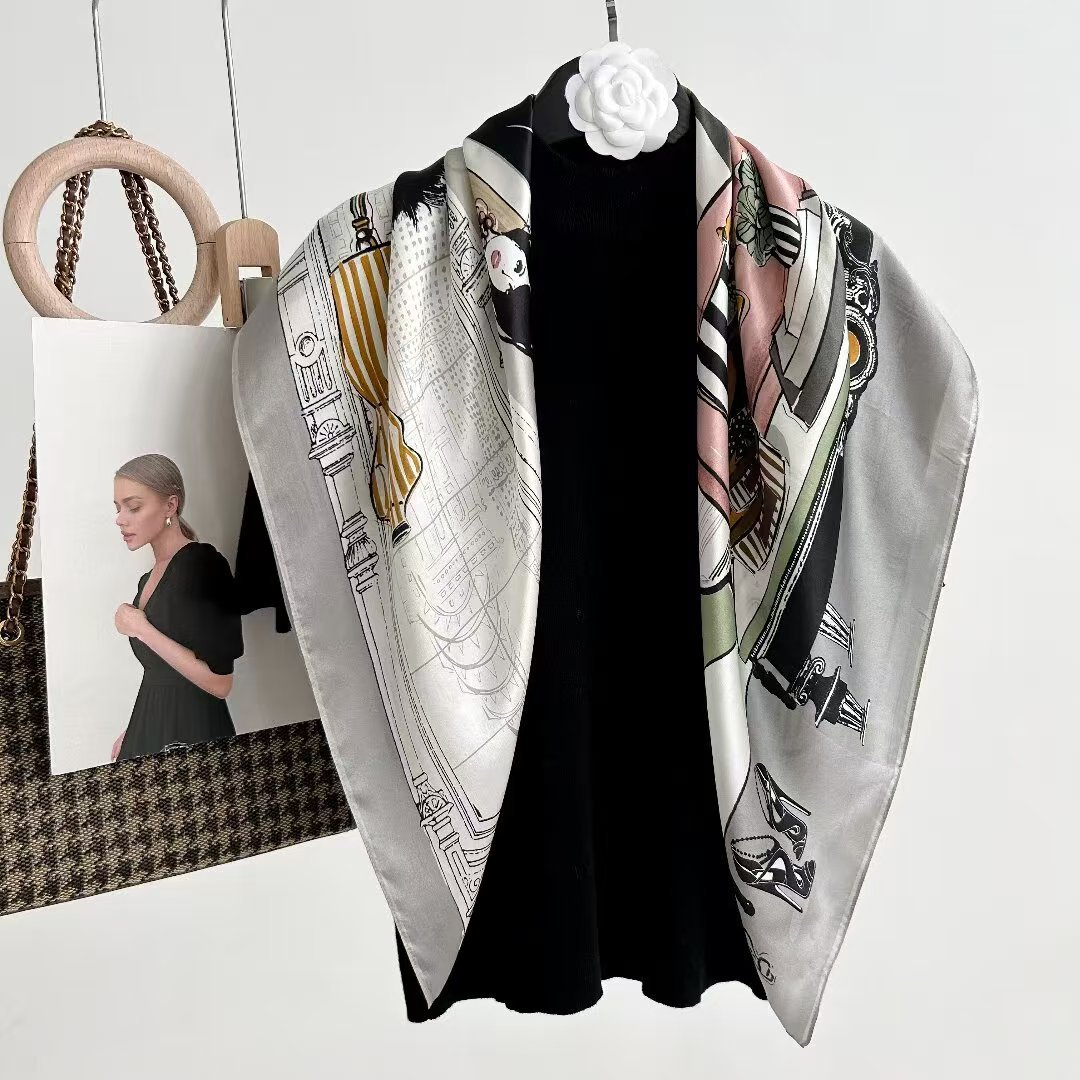 100% 멀버리 실크 크레이프 새틴 90 대형 사각형 스카프 새틴 12 Mumi 여성 봄, 여름, 가을 실크 스카프 스카프 목도리