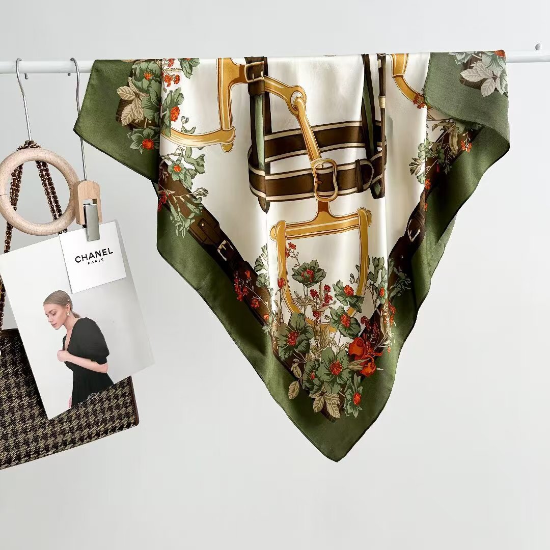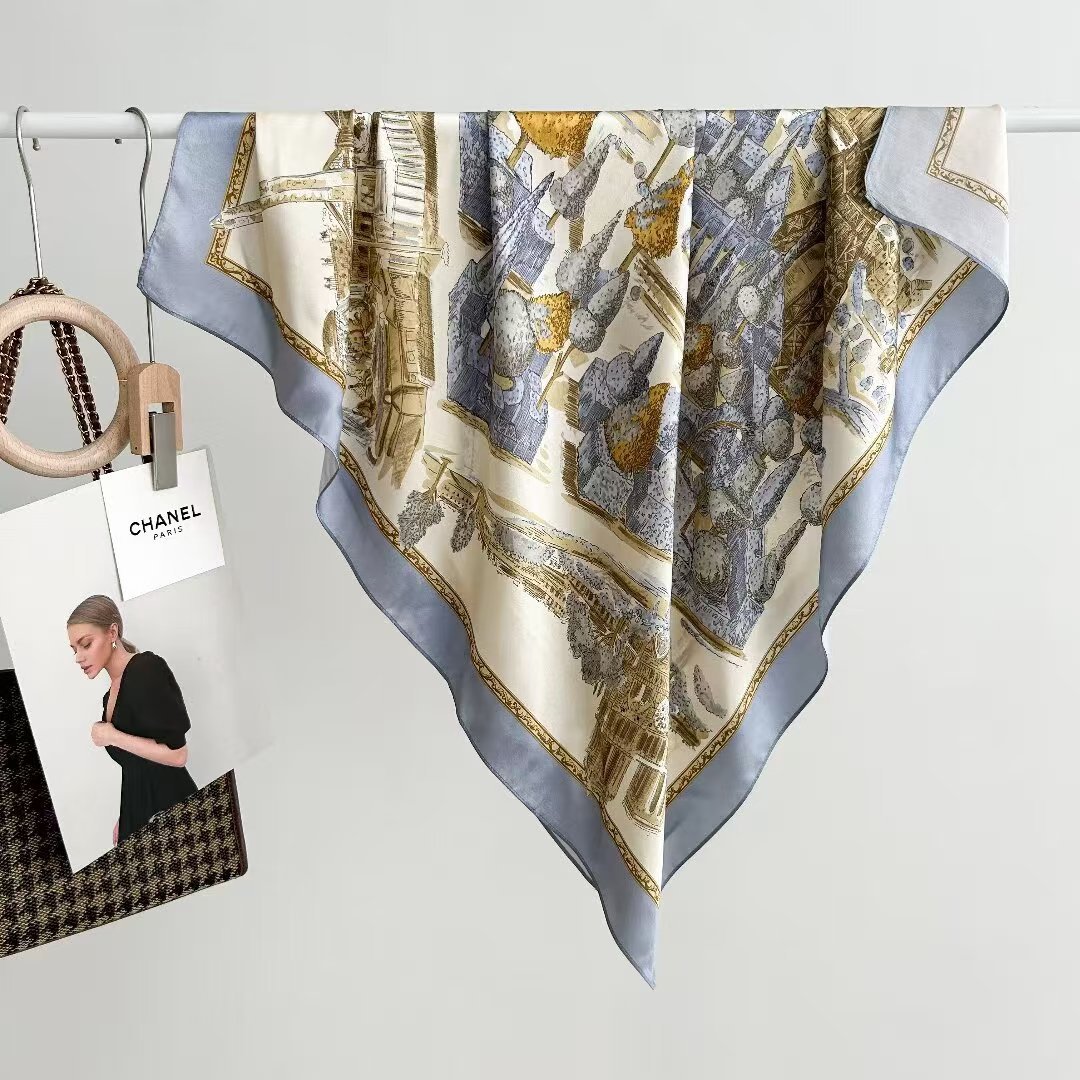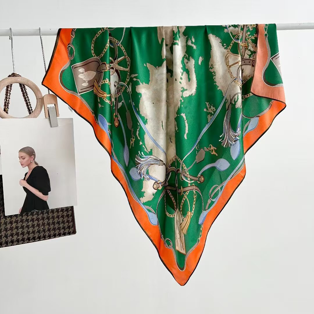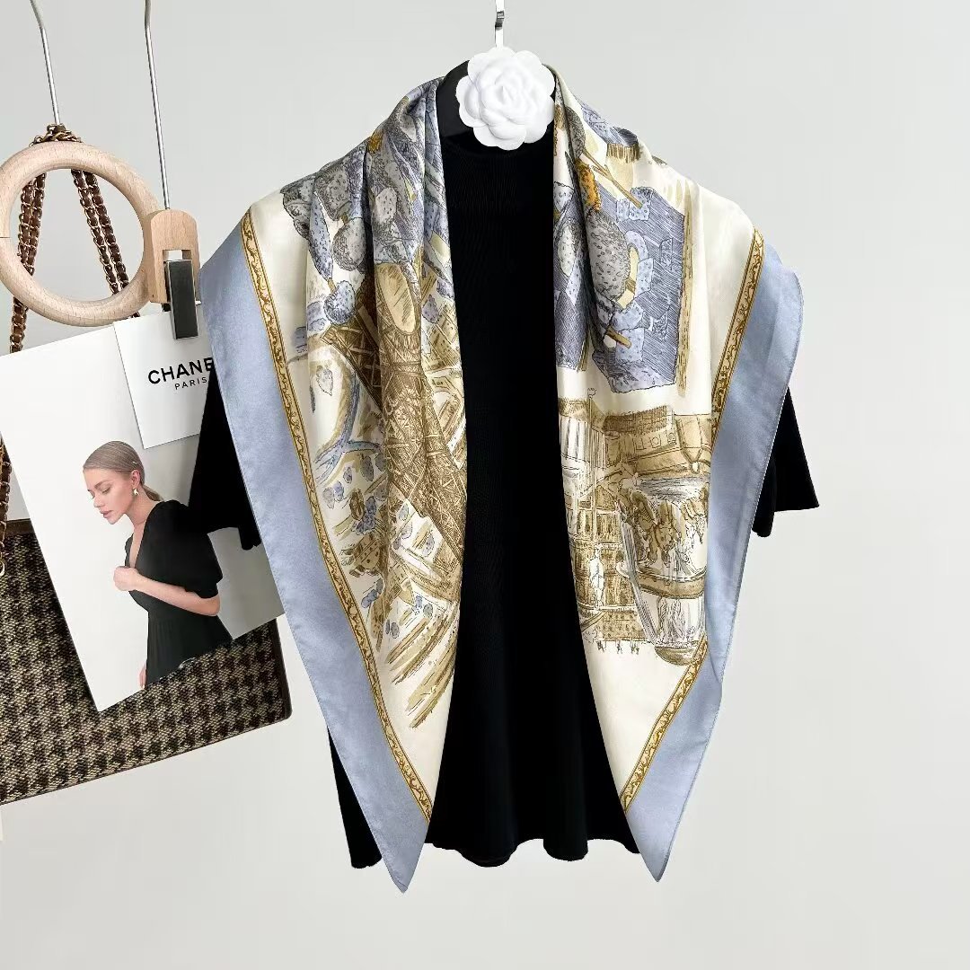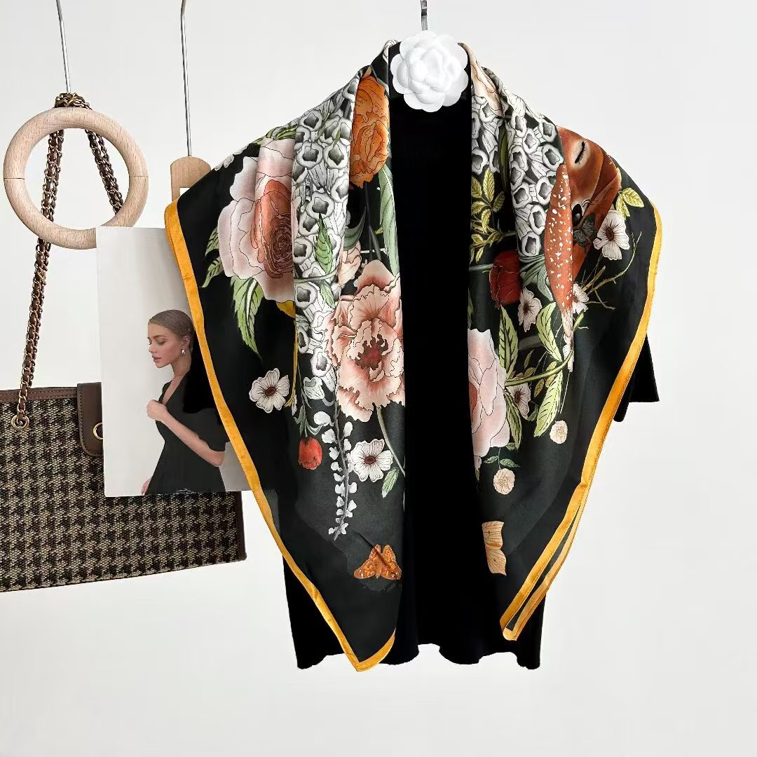 100% 멀버리 실크 크레이프 새틴 90 대형 사각형 스카프 새틴 12 Mumi 여성 봄, 여름, 가을 실크 스카프 스카프 목도리