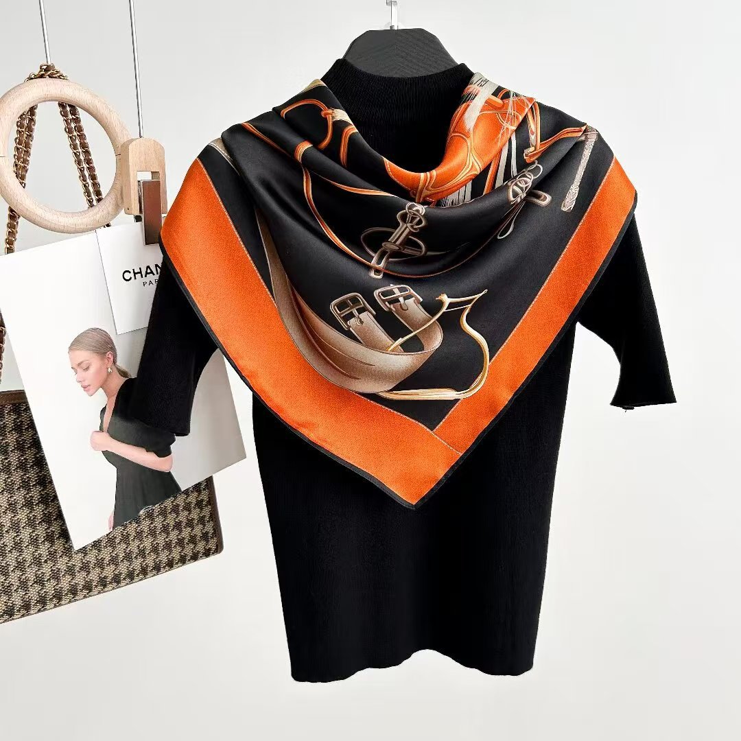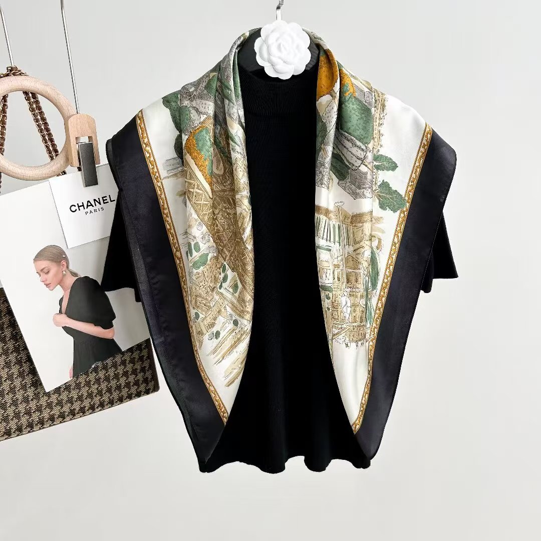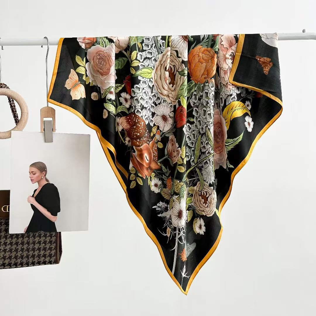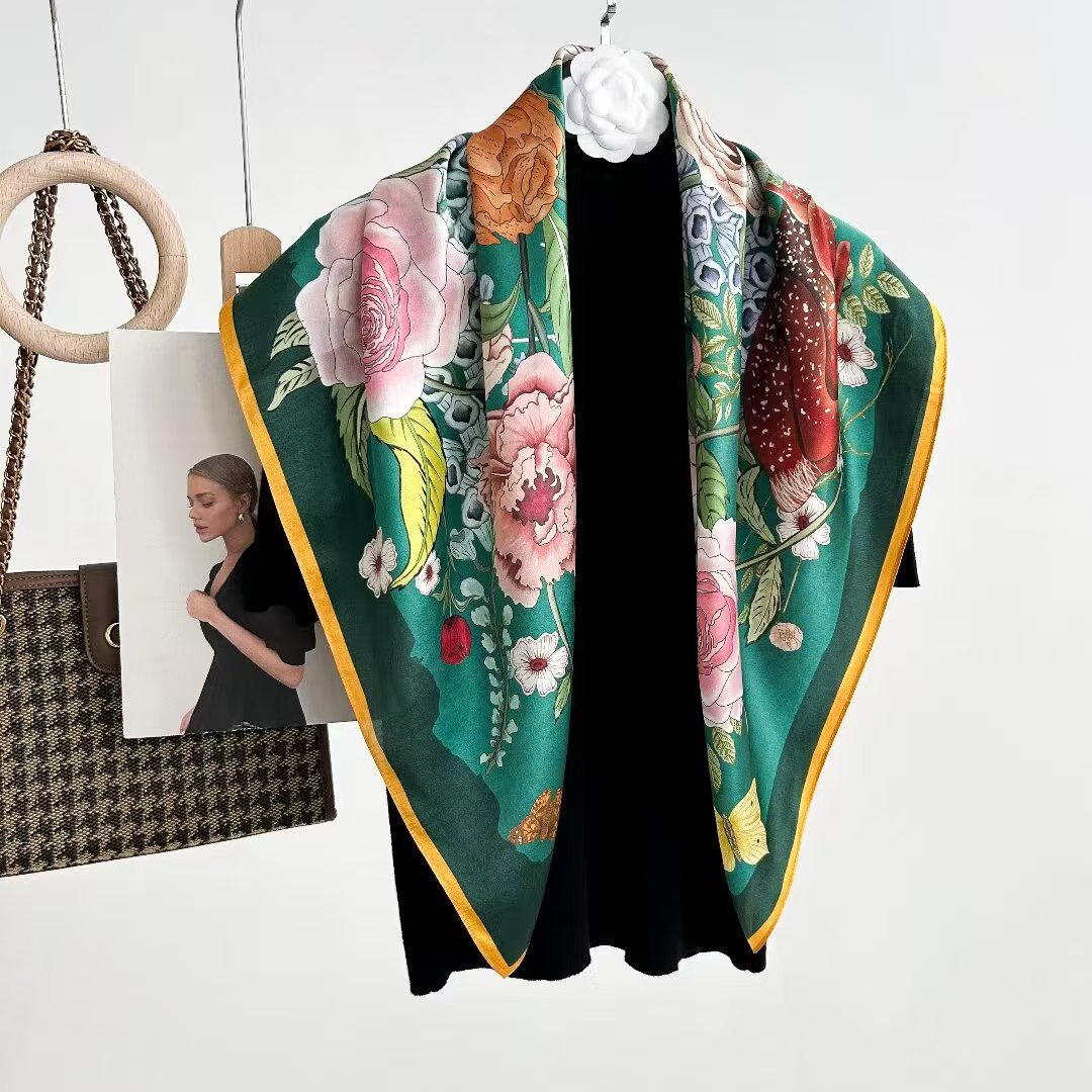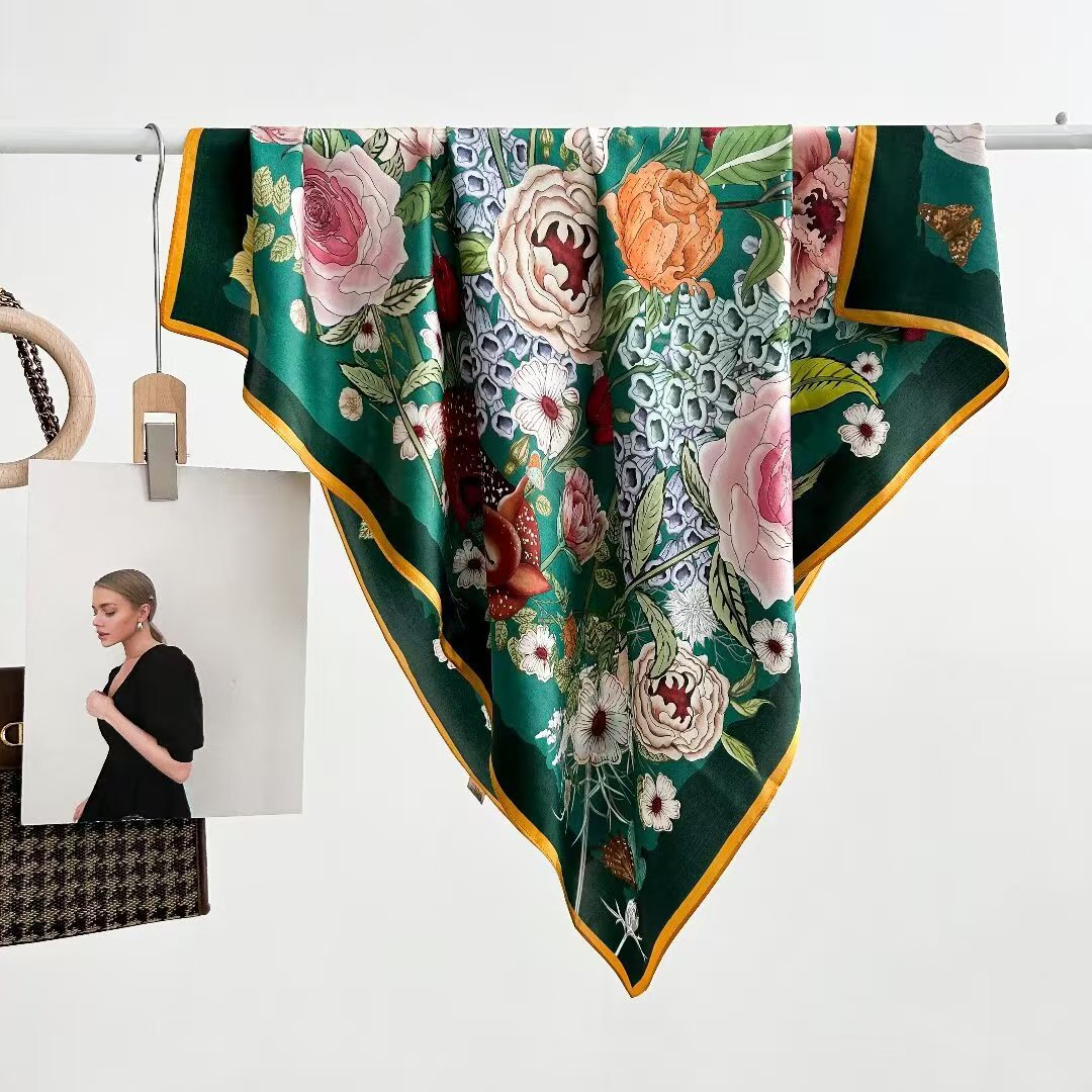 100% 멀버리 실크 크레이프 새틴 90 대형 사각형 스카프 새틴 12 Mumi 여성 봄, 여름, 가을 실크 스카프 스카프 목도리