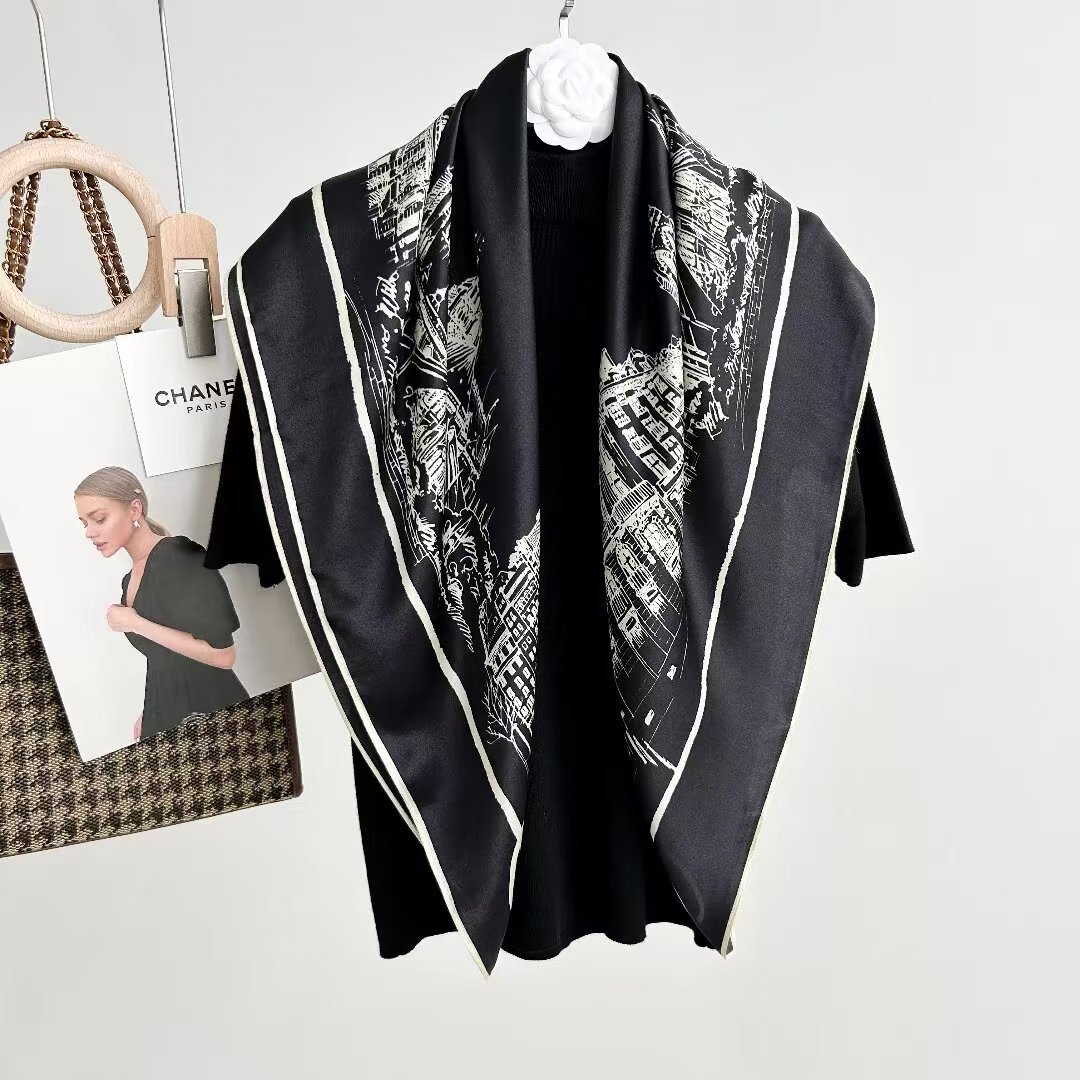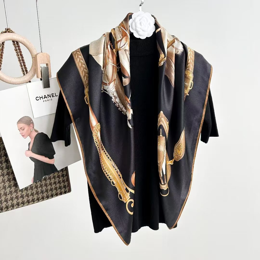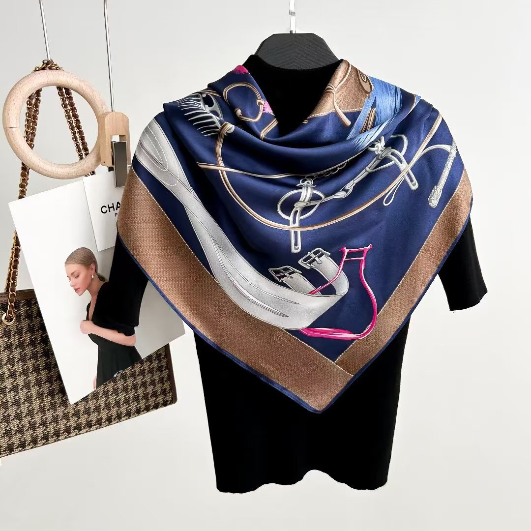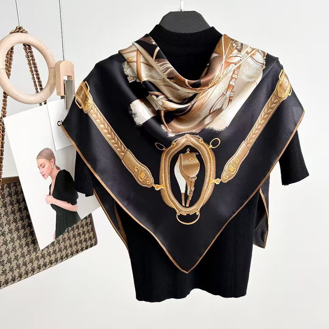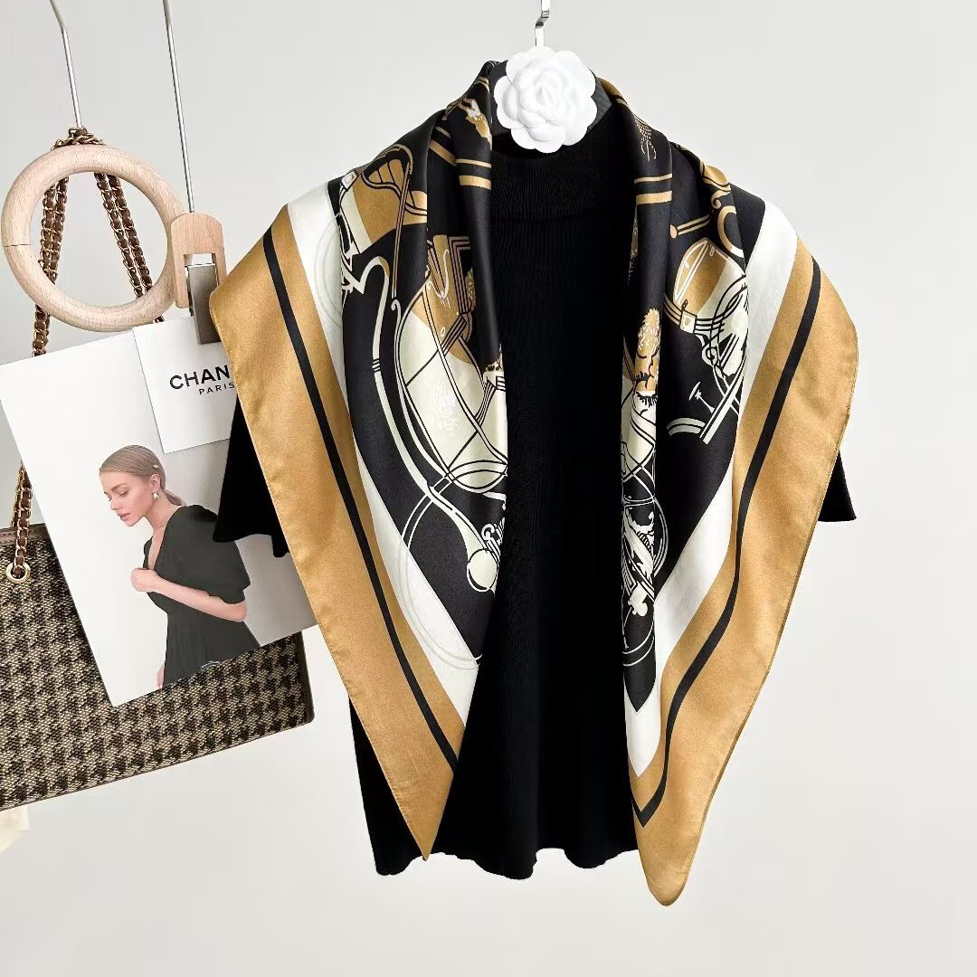 100% 멀버리 실크 크레이프 새틴 90 대형 사각형 스카프 새틴 12 Mumi 여성 봄, 여름, 가을 실크 스카프 스카프 목도리