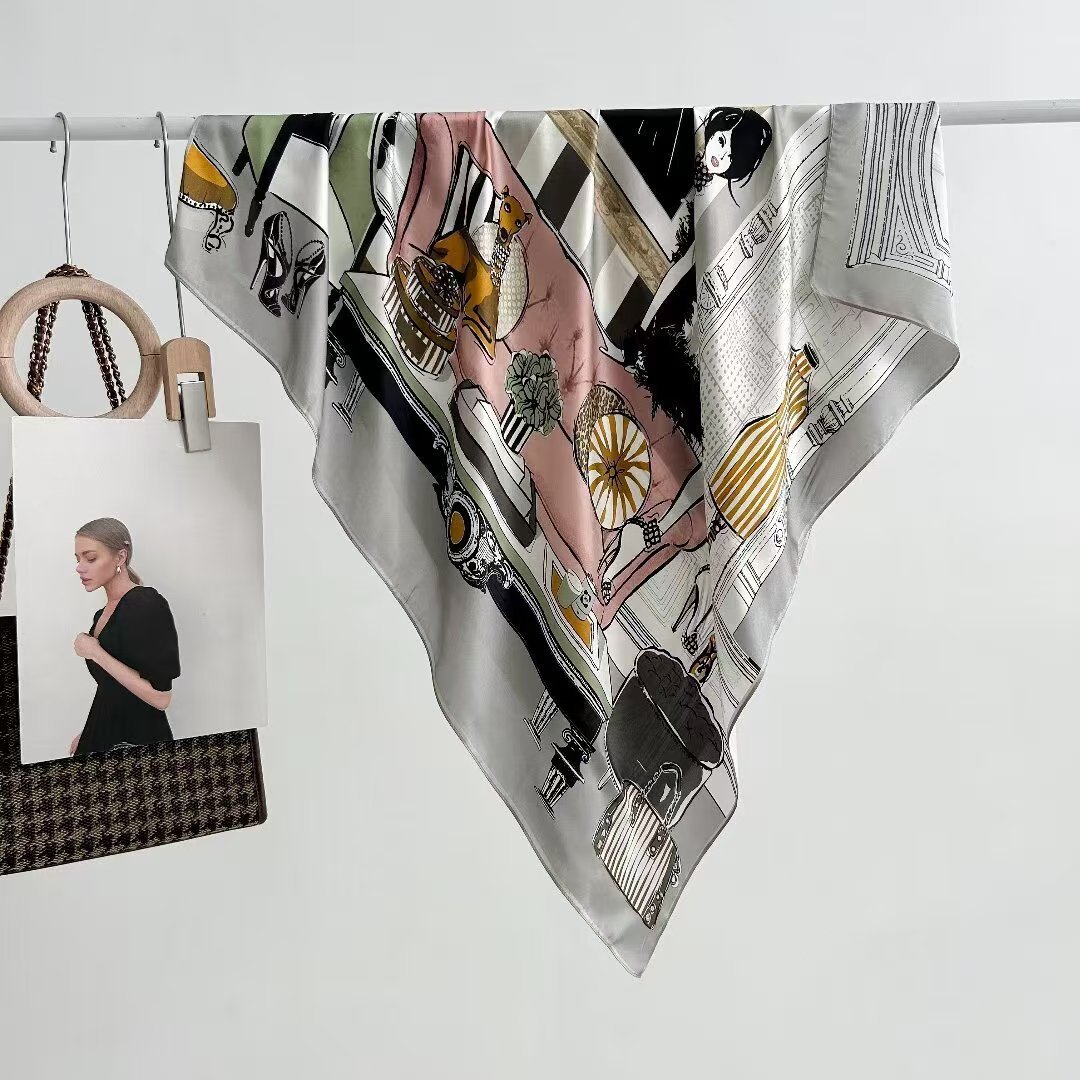 100% 멀버리 실크 크레이프 새틴 90 대형 사각형 스카프 새틴 12 Mumi 여성 봄, 여름, 가을 실크 스카프 스카프 목도리스토어 가기