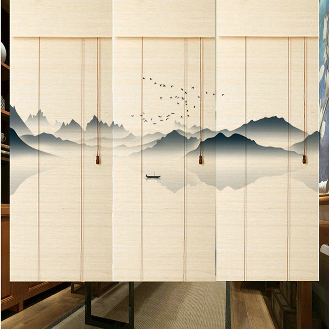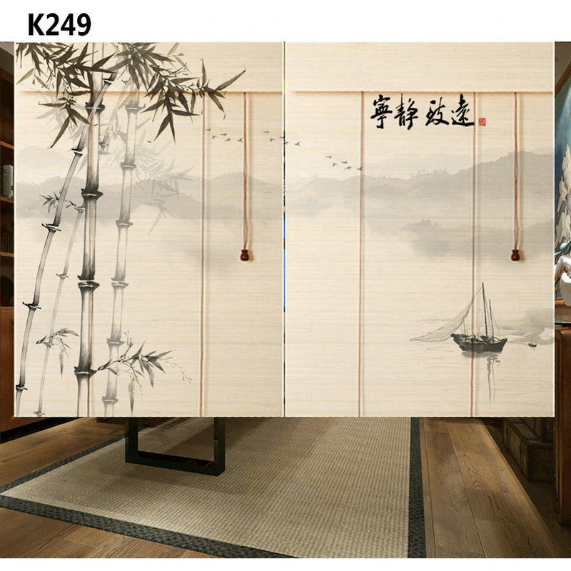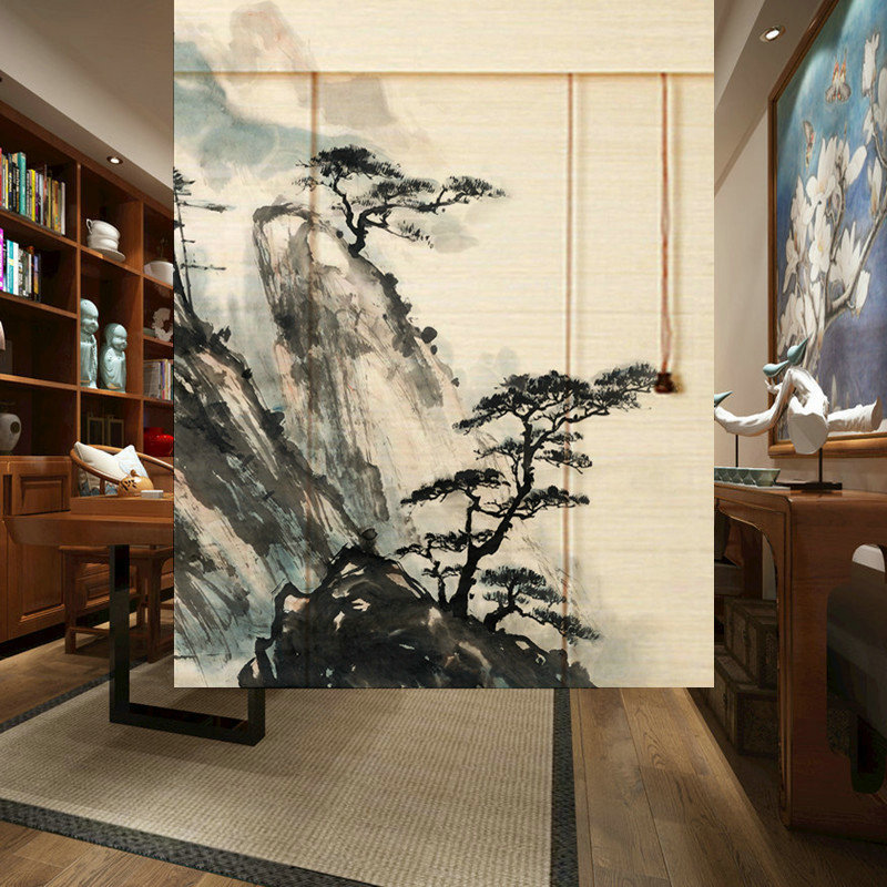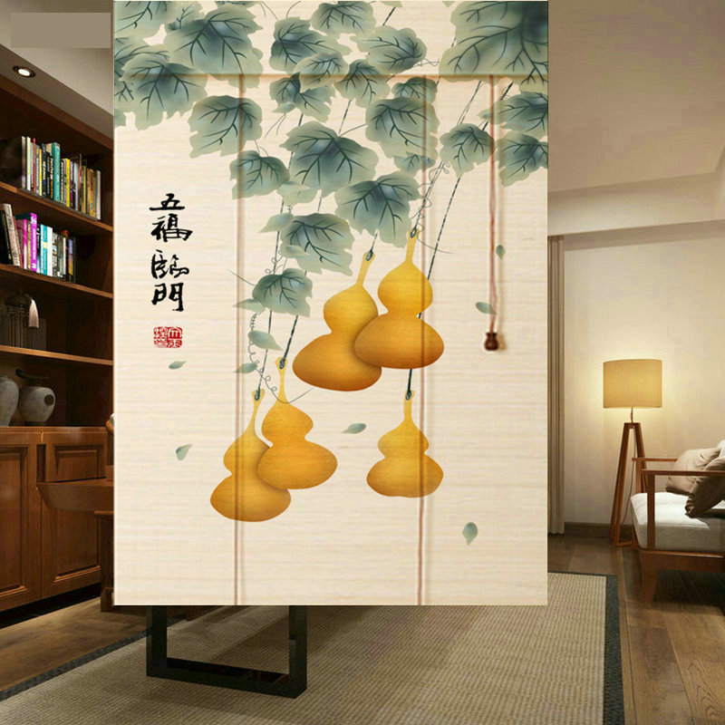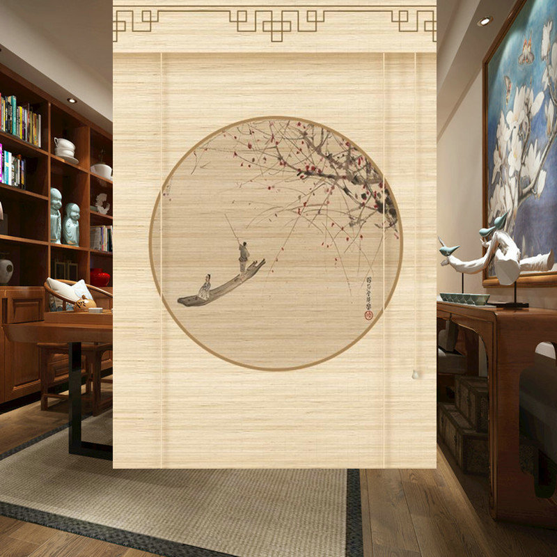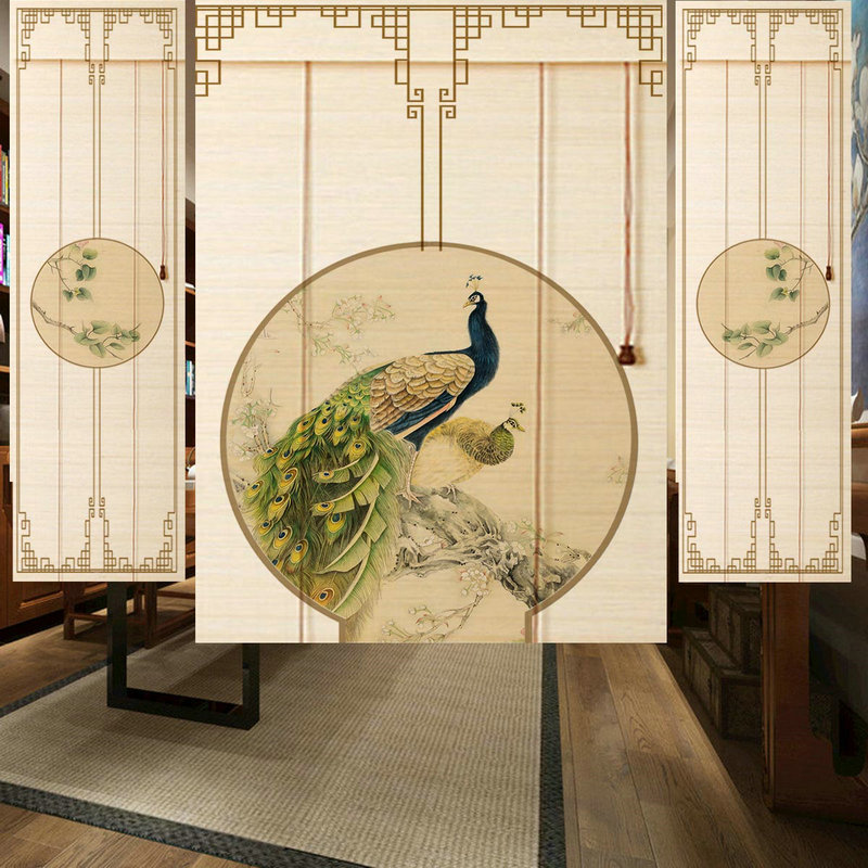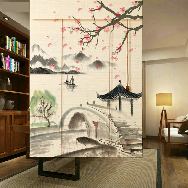 [신규] 복고풍 인쇄 대나무 커튼 롤러 블라인드 리프팅 커튼 교수형 그림 찻집 장식 빛 차단 파티션 롤링 도어 커튼