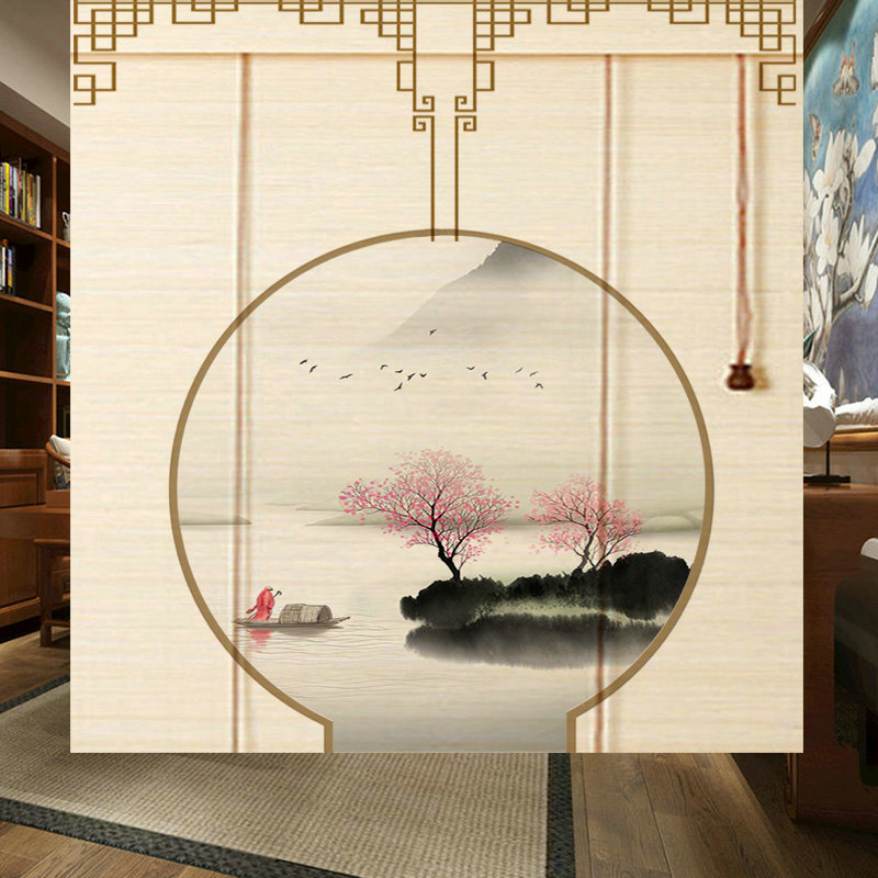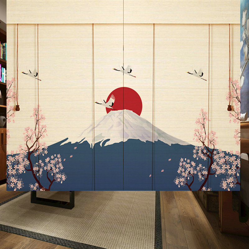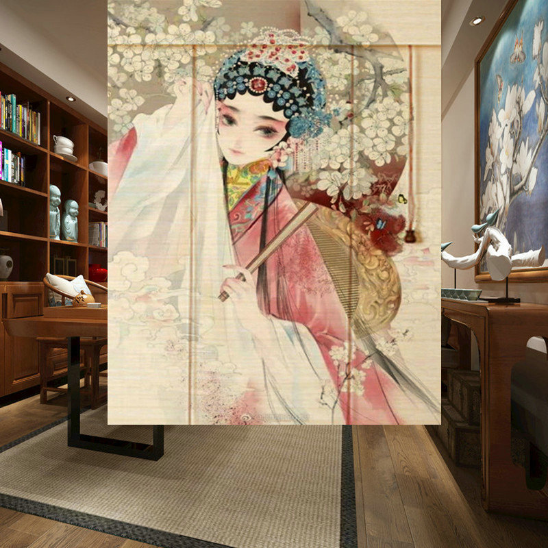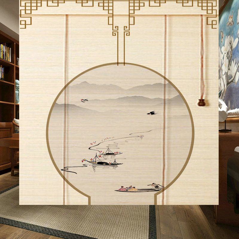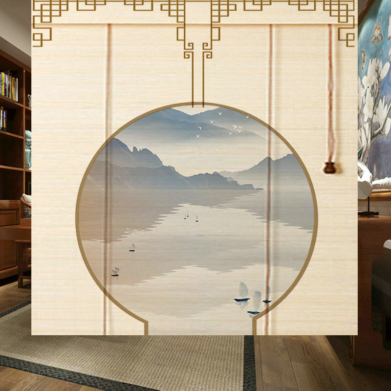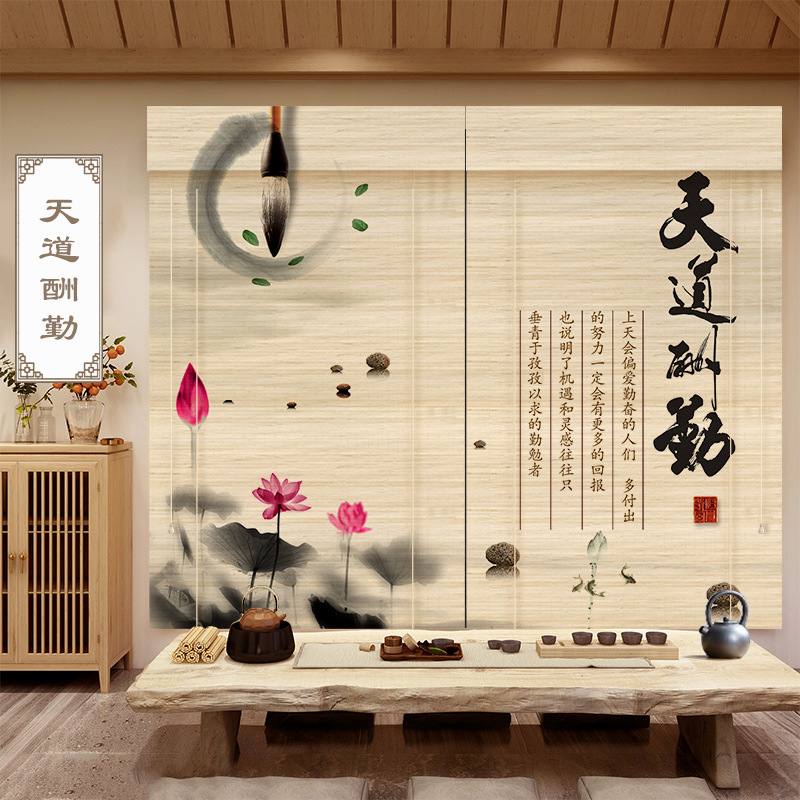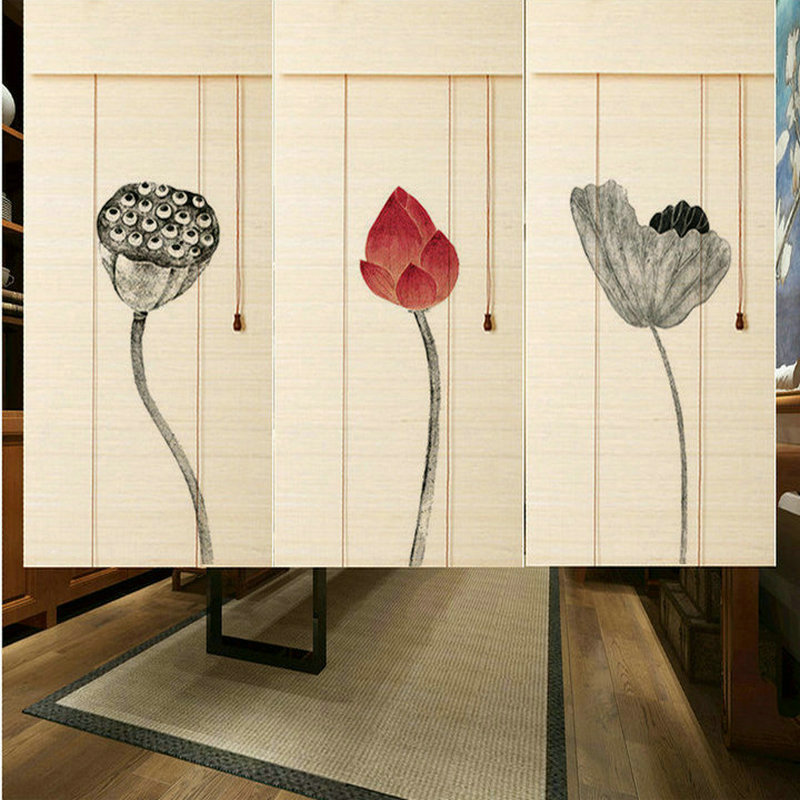 [신규] 복고풍 인쇄 대나무 커튼 롤러 블라인드 리프팅 커튼 교수형 그림 찻집 장식 빛 차단 파티션 롤링 도어 커튼