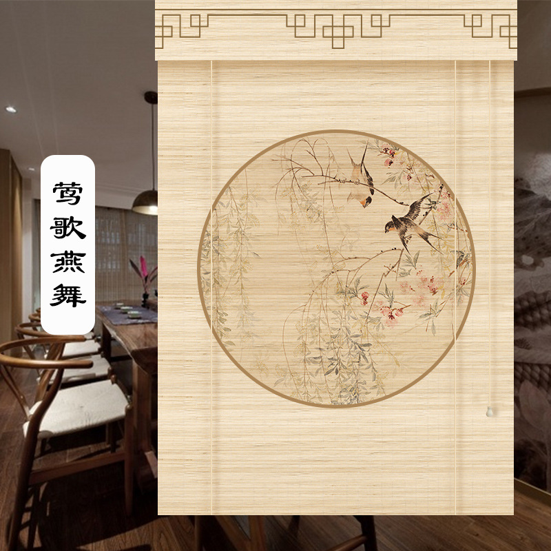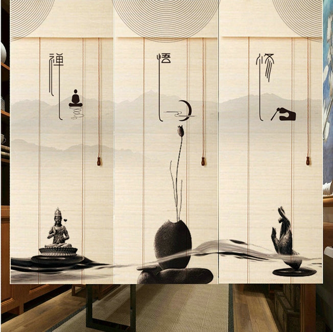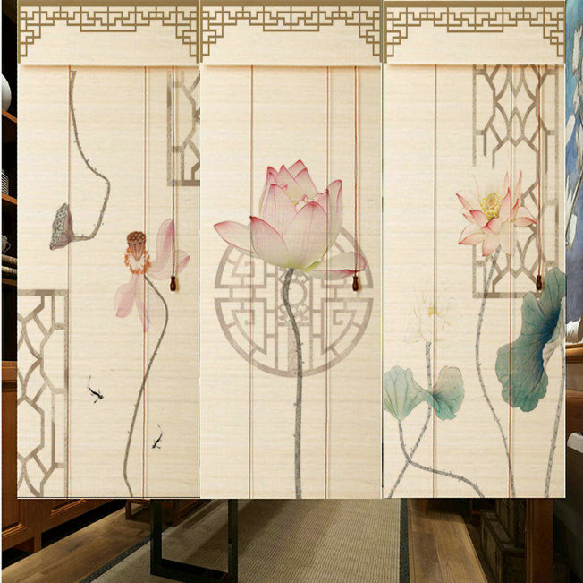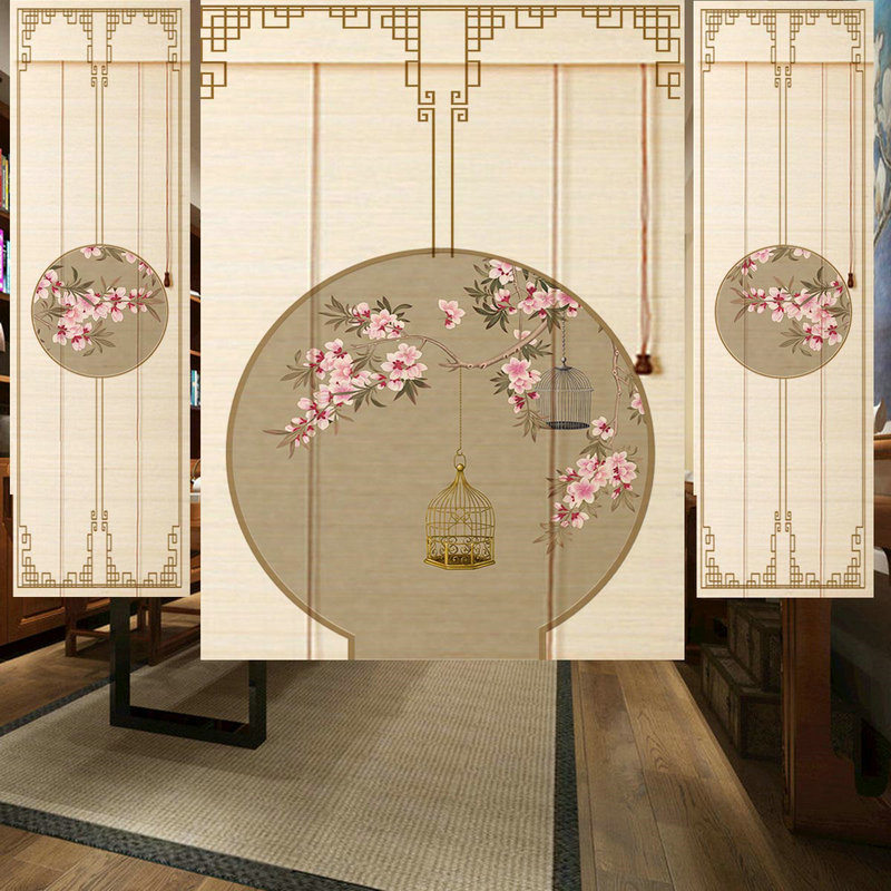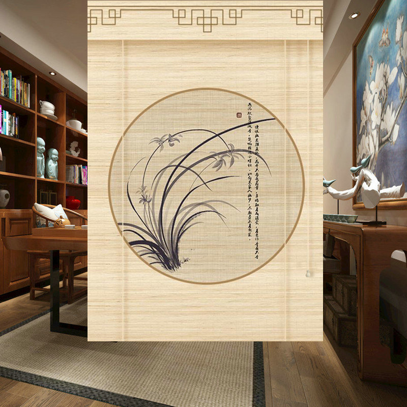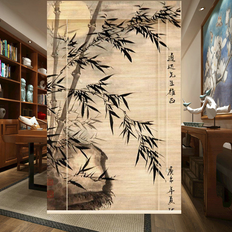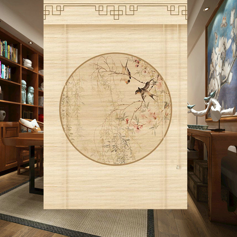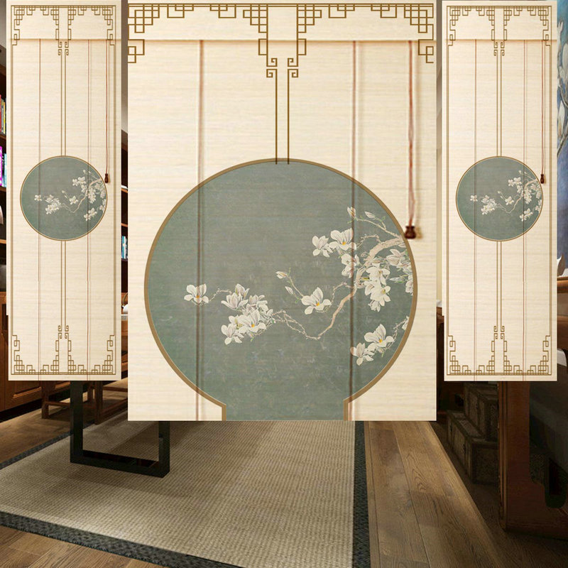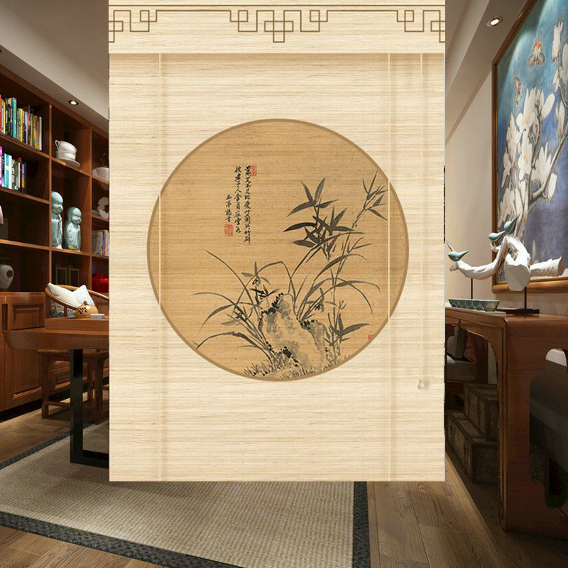 [신규] 복고풍 인쇄 대나무 커튼 롤러 블라인드 리프팅 커튼 교수형 그림 찻집 장식 빛 차단 파티션 롤링 도어 커튼스토어 가기