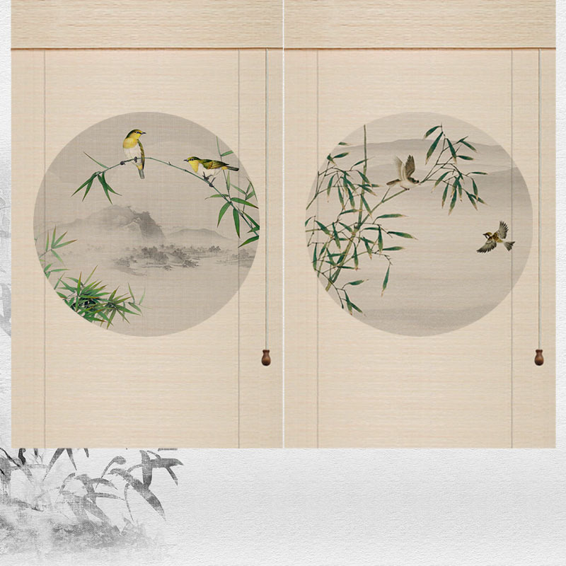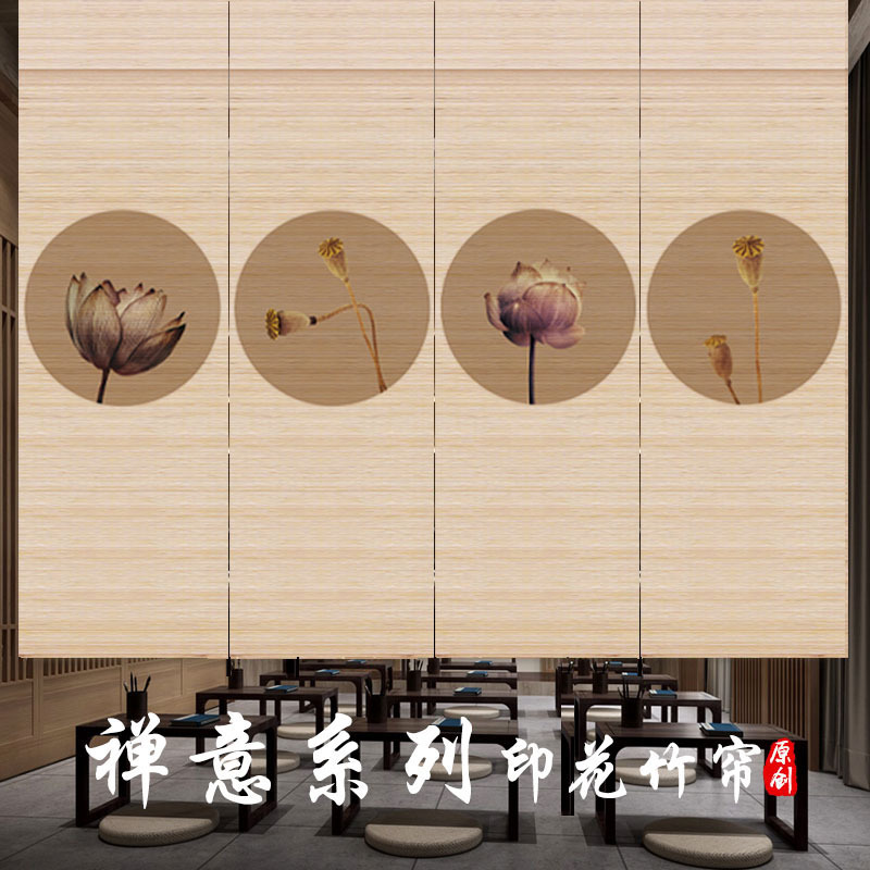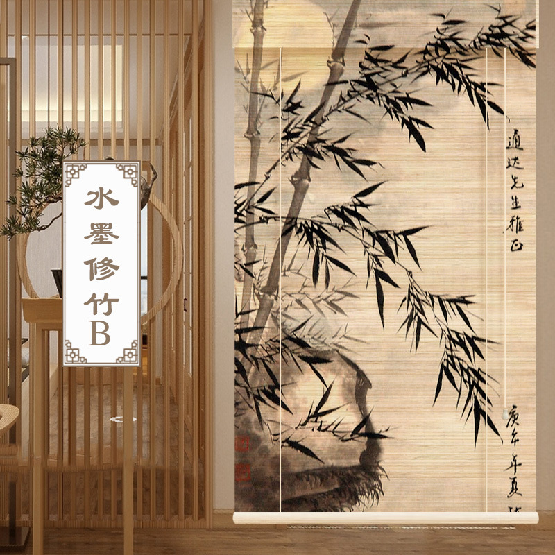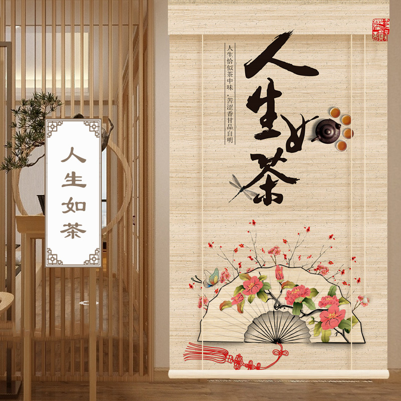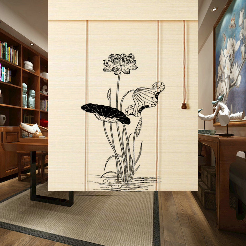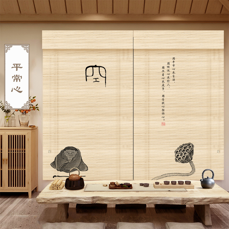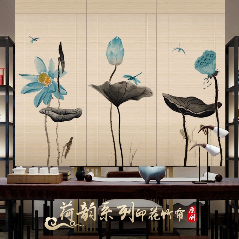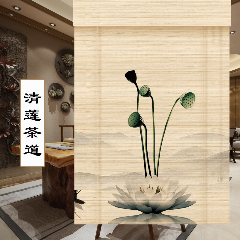 [신규] 복고풍 인쇄 대나무 커튼 롤러 블라인드 리프팅 커튼 교수형 그림 찻집 장식 빛 차단 파티션 롤링 도어 커튼스토어 가기