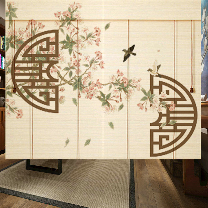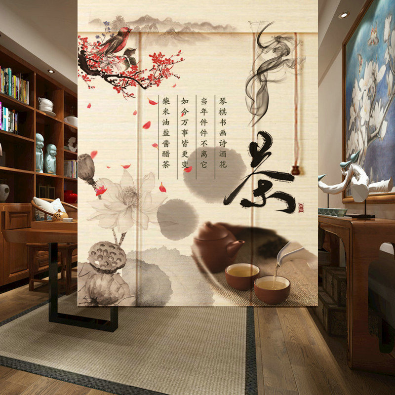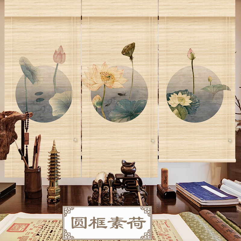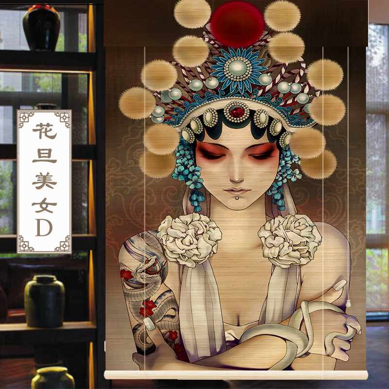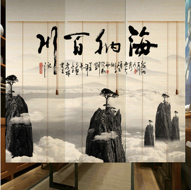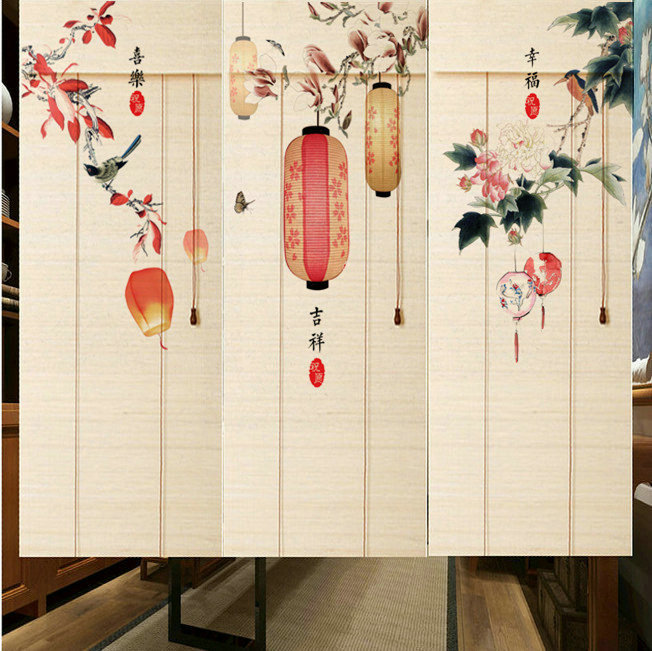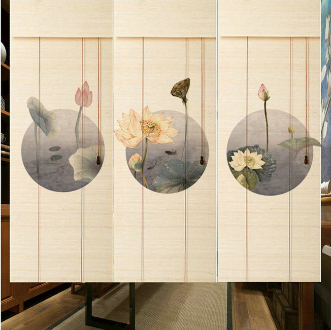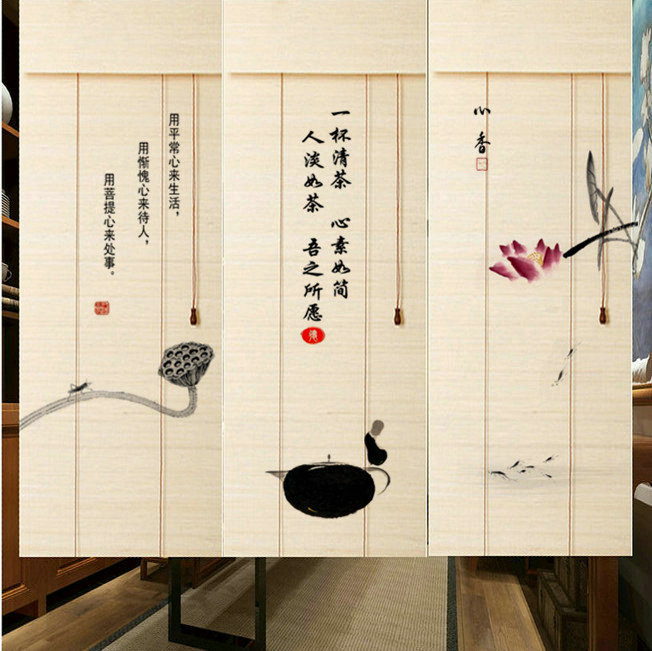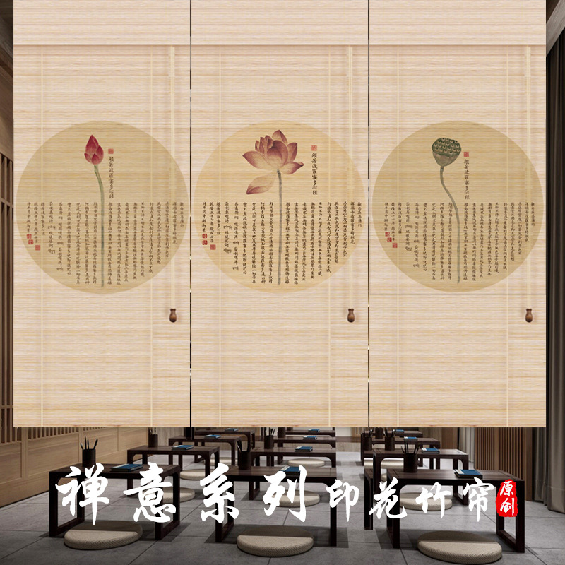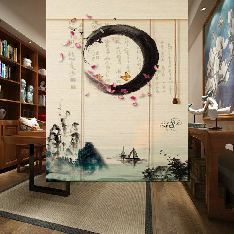 [신규] 복고풍 인쇄 대나무 커튼 롤러 블라인드 리프팅 커튼 교수형 그림 찻집 장식 빛 차단 파티션 롤링 도어 커튼스토어 가기