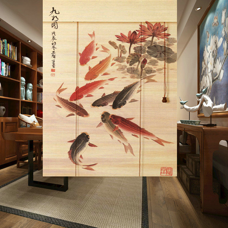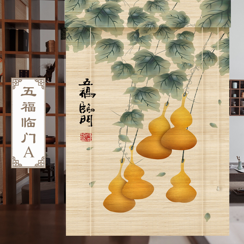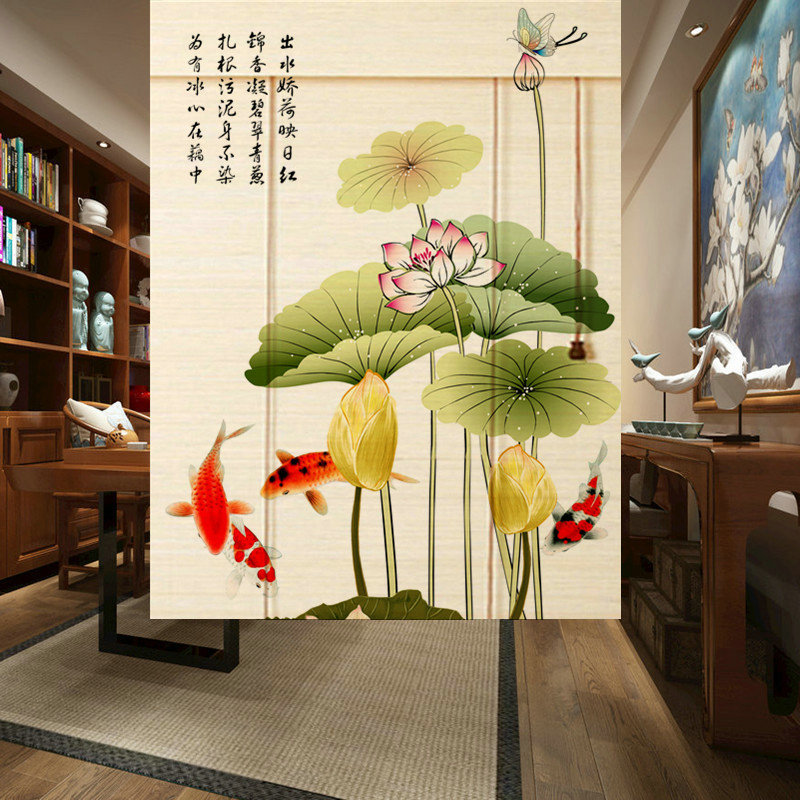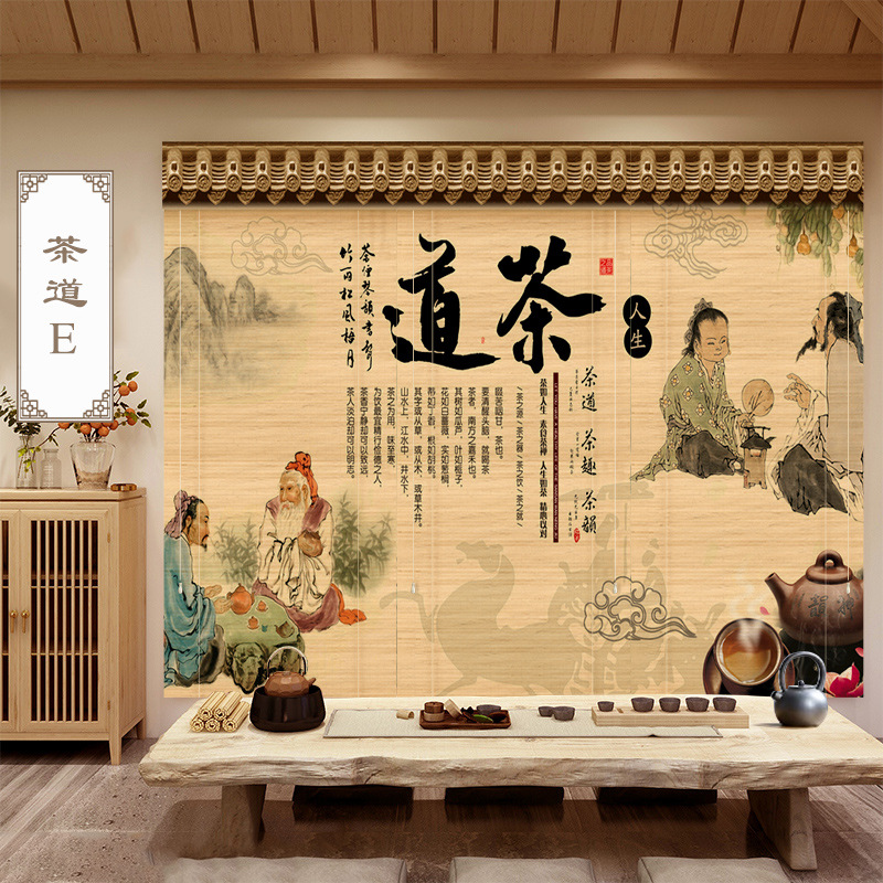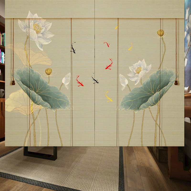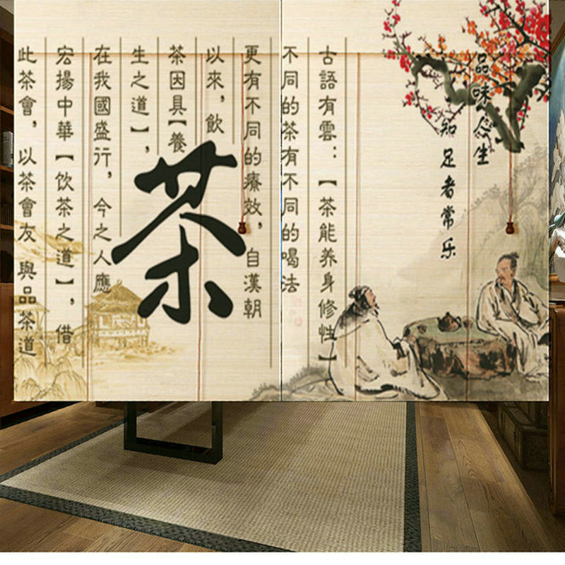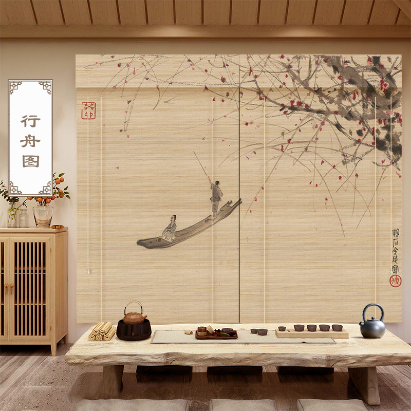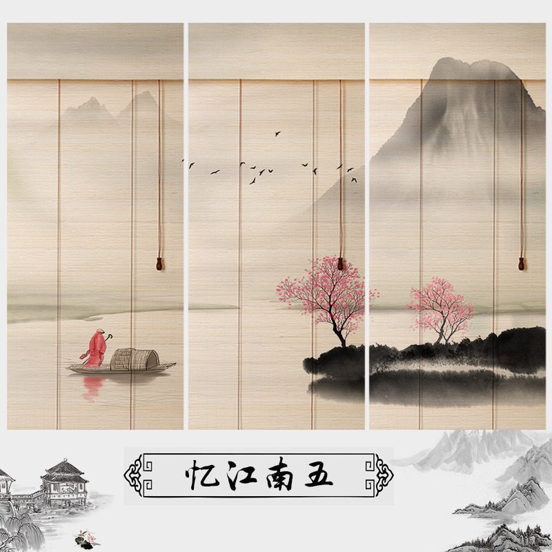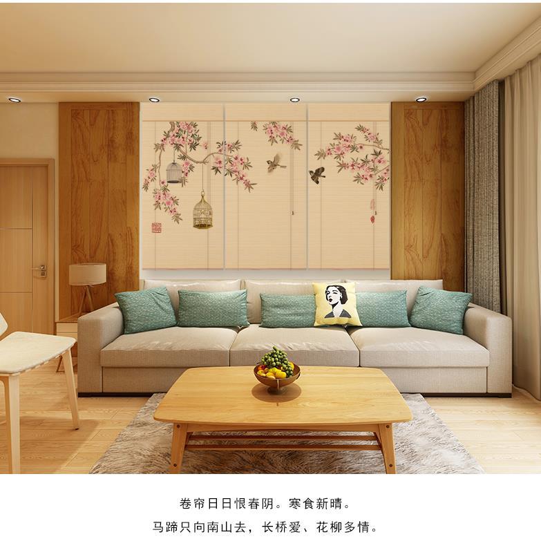 [신규] 복고풍 인쇄 대나무 커튼 롤러 블라인드 리프팅 커튼 교수형 그림 찻집 장식 빛 차단 파티션 롤링 도어 커튼스토어 가기