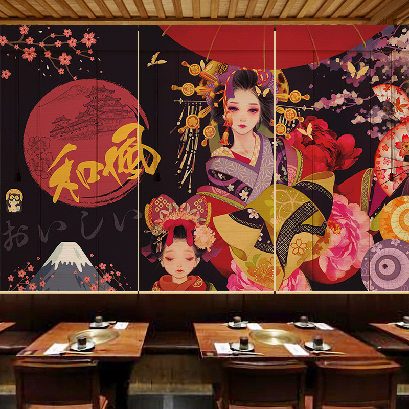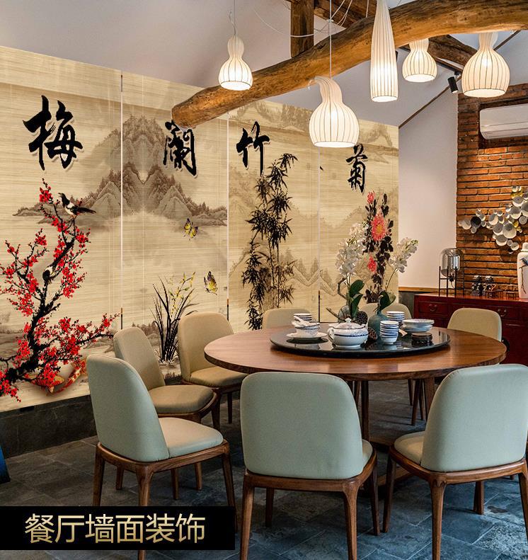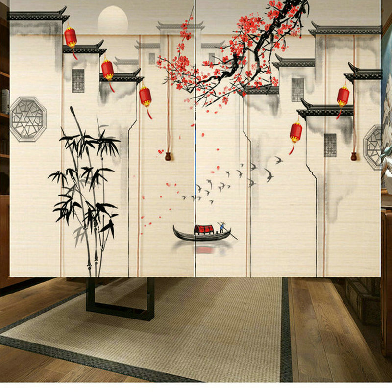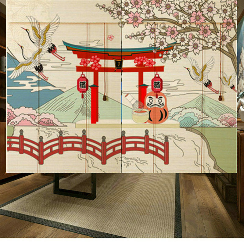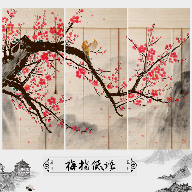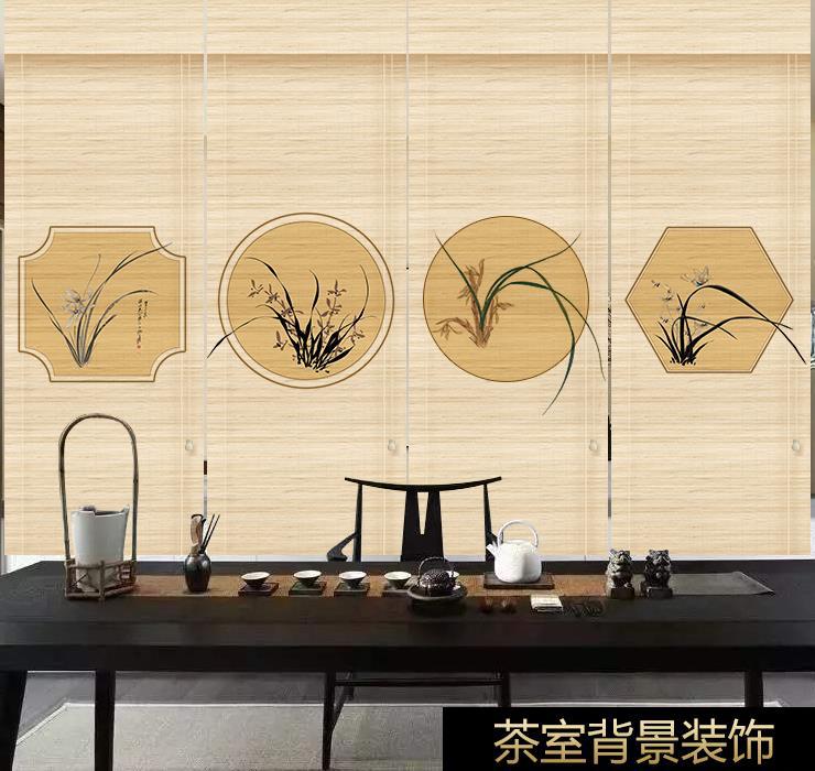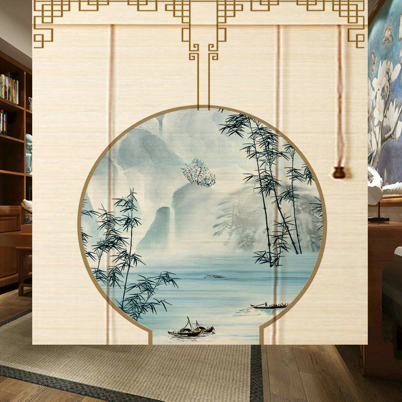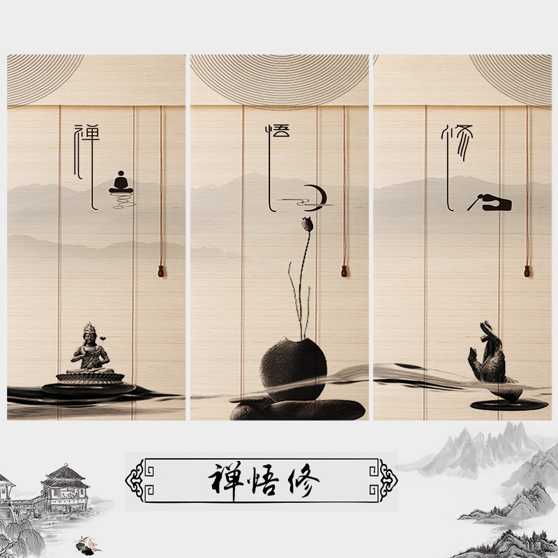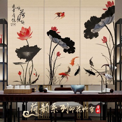 [신규] 복고풍 인쇄 대나무 커튼 롤러 블라인드 리프팅 커튼 교수형 그림 찻집 장식 빛 차단 파티션 롤링 도어 커튼스토어 가기