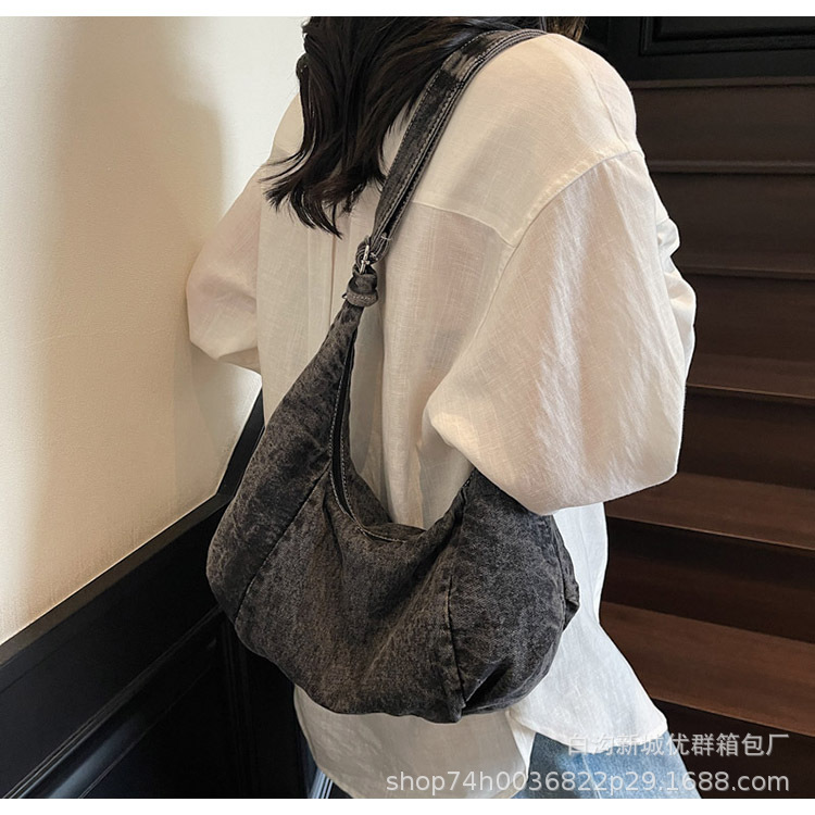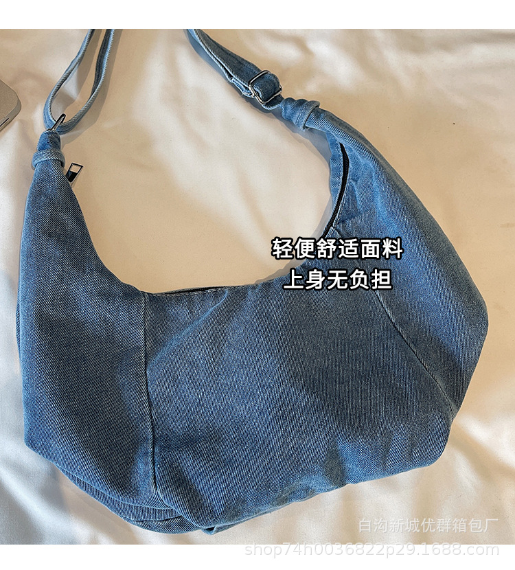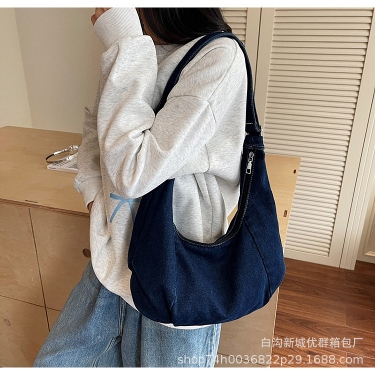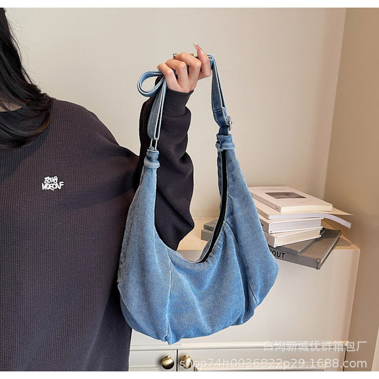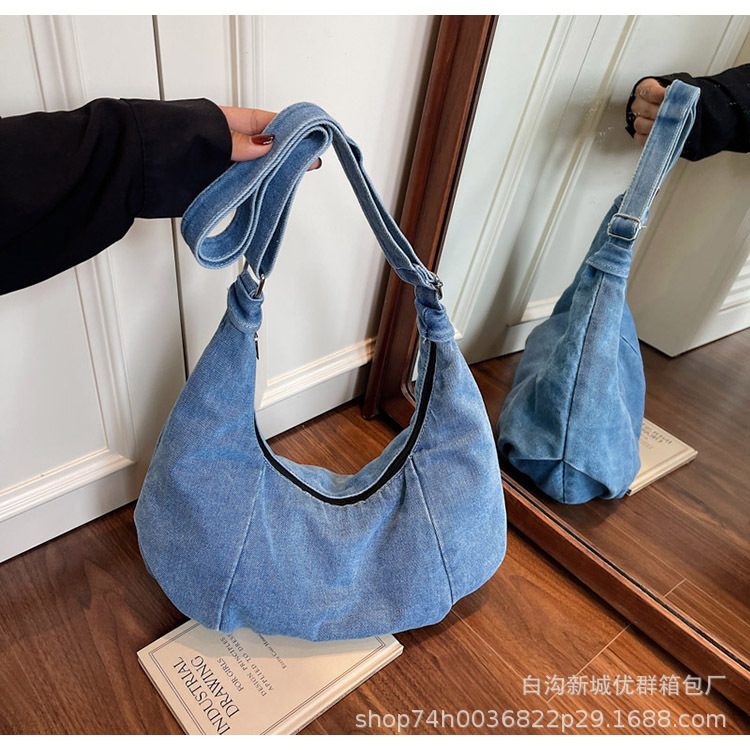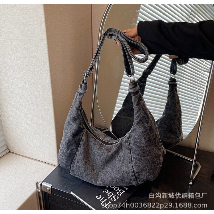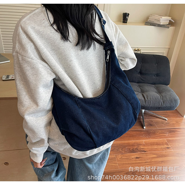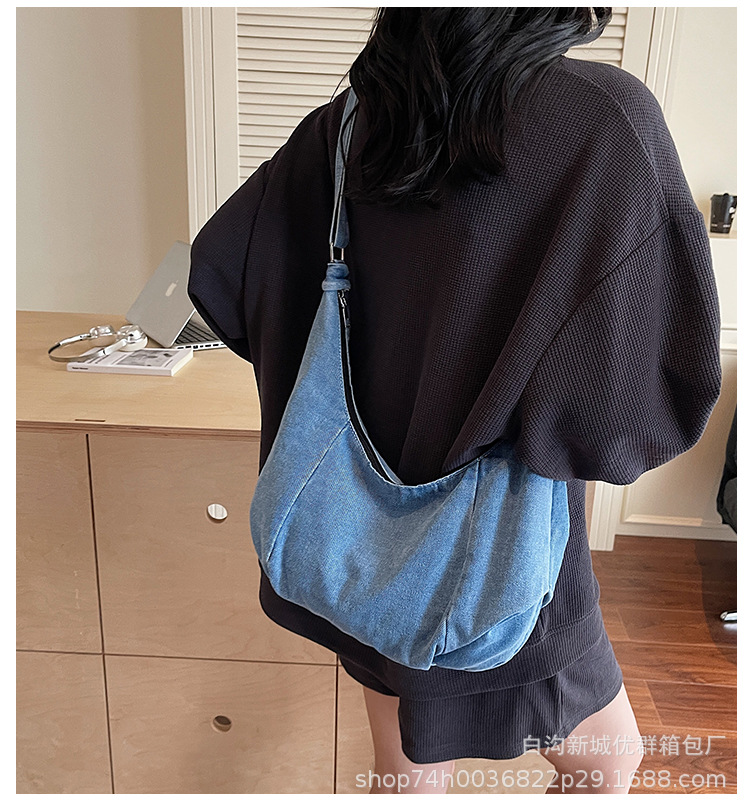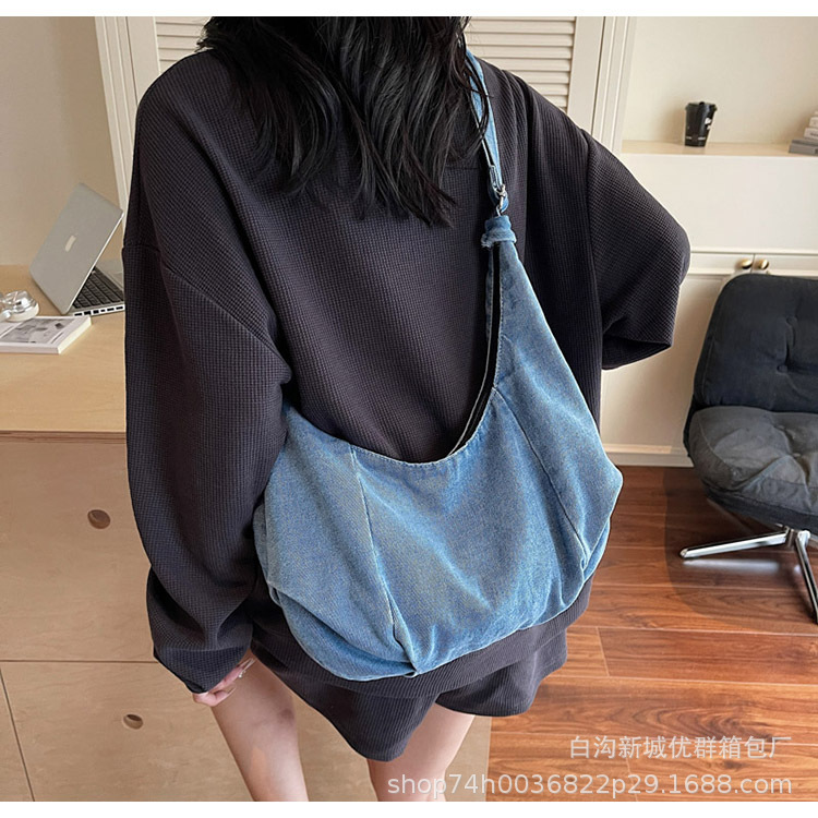 여성을 위한 복고풍 게으른 스타일 데님 캔버스 가방 새로운 대용량 통근 토트 백 경량 다용도 싱글 숄더 크로스 바디 백