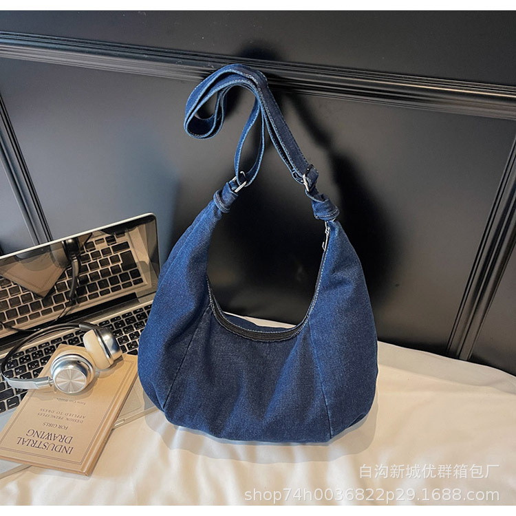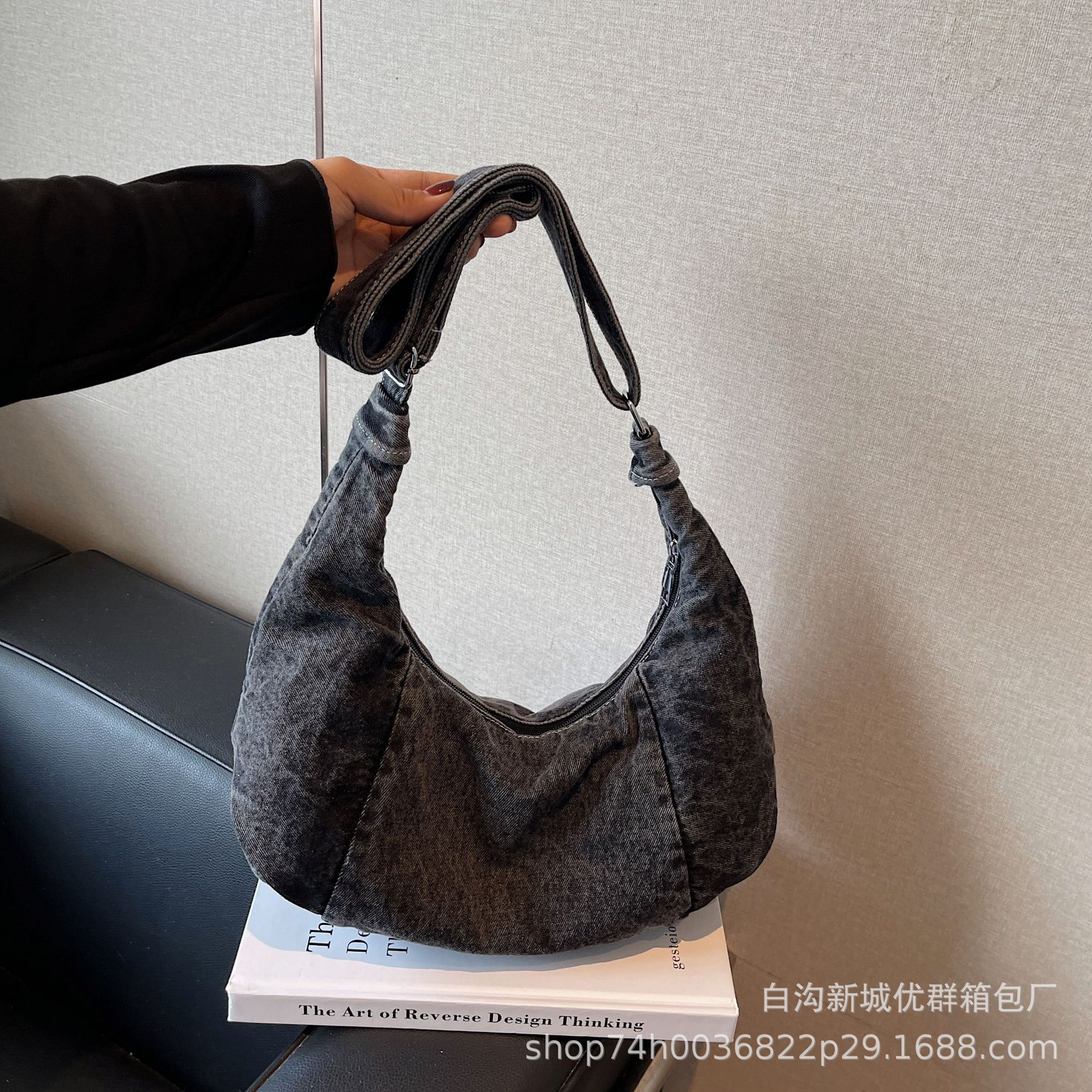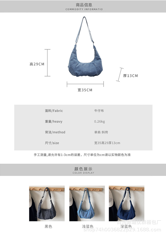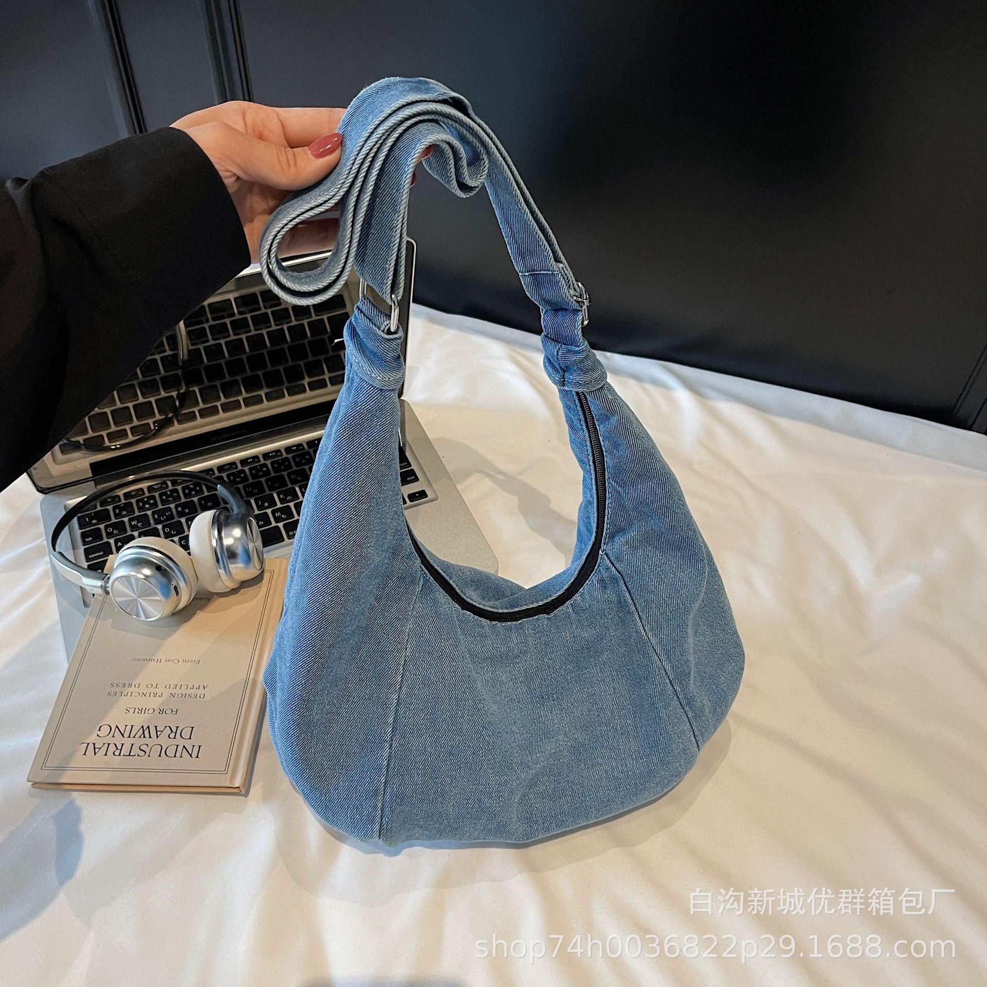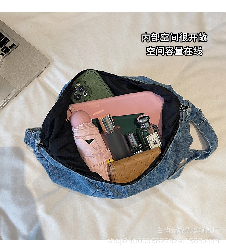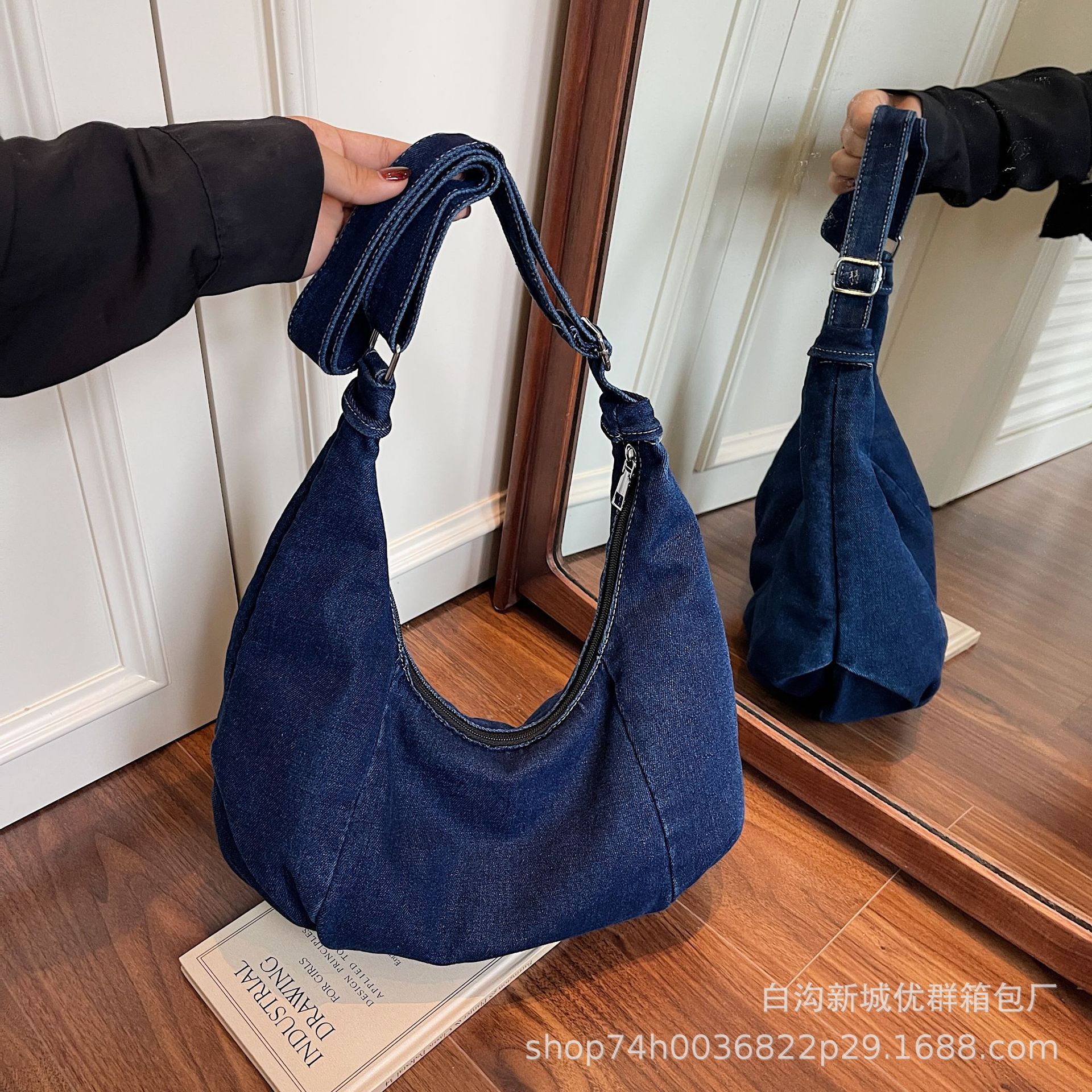 여성을 위한 복고풍 게으른 스타일 데님 캔버스 가방 새로운 대용량 통근 토트 백 경량 다용도 싱글 숄더 크로스 바디 백