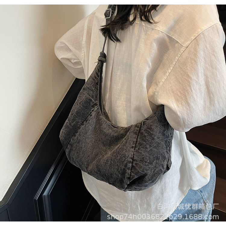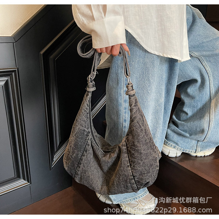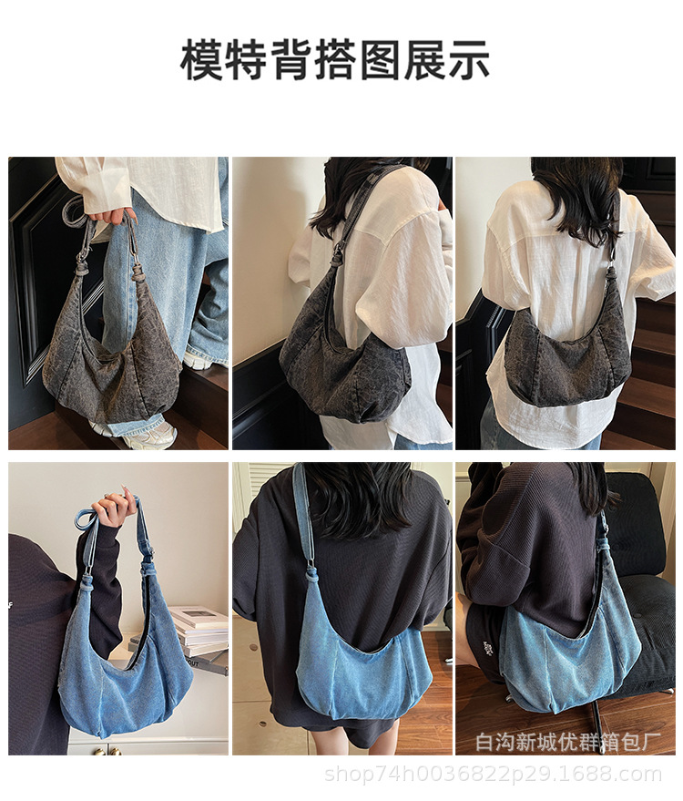 여성을 위한 복고풍 게으른 스타일 데님 캔버스 가방 새로운 대용량 통근 토트 백 경량 다용도 싱글 숄더 크로스 바디 백스토어 가기