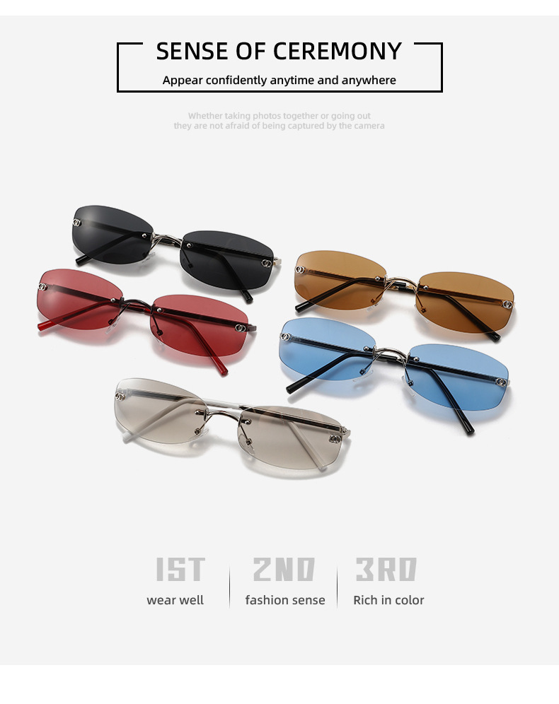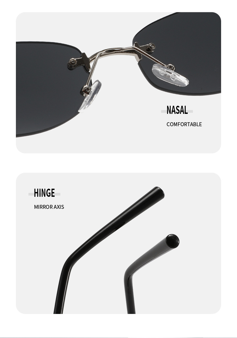 제니와 같은 스타일의 여성용 사각 무테 선글라스, 고급 유럽 및 미국 핫걸 패션 고양이 눈 자외선 차단 선글라스